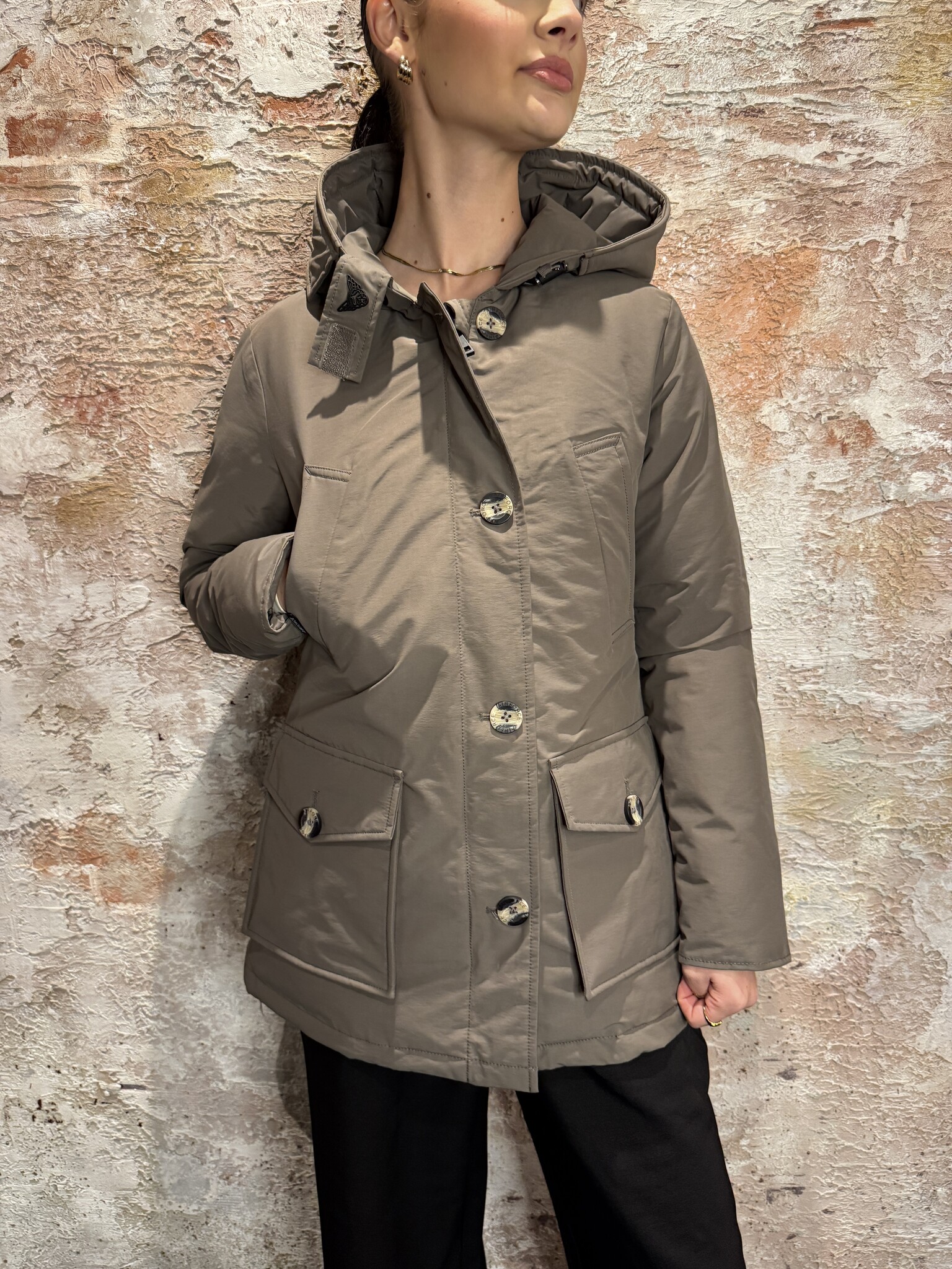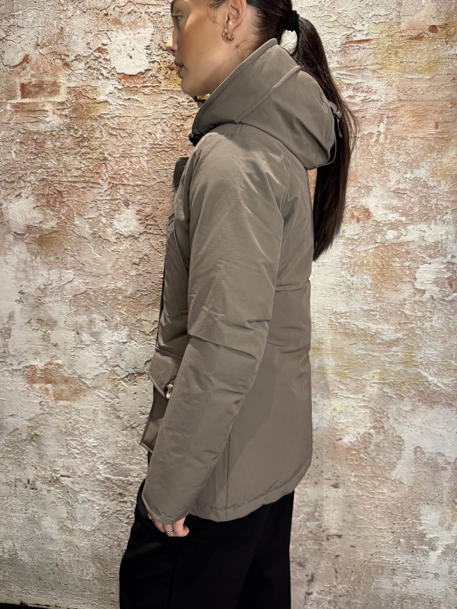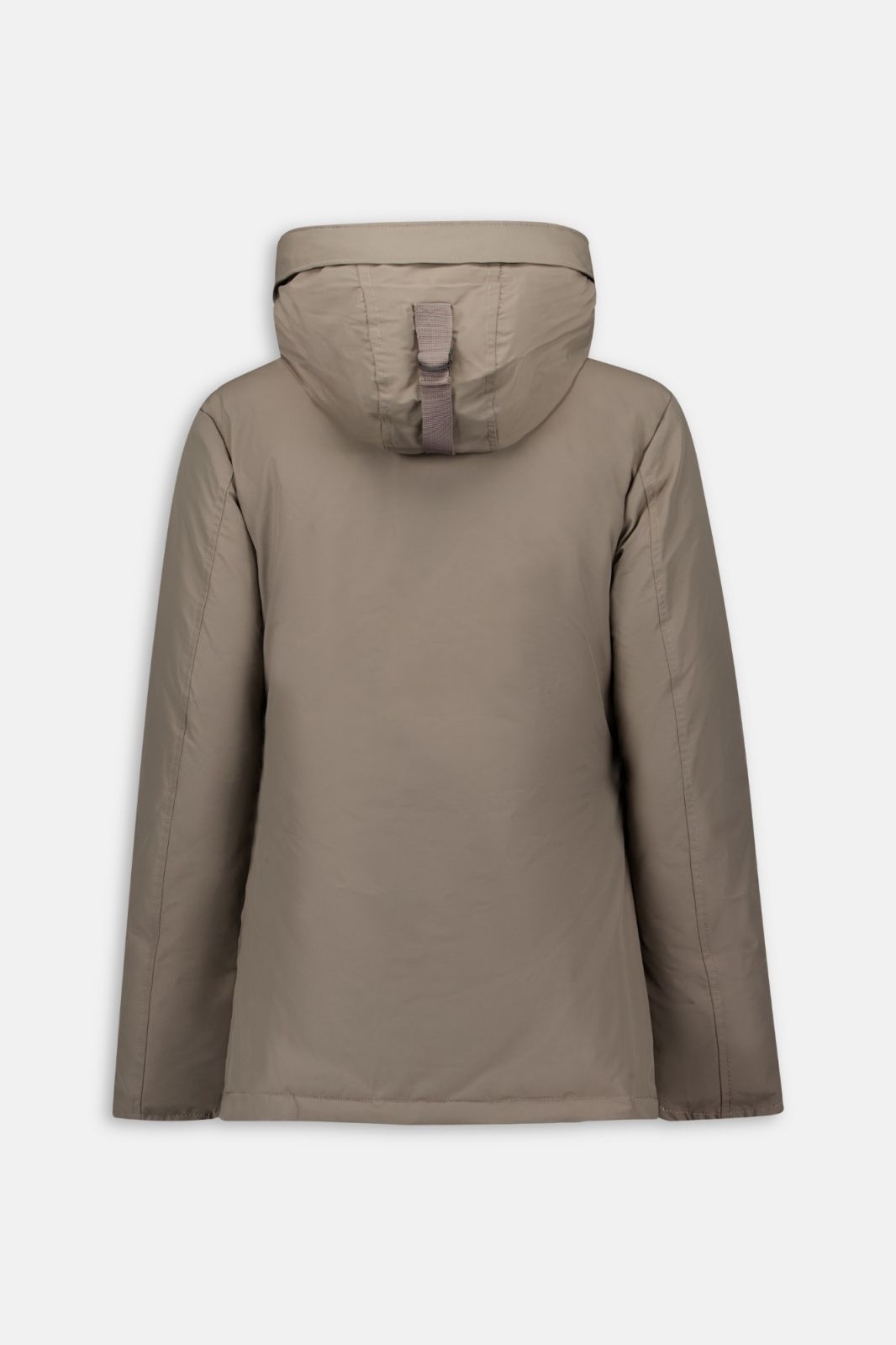 Airforce 4 Pocket Parka Bungee Cord, stijlvolle dames parka, winddicht en waterafstotend. Voorzien van vier ruime zakken, capuchon en stevige sluiting. Perfect voor koude en regenachtige dagen met een moderne look.