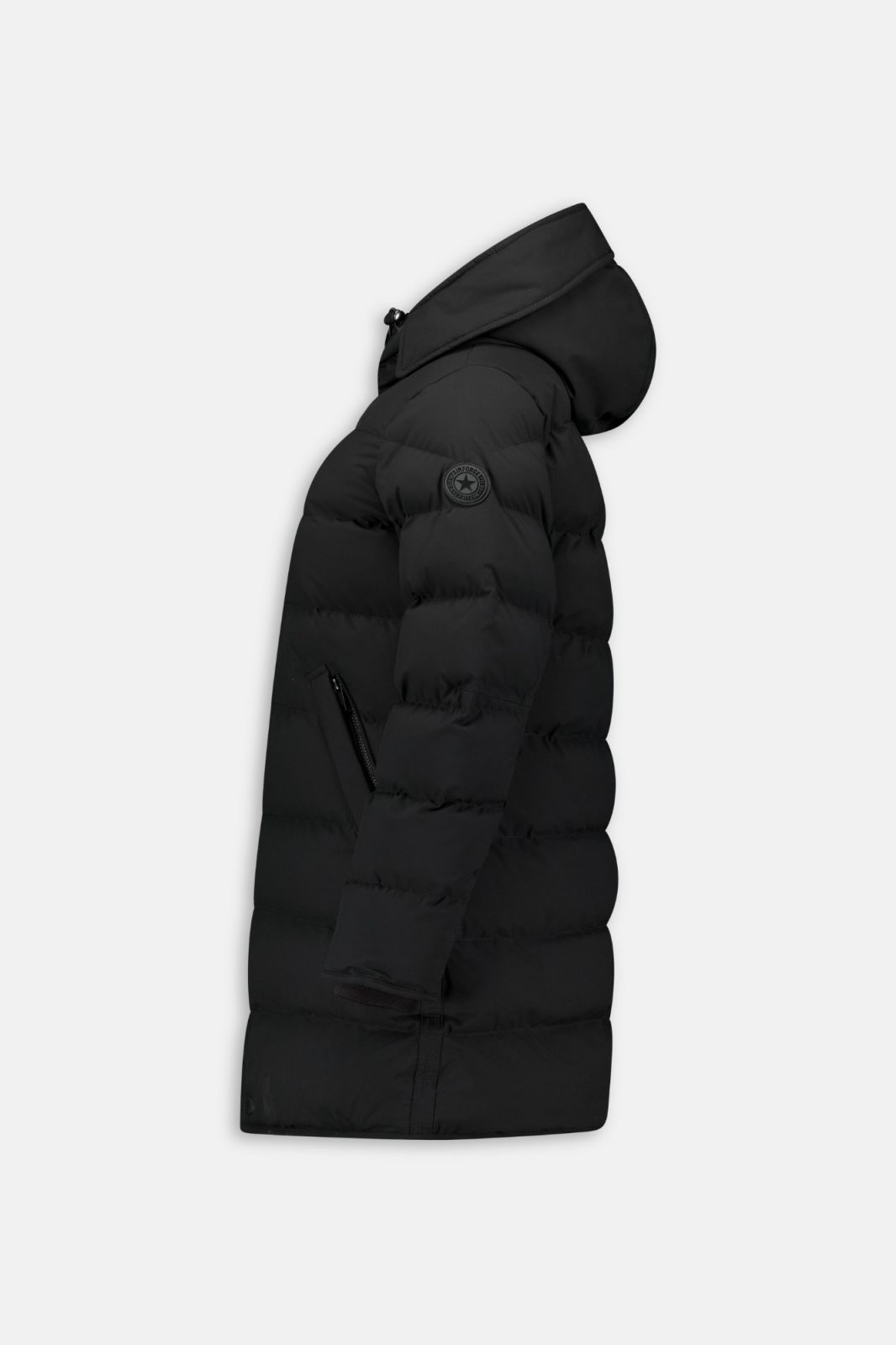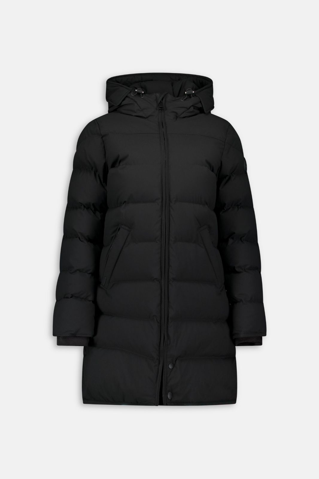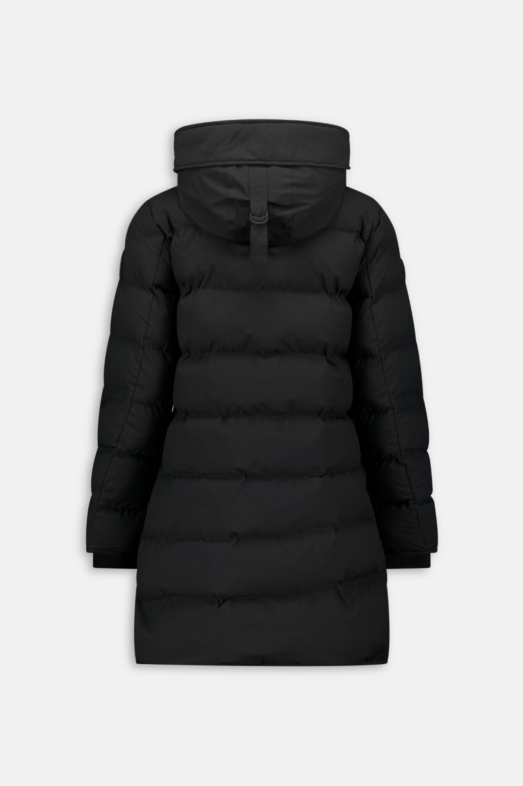 Airforce Jade Jacket Matt True Black. Warme dames winterjas met matte afwerking, gevoerde capuchon en ritssluiting. Winddicht en waterafstotend, ideaal voor koude dagen. Tijdloos model met stijlvolle pasvorm en hoogwaardige kwaliteit.
