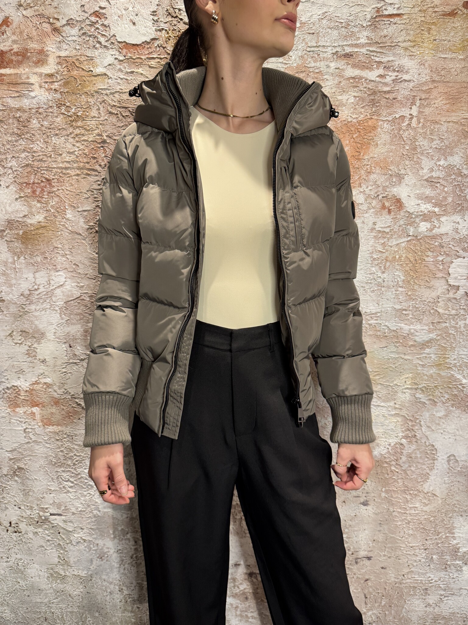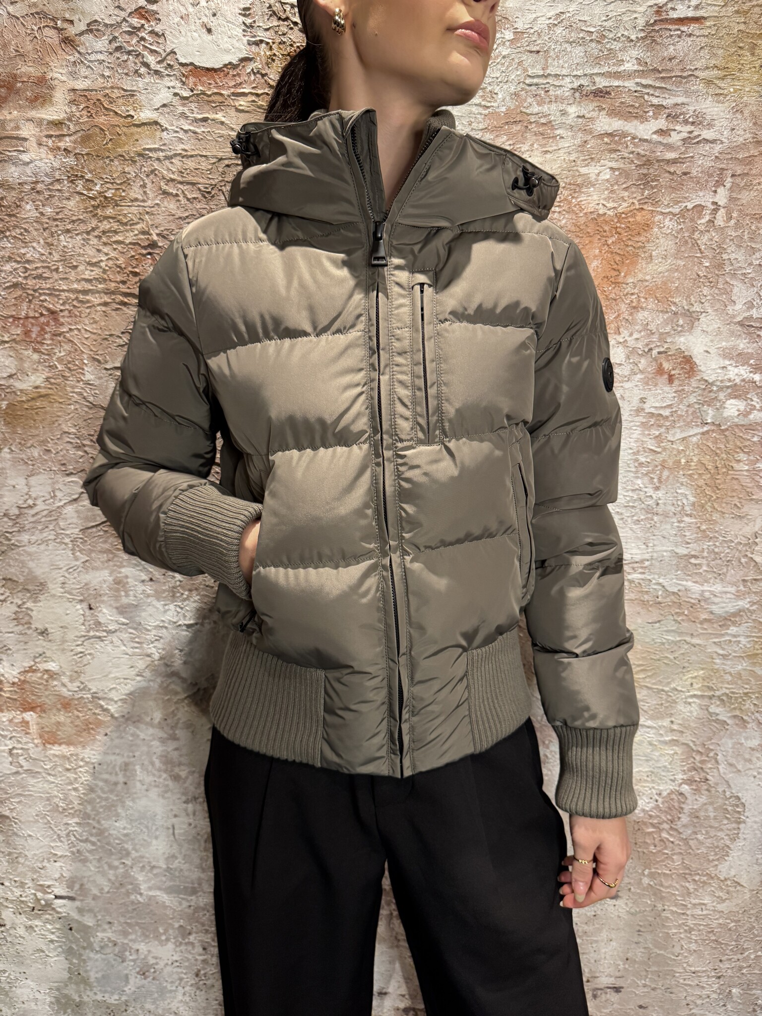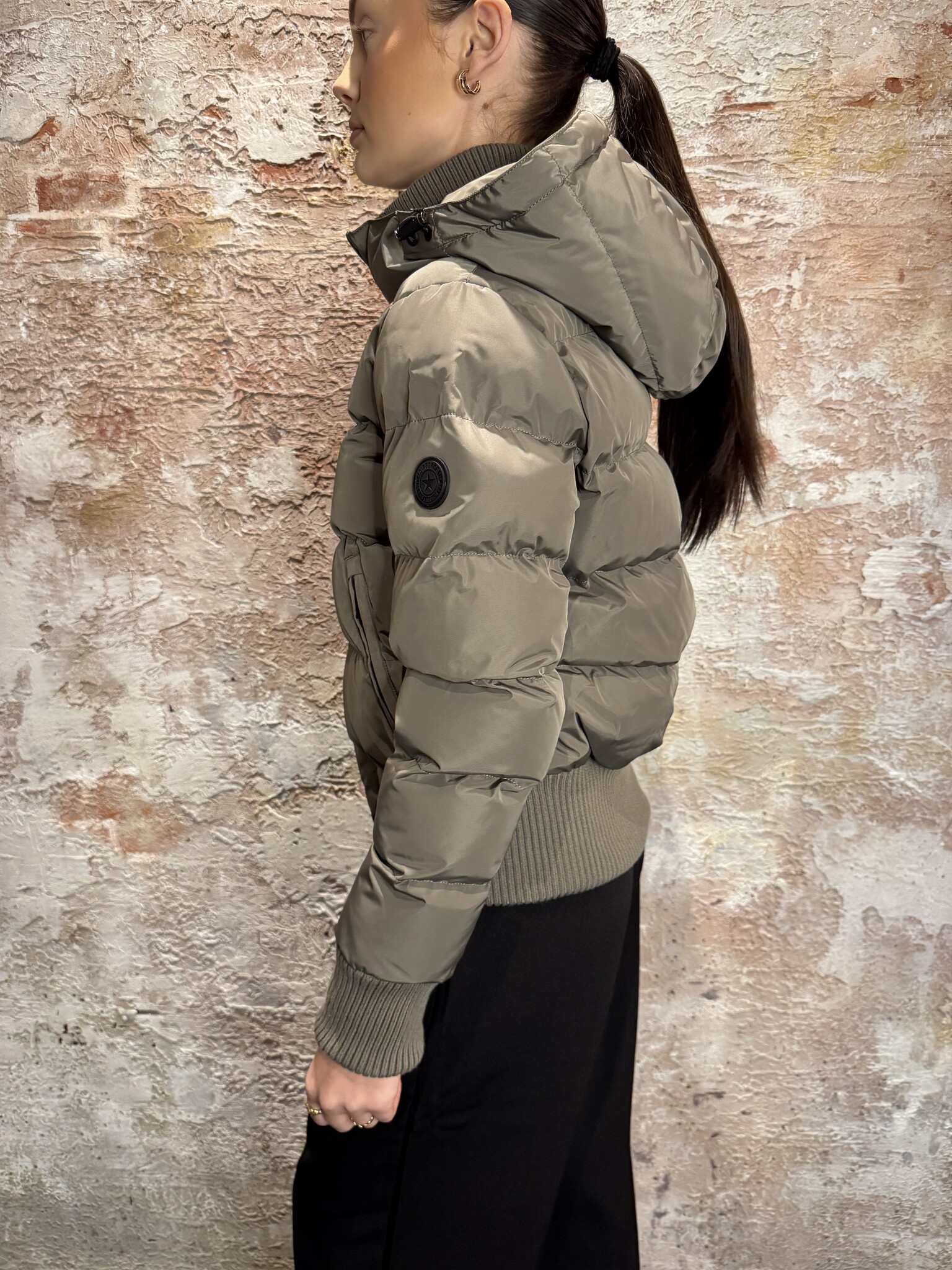 Airforce Tate Bomber Jacket Bungee Cord is een kort gewatteerd model met capuchon, ritssluiting en ritszakken en binnenzak. Brede ribboorden zorgen voor comfort en een aangesloten pasvorm. Stoer en modern voor winterse dagen.