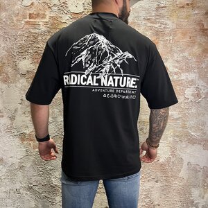Radical oversized nature t-shirt in zwart, ons model draagt een small.