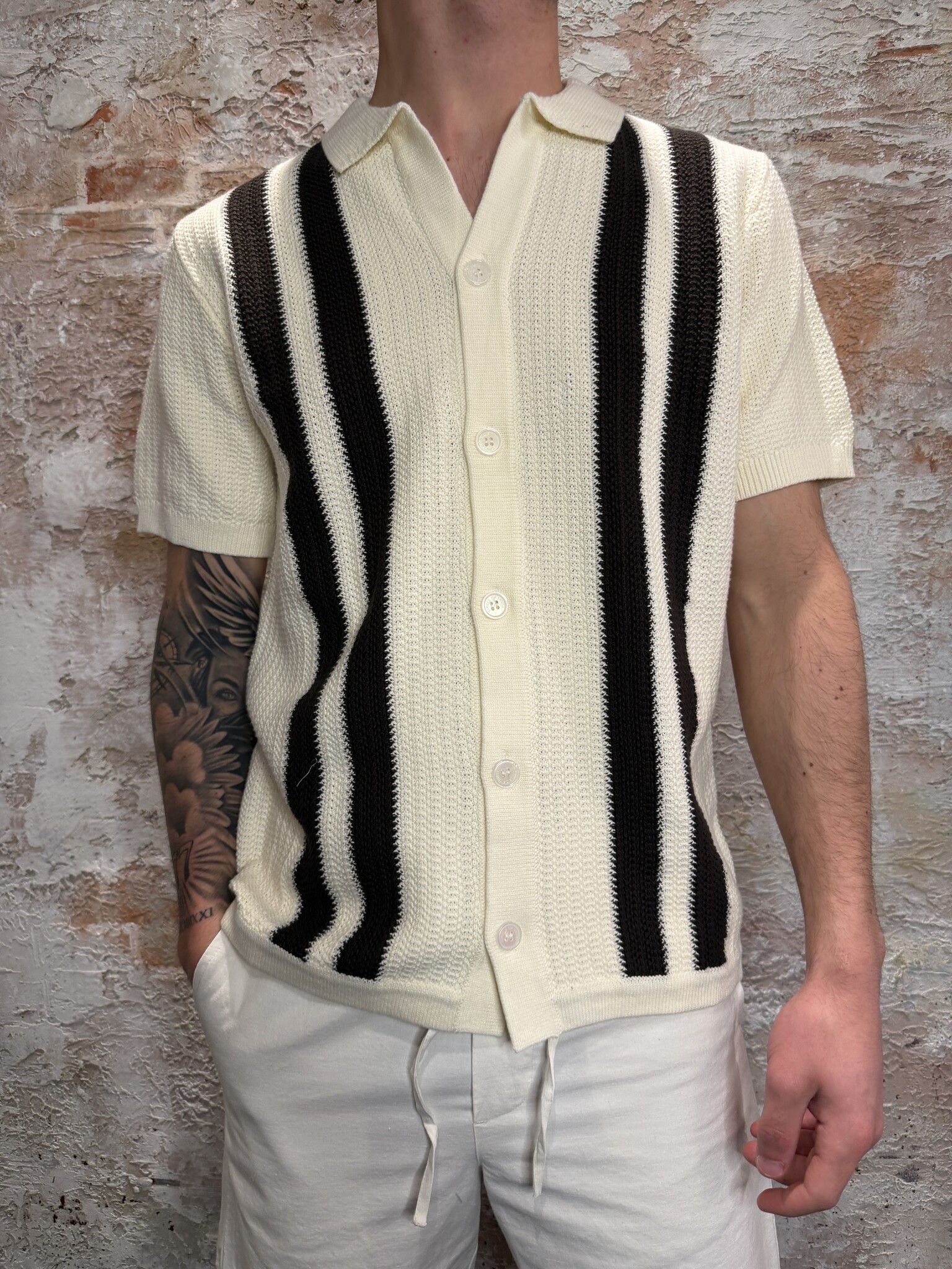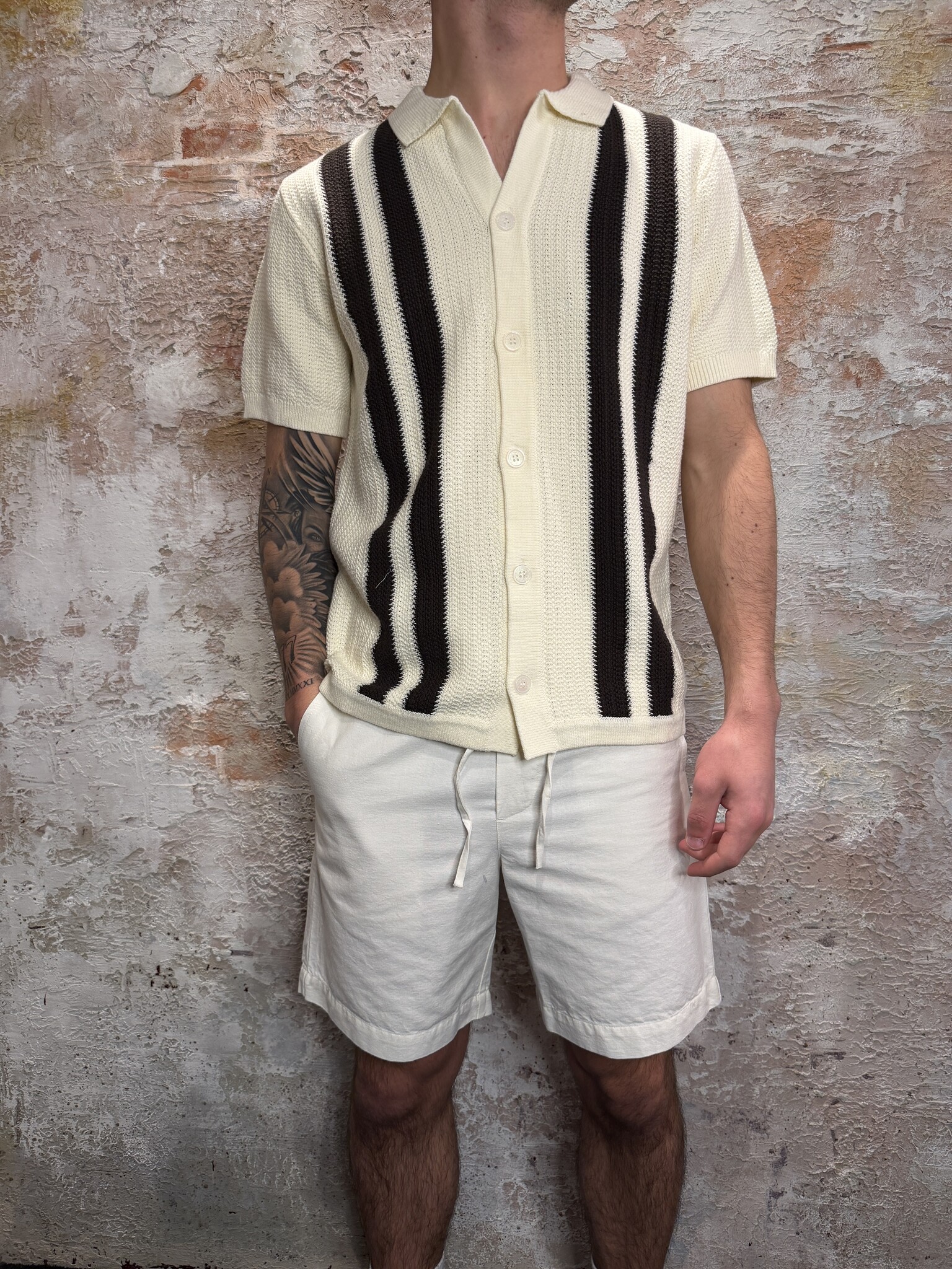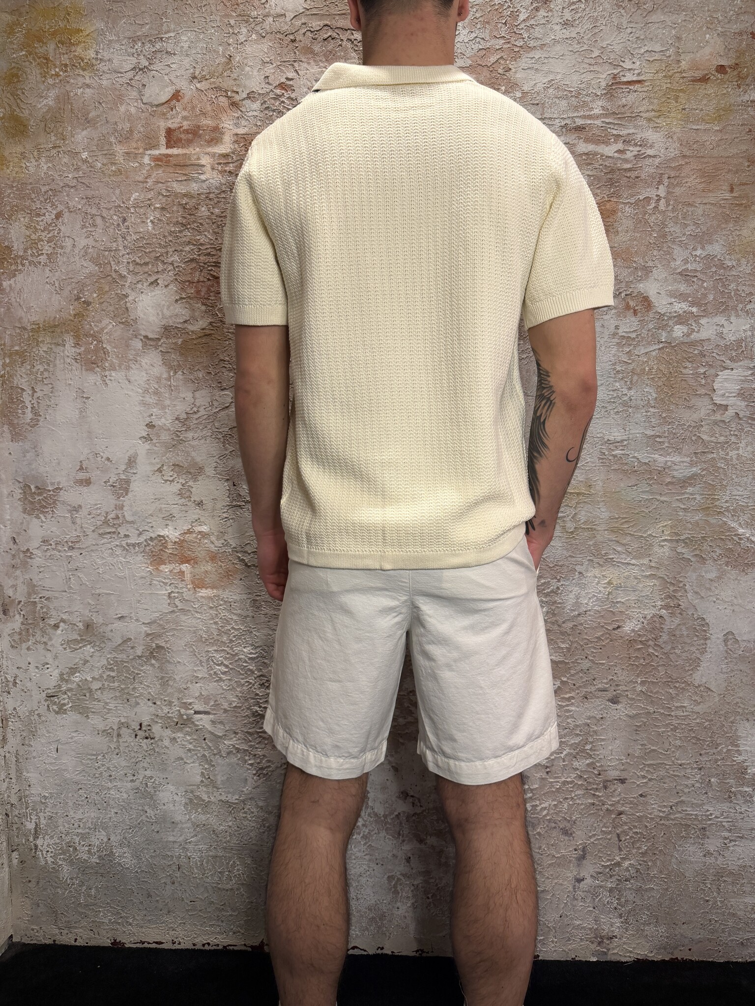 Circle Of Trust Mace Knit Chestnut Brown knit polo in lichte zandkleur met structuur. Luchtig, comfortabel en stijlvol met knoopsluiting. Perfect voor zomerse outfits, casual en smart looks. Trendy heren knit polo, ideaal voor vakantie en dagelijks gebrui