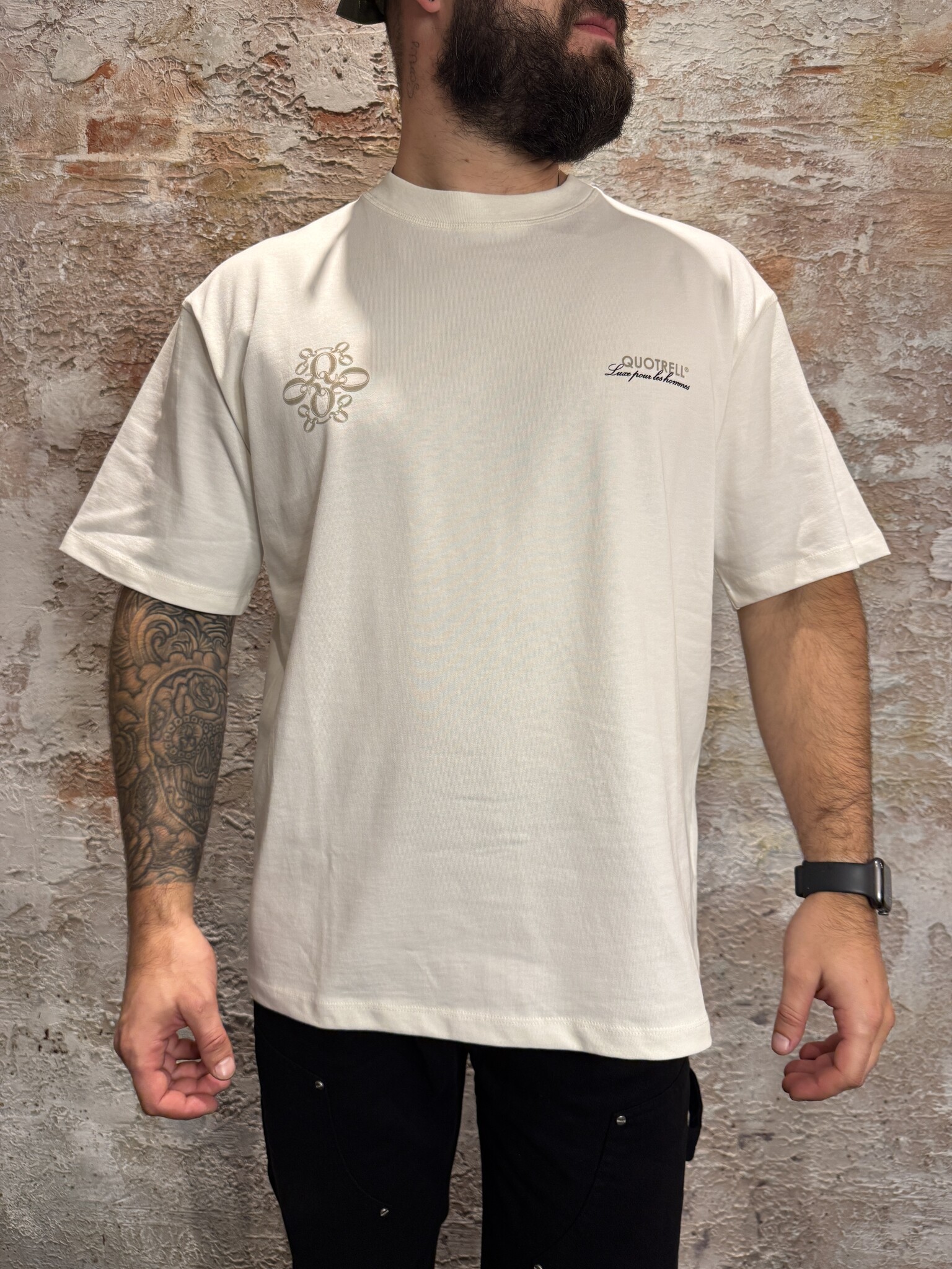 Quotrell Insignia Oversized Tee in Ecru Taupe is een stijlvolle must-have met een relaxte oversized fit. Voorzien van subtiele branding op de borst en een groot luxe Quotrell Insignia logo op de achterkant. Gemaakt van zacht katoen voor optimaal comfort.