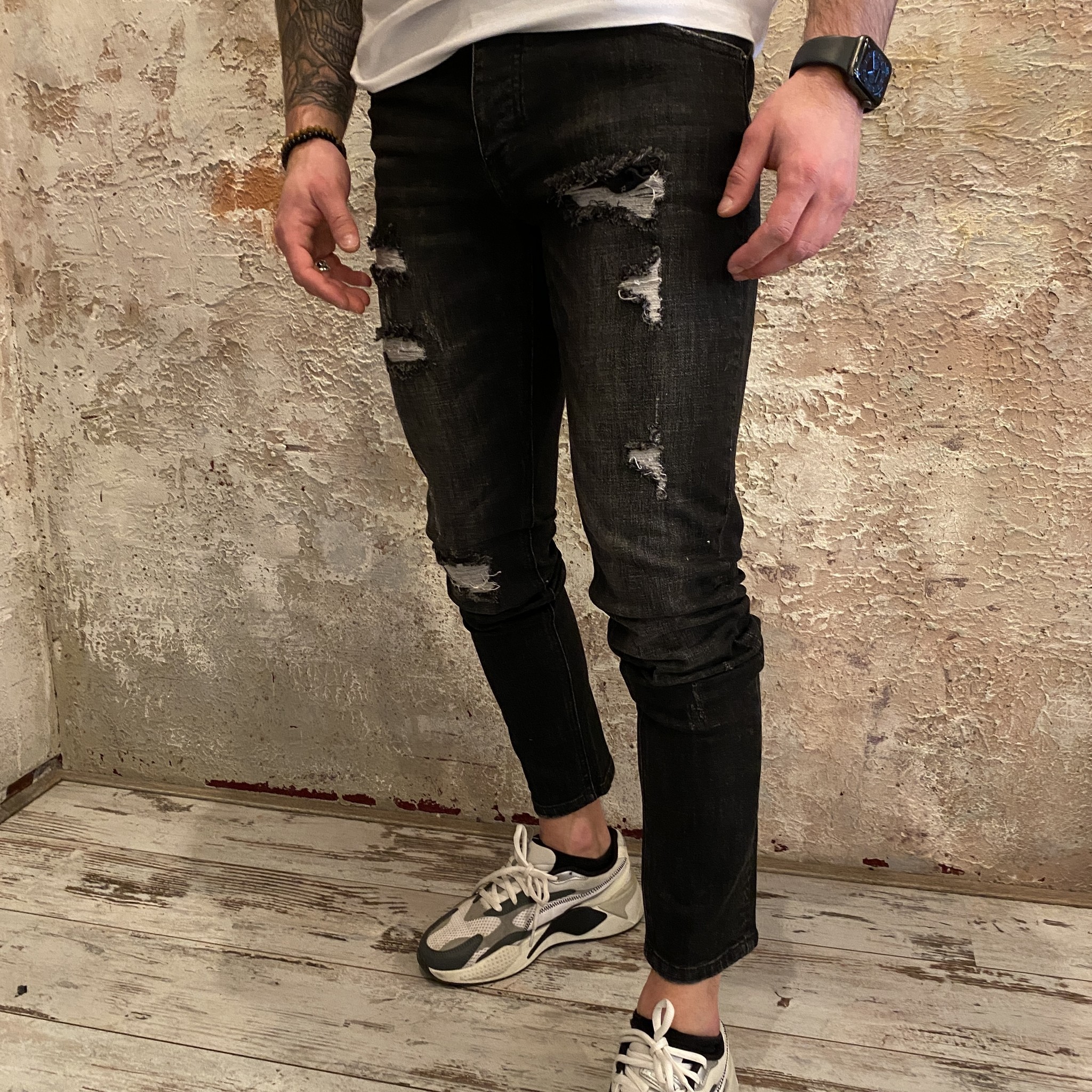 Radical skinny denim zwart 'ripped' model Dwayne.