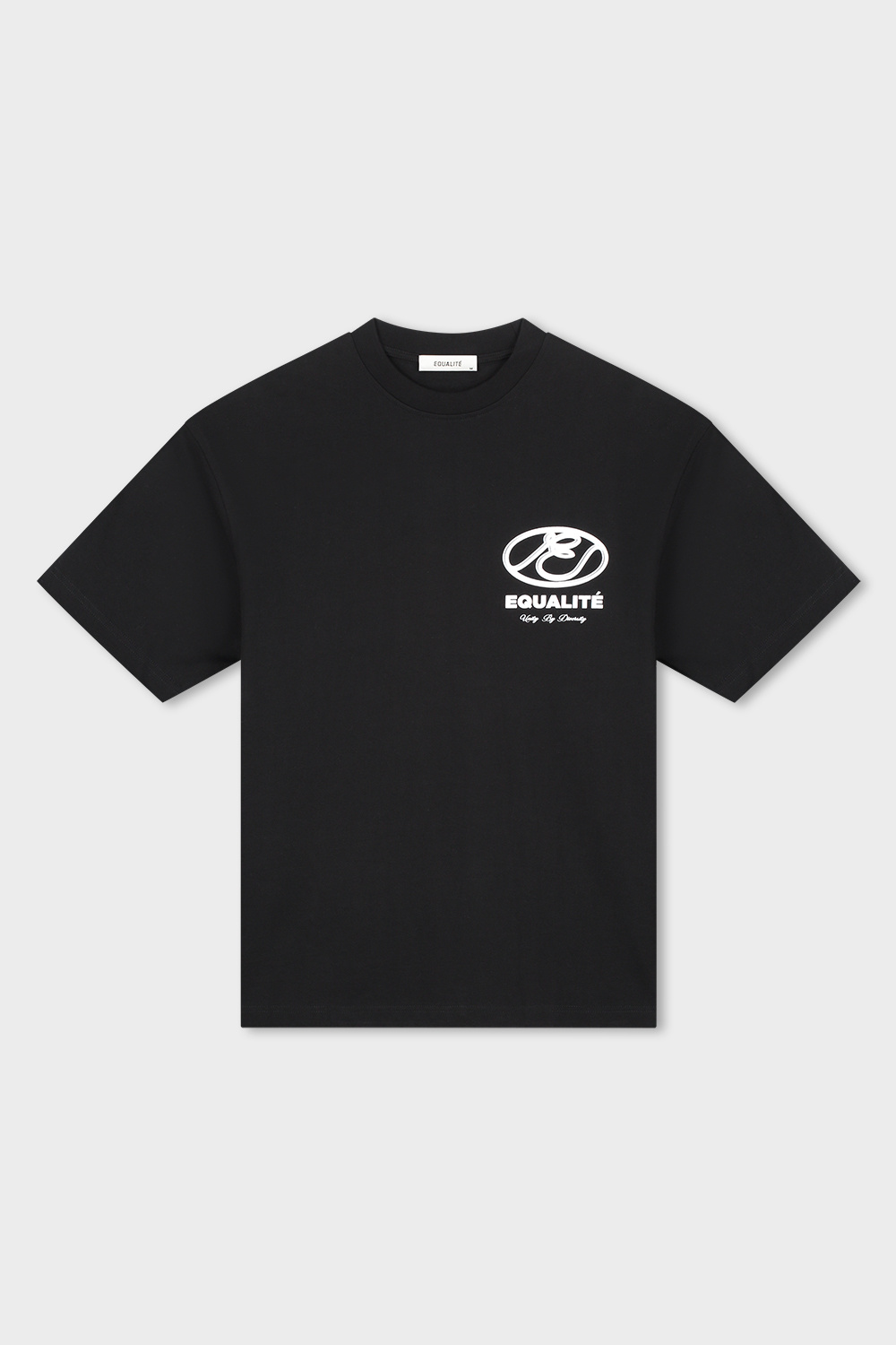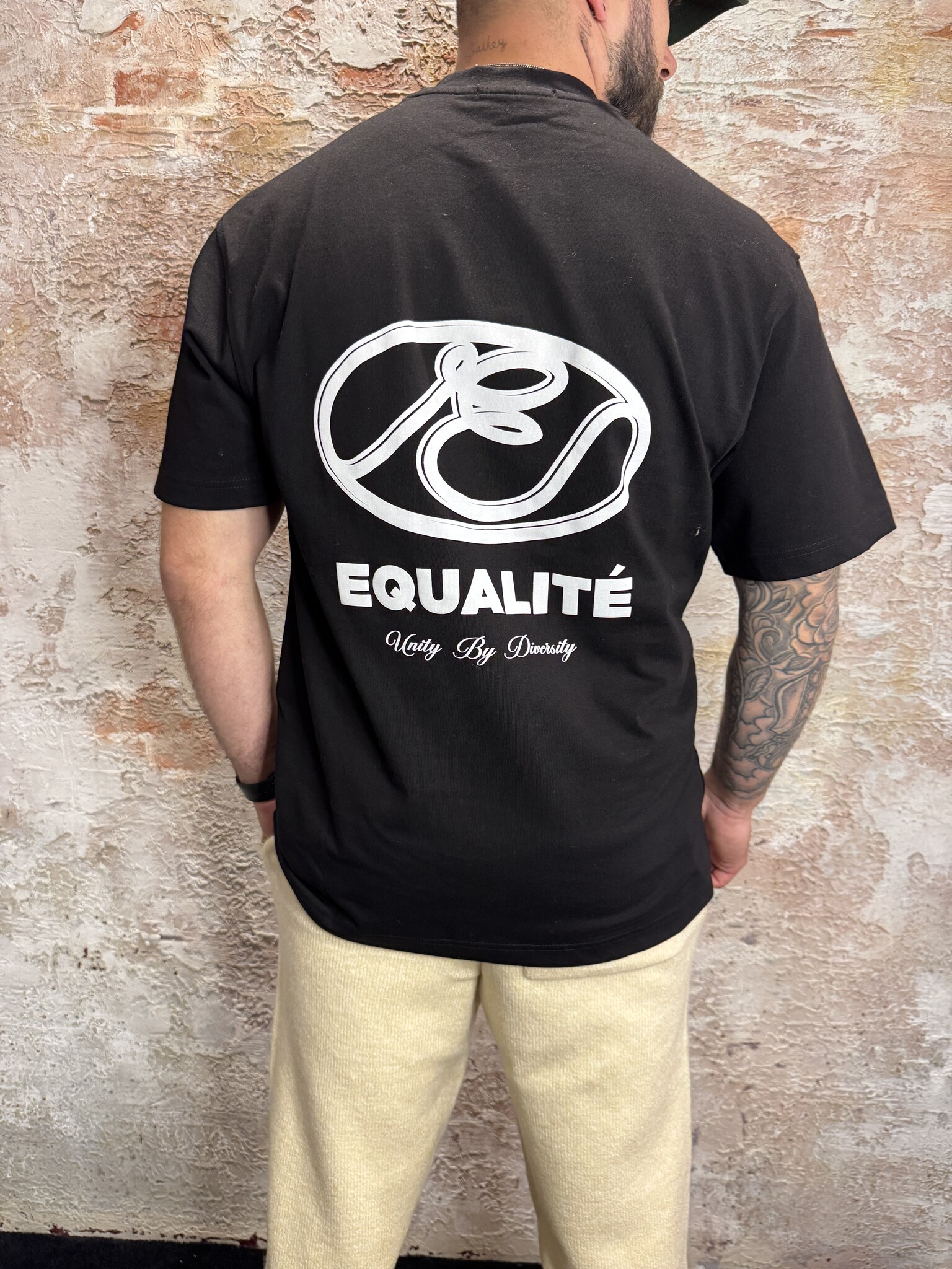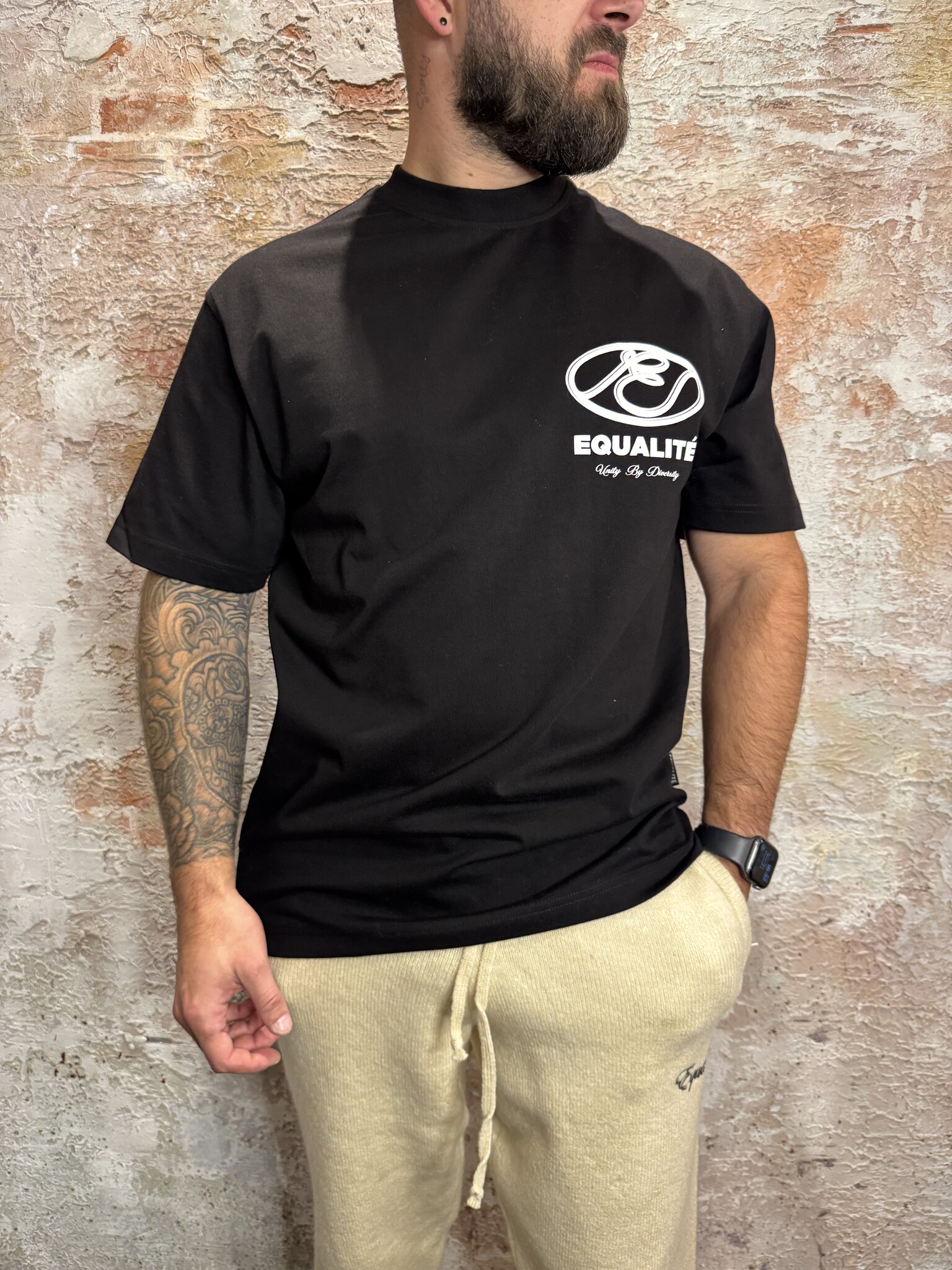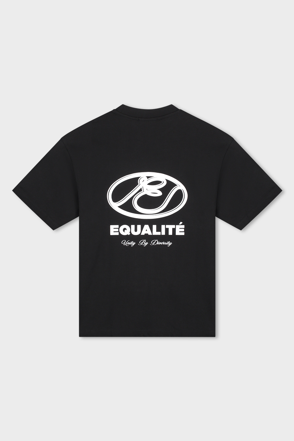 De Equalité Arid Oversized Tee Black is een zwart T-shirt met relaxte pasvorm. Voorzien van groot wit Equalité-logo op de rug en kleinere variant op de borst. Gemaakt van comfortabel katoen, perfect voor een moderne en casual streetwear look.