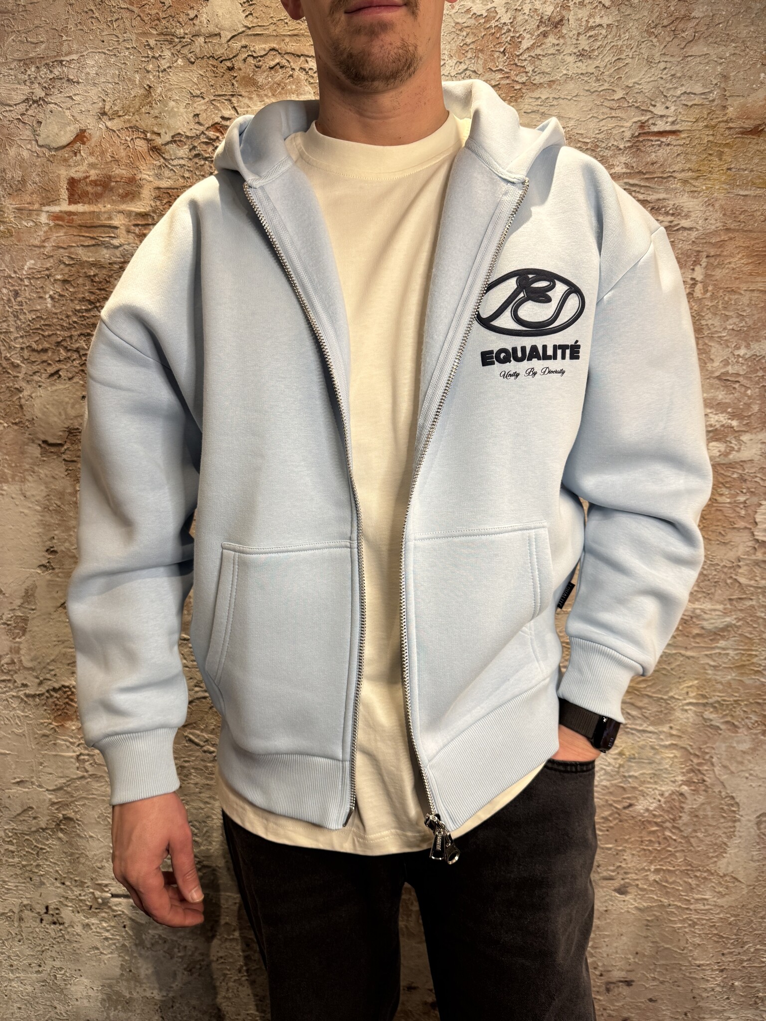 De Equalité Arid Oversized Zip Hoodie Blue Navy heeft een frisse, moderne look met navy logo-opdruk. Comfortabele oversized pasvorm, zachte katoenmix en praktische rits. Perfect voor een stijlvolle en casual streetwear-outfit.