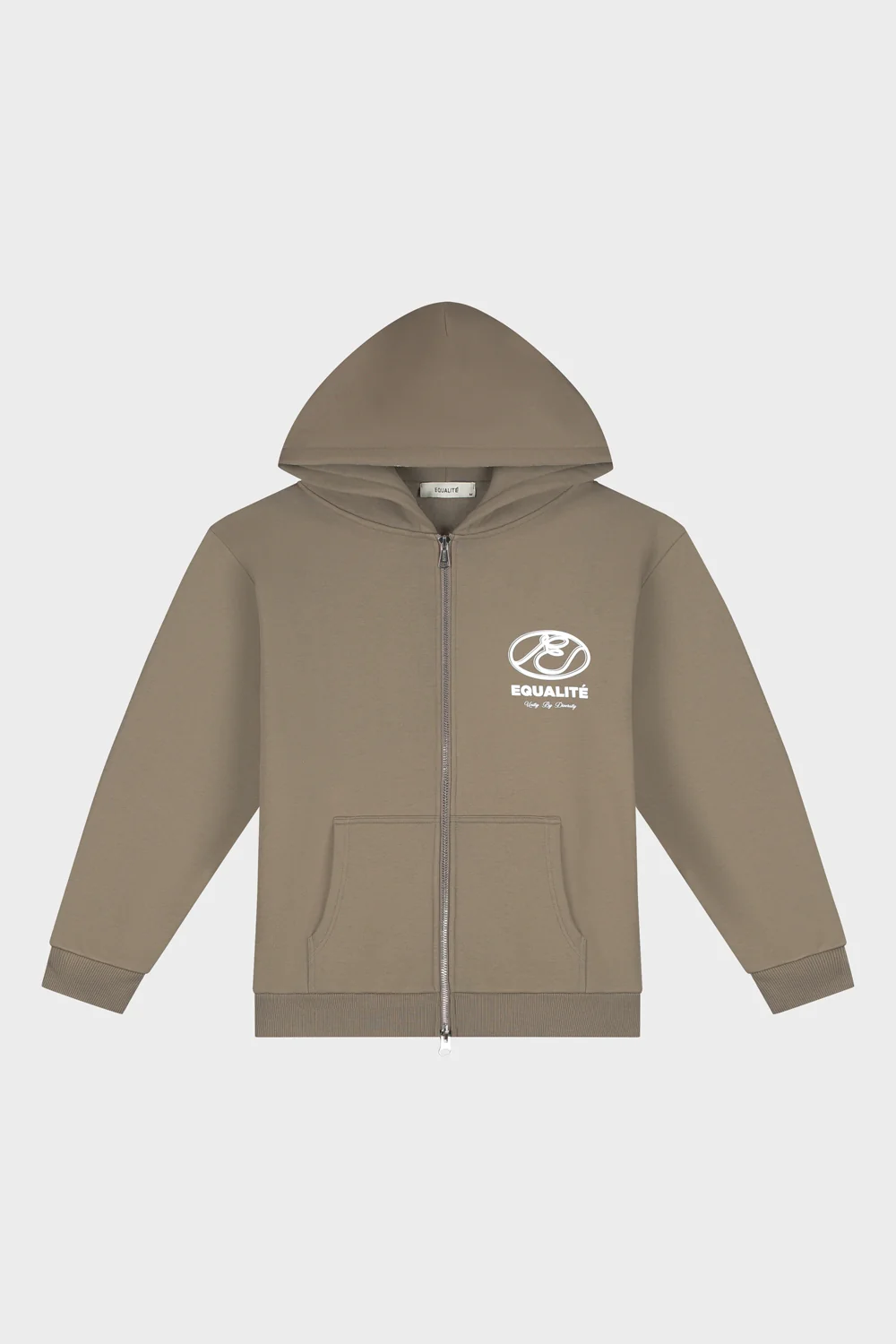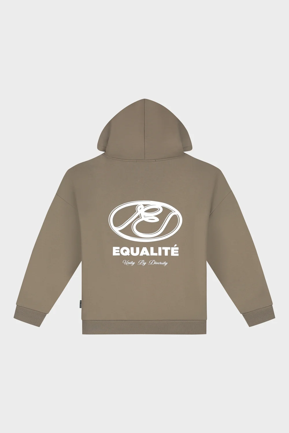 De Equalité Arid Oversized Zip Hoodie Taupe straalt moderne luxe uit. Met een comfortabele oversized pasvorm, zachte katoenmix en opvallend wit Equalité-logo is deze hoodie perfect voor een stijlvolle streetwear look.