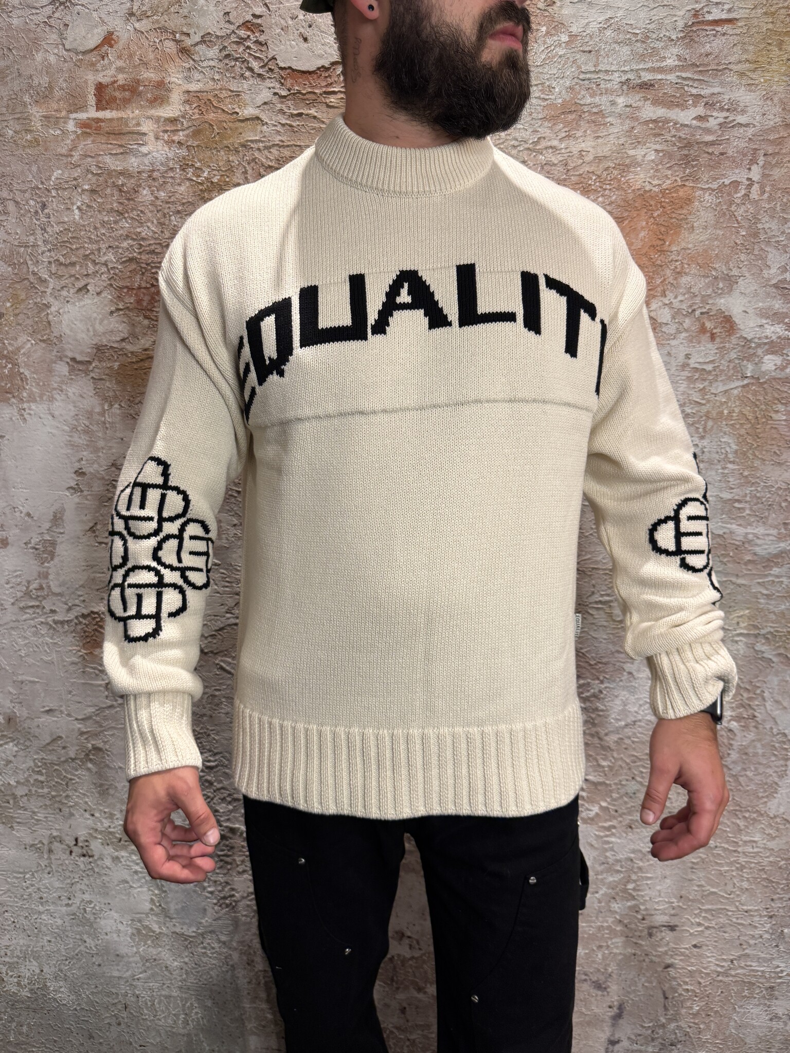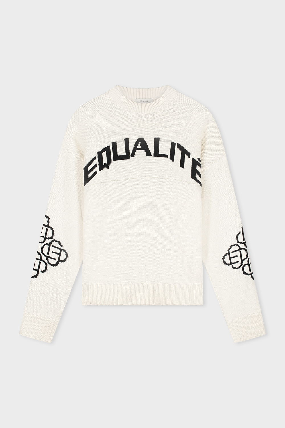 Equalité Ava Knit Sweater Off White is een stijlvolle knit trui in gebroken wit met een relaxed fit. Voorzien van een bold “EQUALITÉ” logo op de borst en subtiele logo-details op beide mouwen. Comfortabel, warm en ideaal voor een casual streetstyle look.