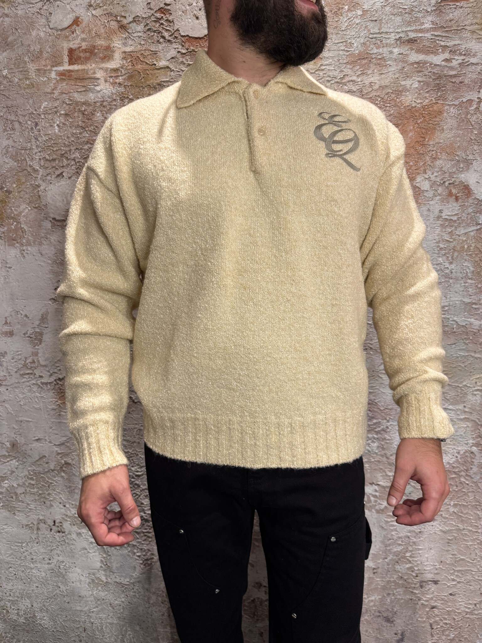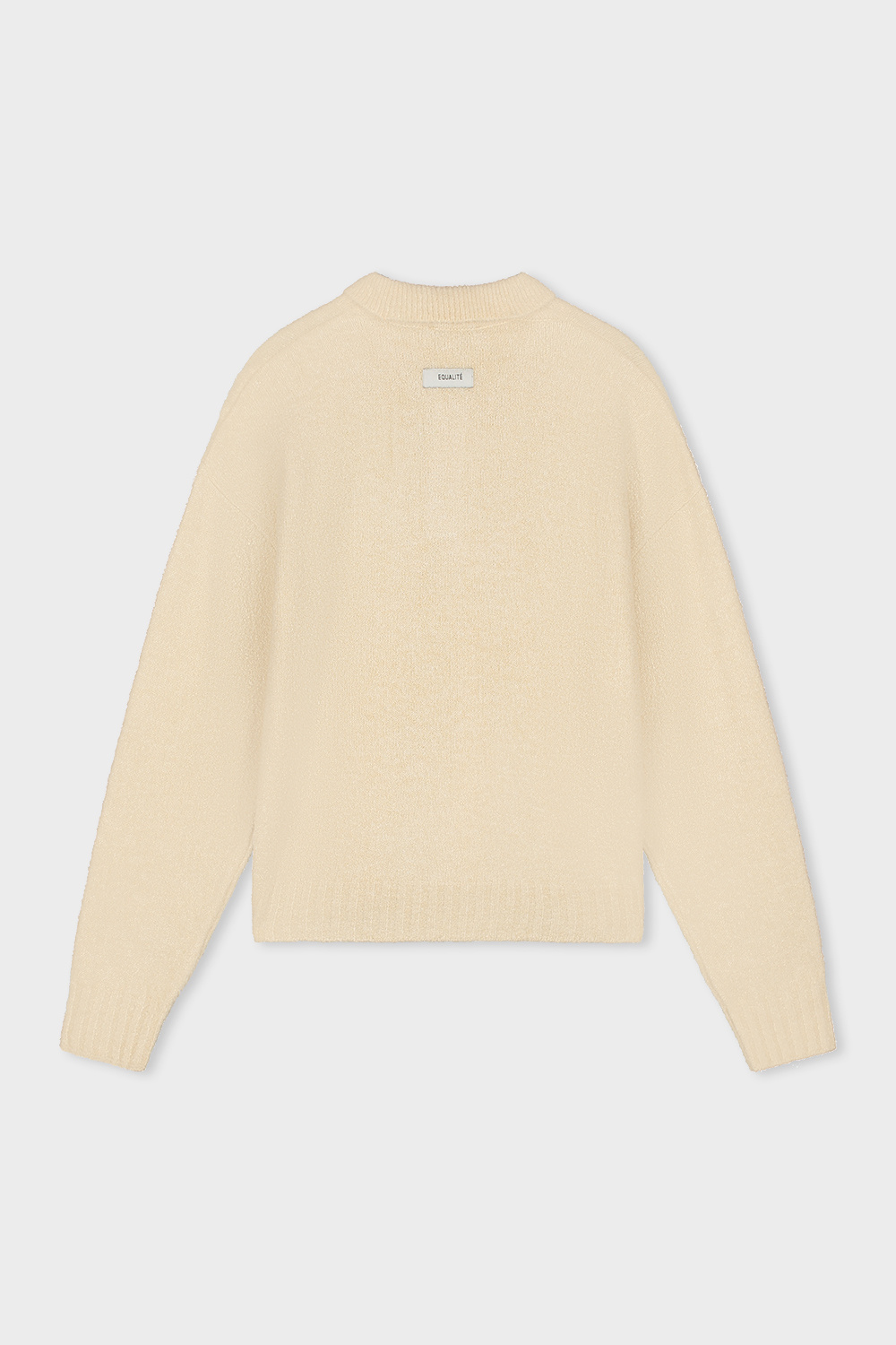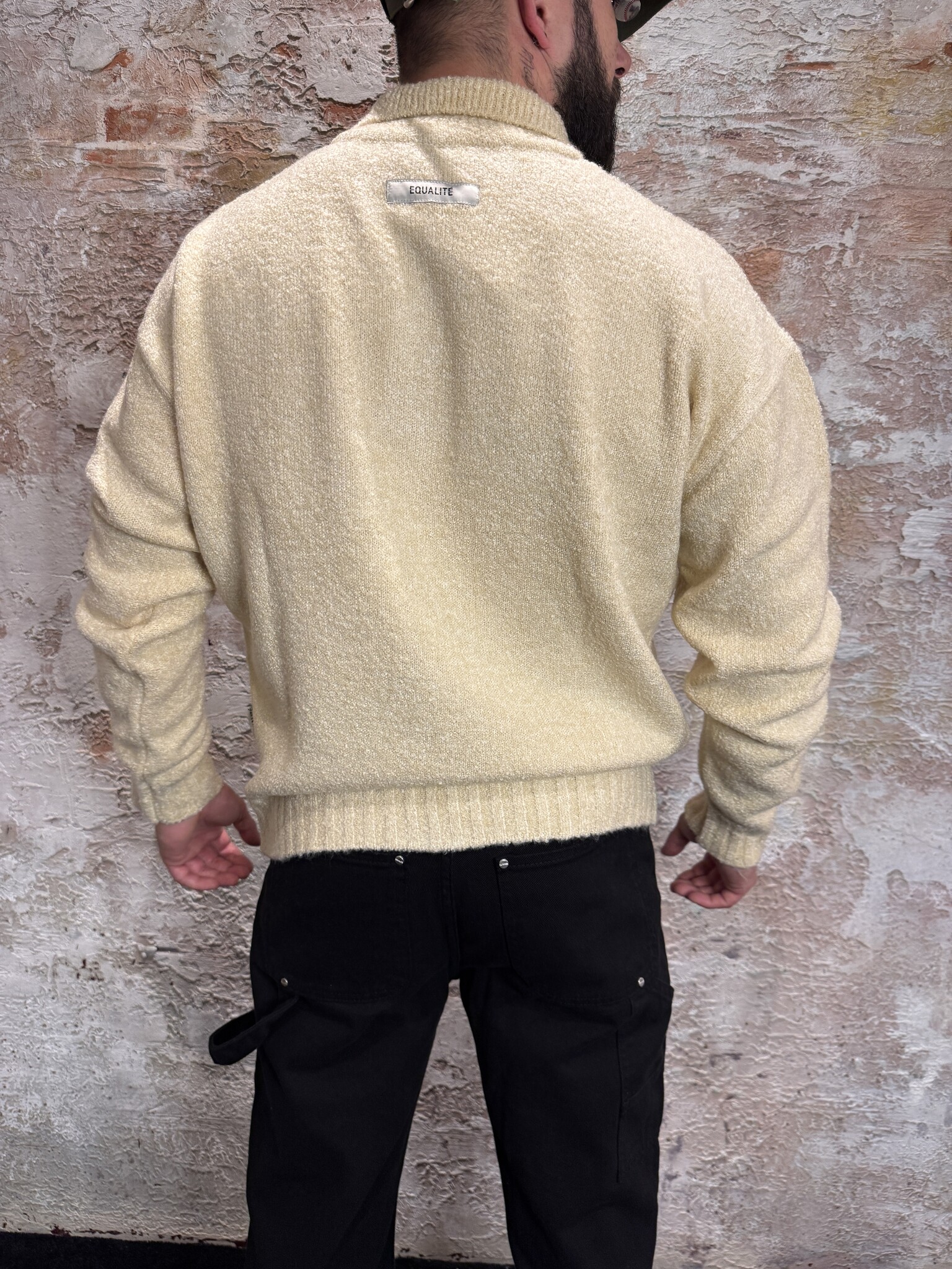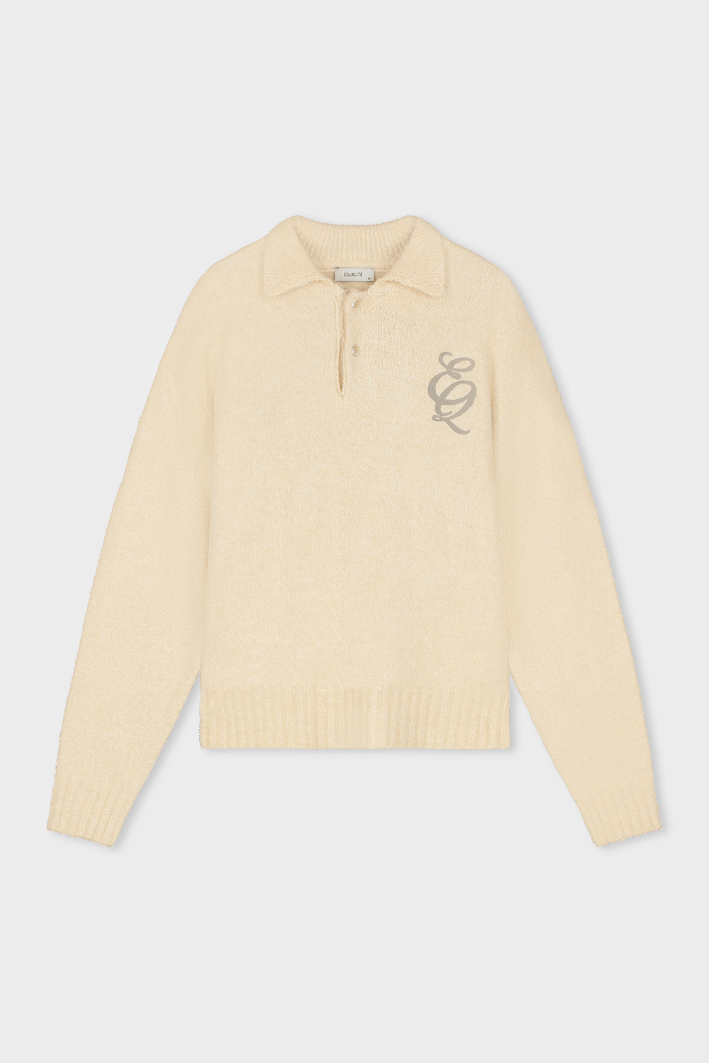 De Equalité Bouclé Polo Off White is een stijlvolle, comfortabele trui met een polokraag en knoopsluiting. Gemaakt van zachte bouclé-stof voor een luxe look & feel. Het witte EQ-logo op de borst geeft een moderne, chique touch. Perfect casual én classy.