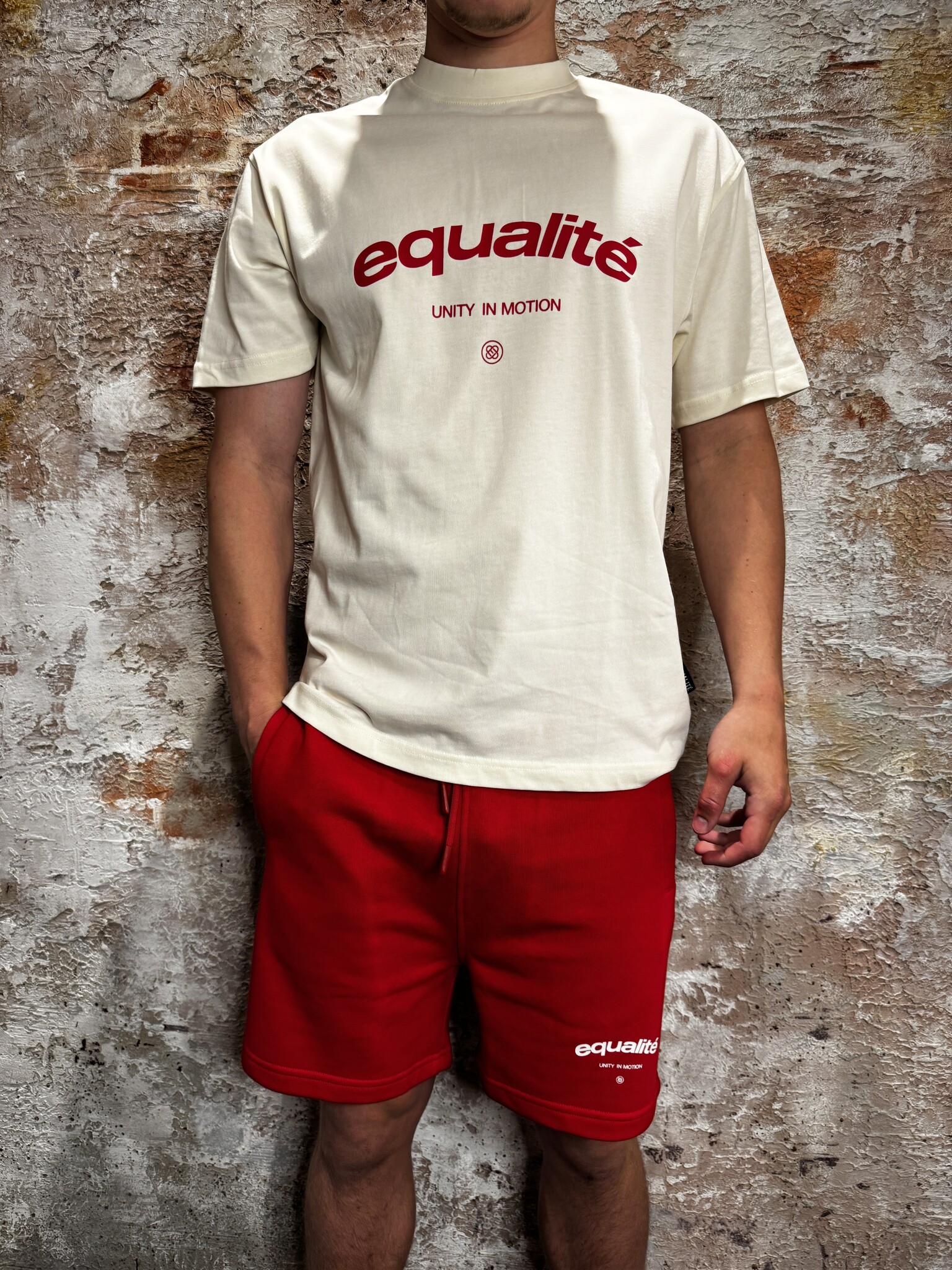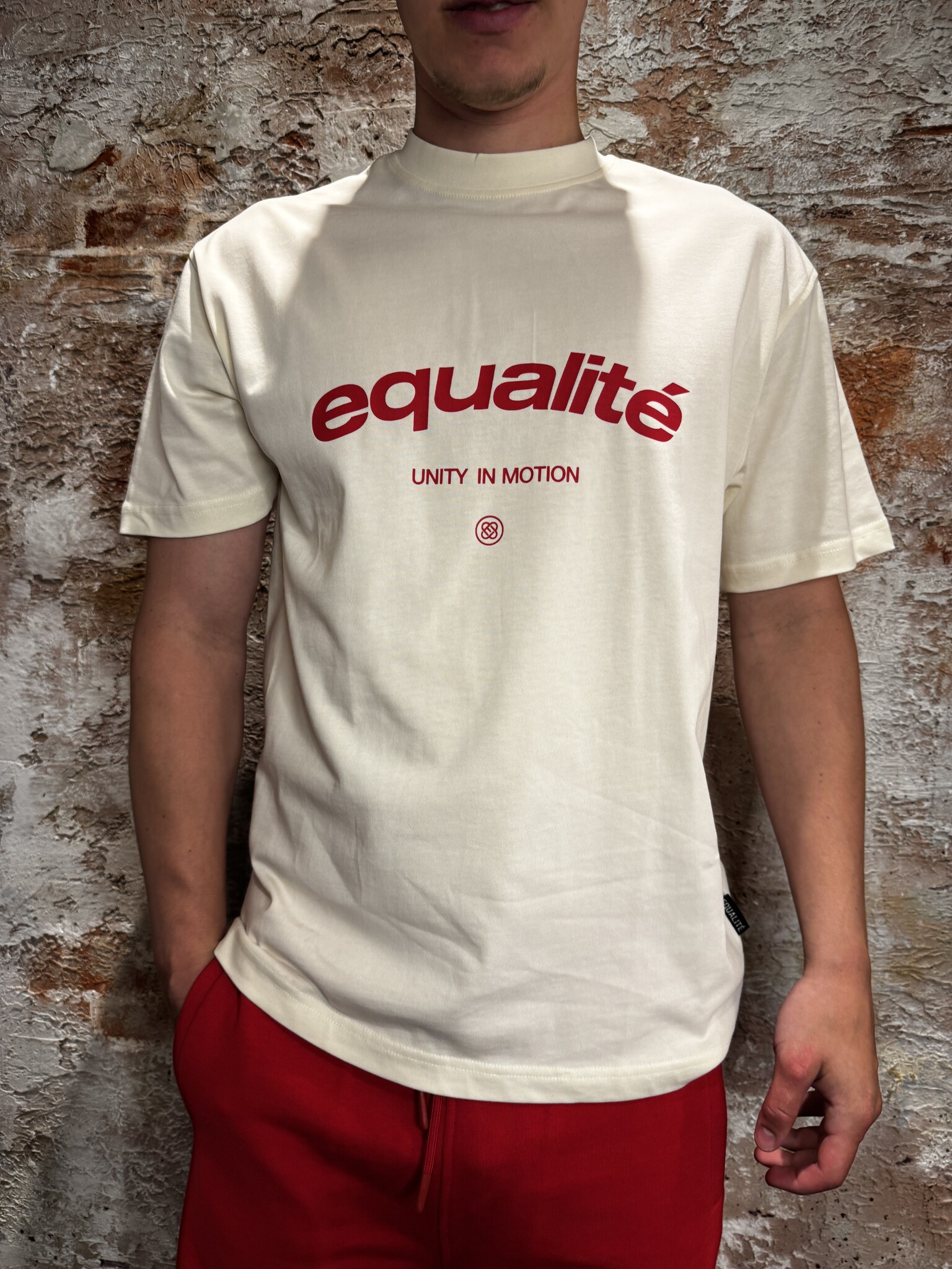 De Equalité Celeste Boxy Tee in Offwhite met rode print heeft een moderne boxy fit en opvallend Equalité-logo op de borst. Gemaakt van zacht katoen voor maximaal comfort. De subtiele tekst “Unity in Motion” op de rug maakt het design compleet.