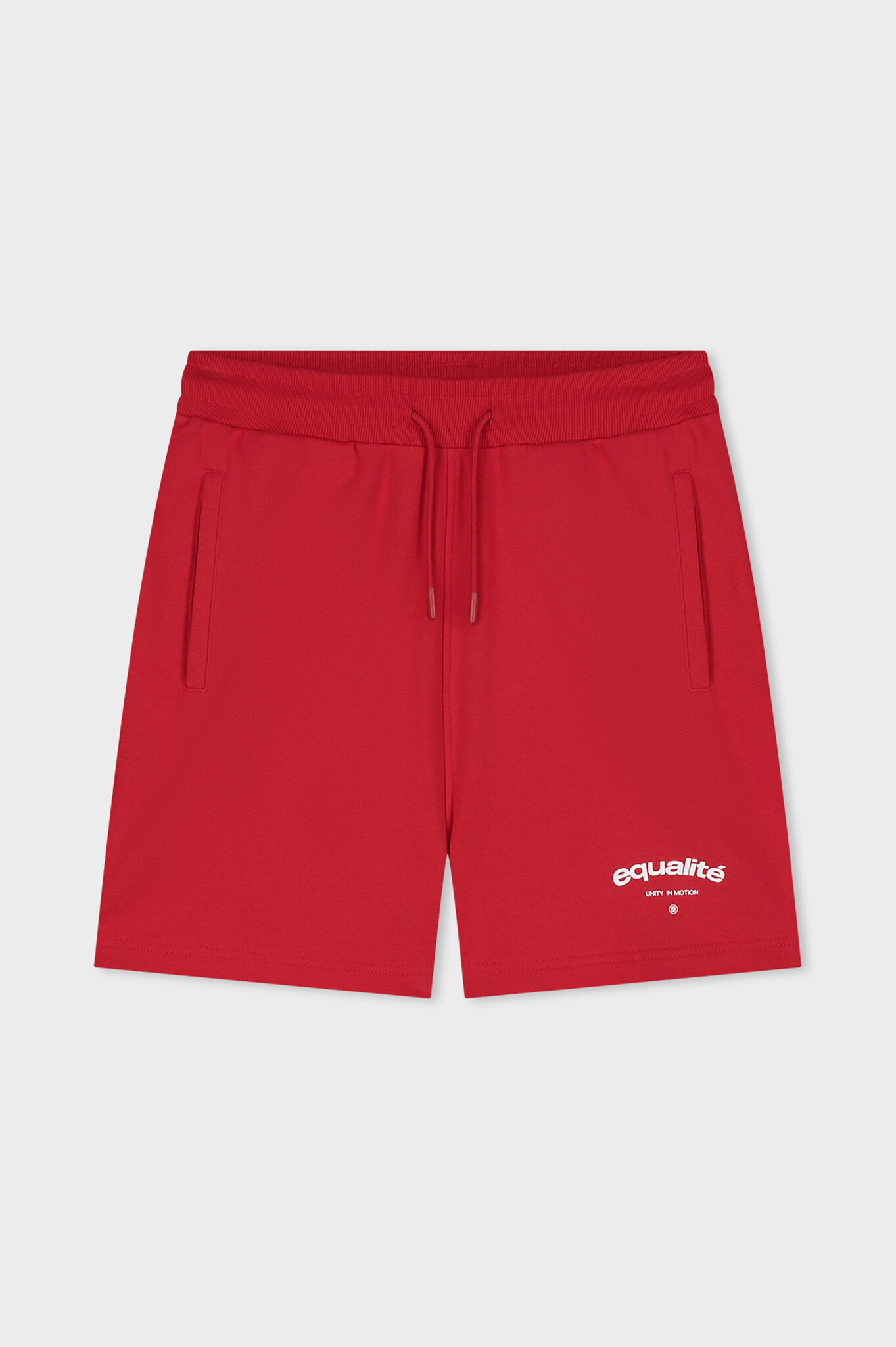 De Equalité Celeste Short in Red is een comfortabele short met sportieve uitstraling. Voorzien van een elastische tailleband met trekkoord, steekzakken en wit Equalité-logo op het been. Gemaakt van zachte katoenmix, perfect voor casual days.