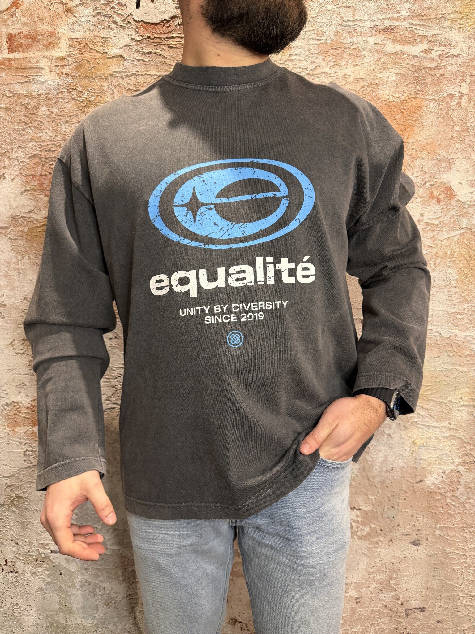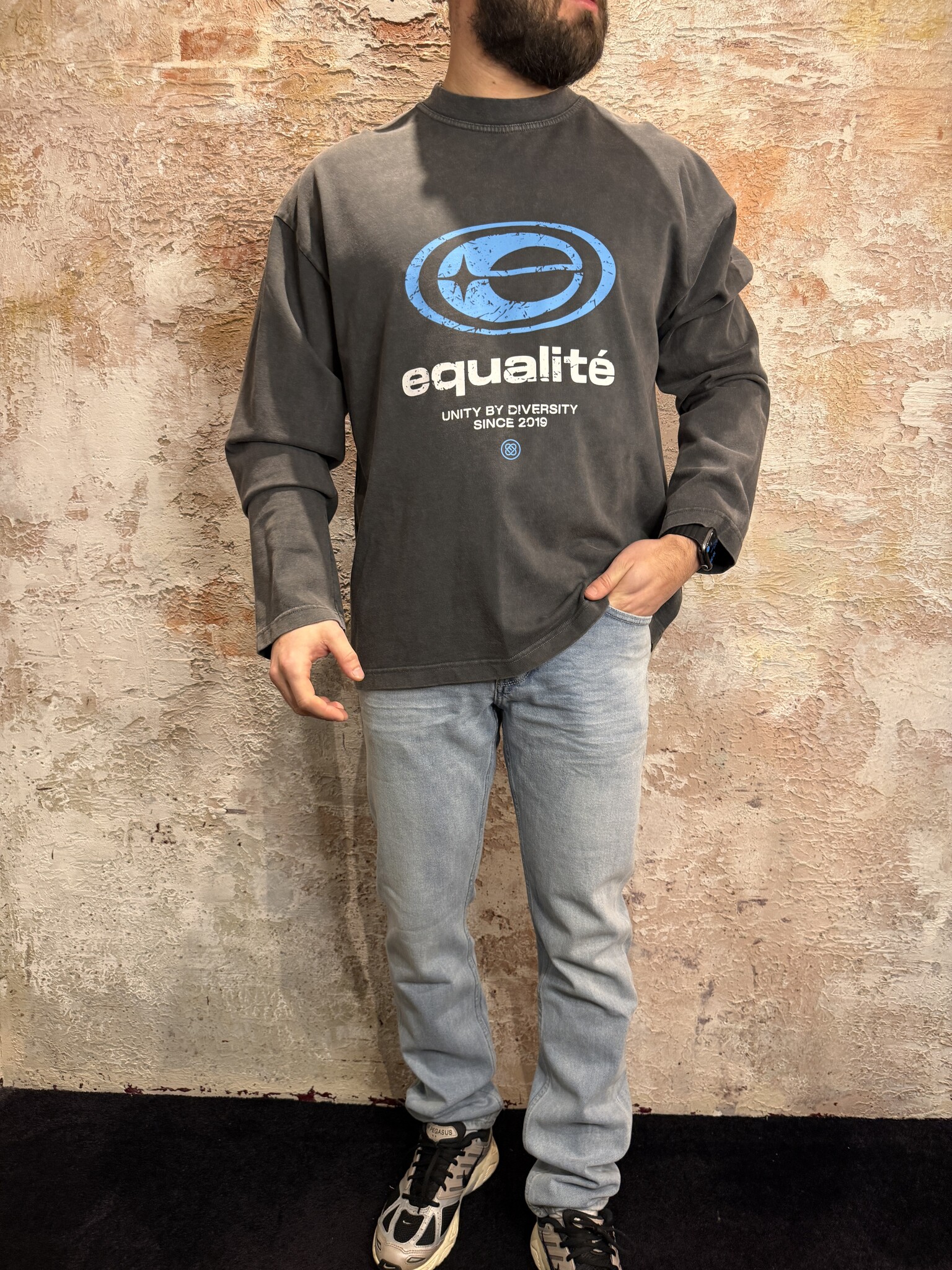 Equalité Elan Oversized Longsleeve Washed Grey met relaxte fit en vintage look. Grote logo print op de borst en subtiele backprint. Zachte kwaliteit en perfect voor een stoere streetwear outfit. #Equalite #Oversized #Longsleeve #Streetwear #Have2Have