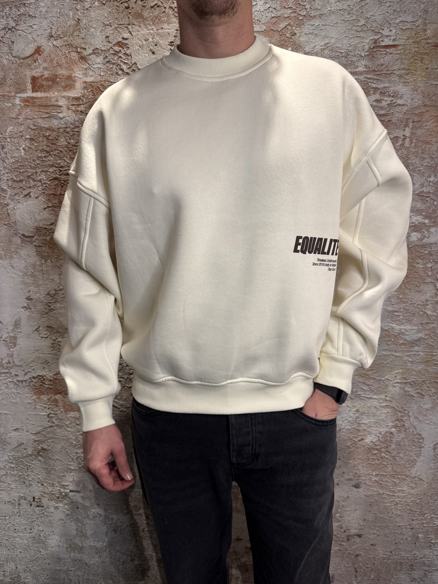 De Equalité Elia Oversized Boxy Sweater Off White combineert comfort met een krachtige streetwear-look. Gemaakt van premium katoenmix, relaxed fit en opvallende witte backprint ‘EQUAL’. Perfect voor een moderne, casual outfit.