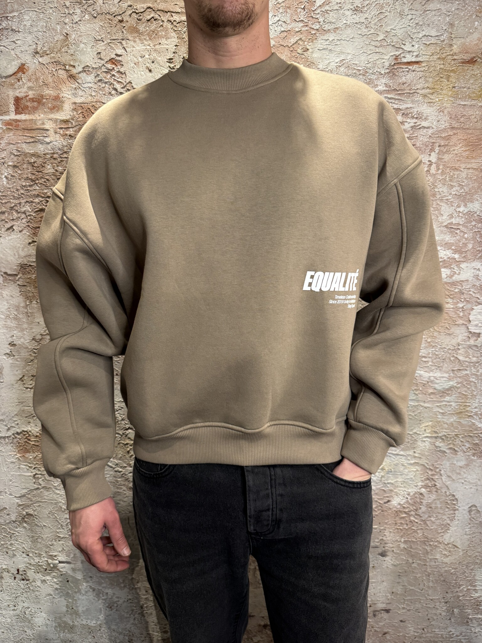 De Equalité Elia Oversized Boxy Sweater Taupe combineert comfort met een krachtige streetwear-look. Gemaakt van premium katoenmix, relaxed fit en opvallende witte backprint ‘EQUAL’. Perfect voor een moderne, casual outfit.