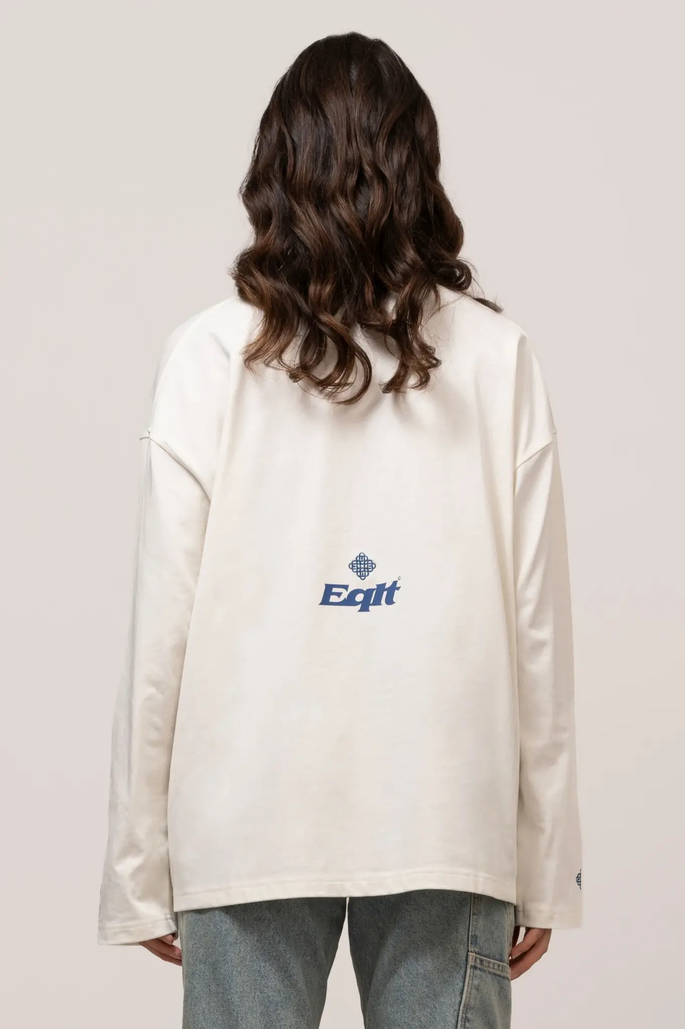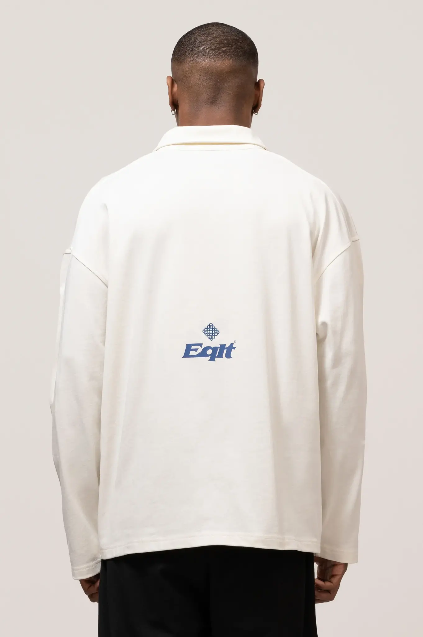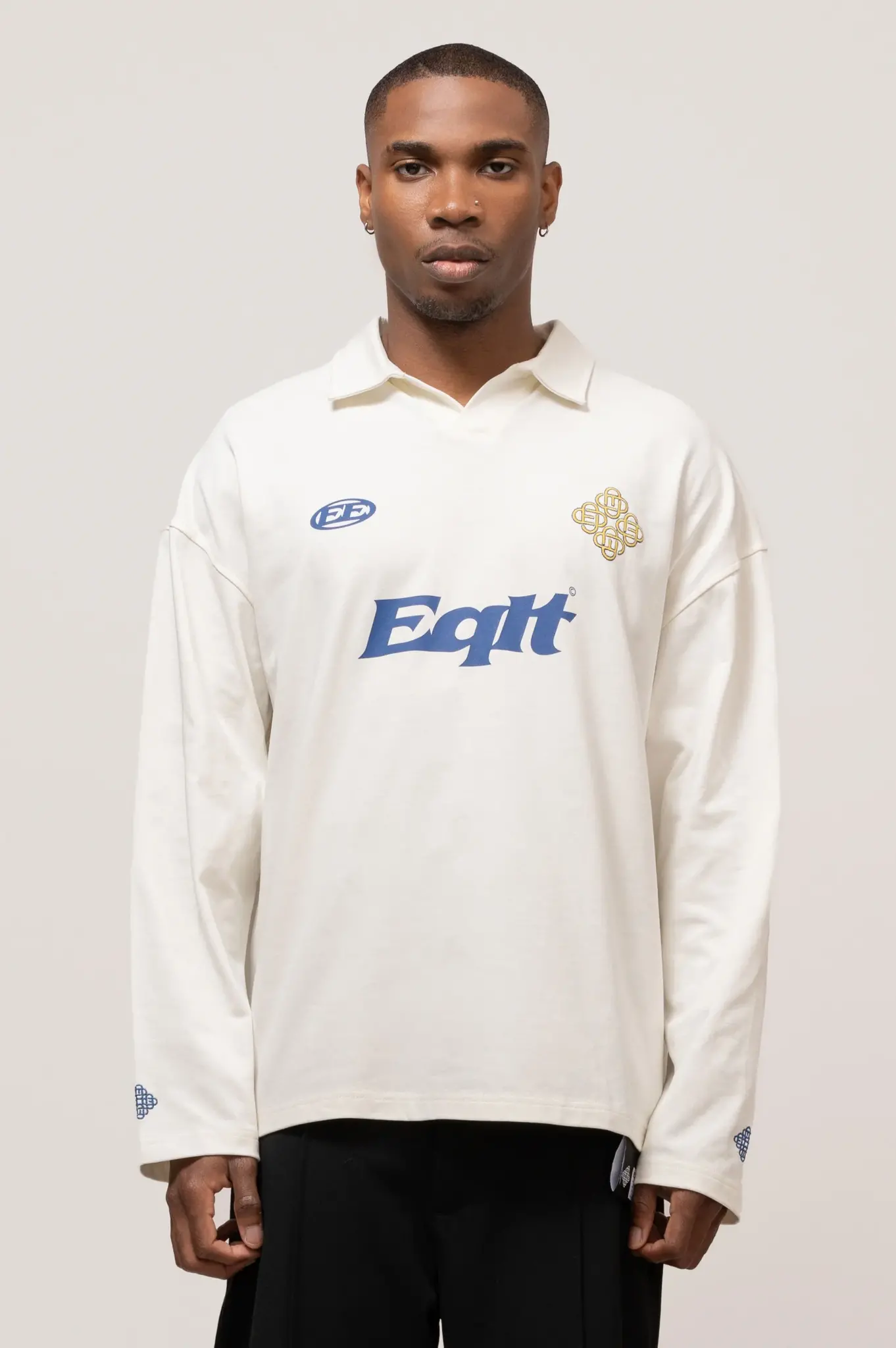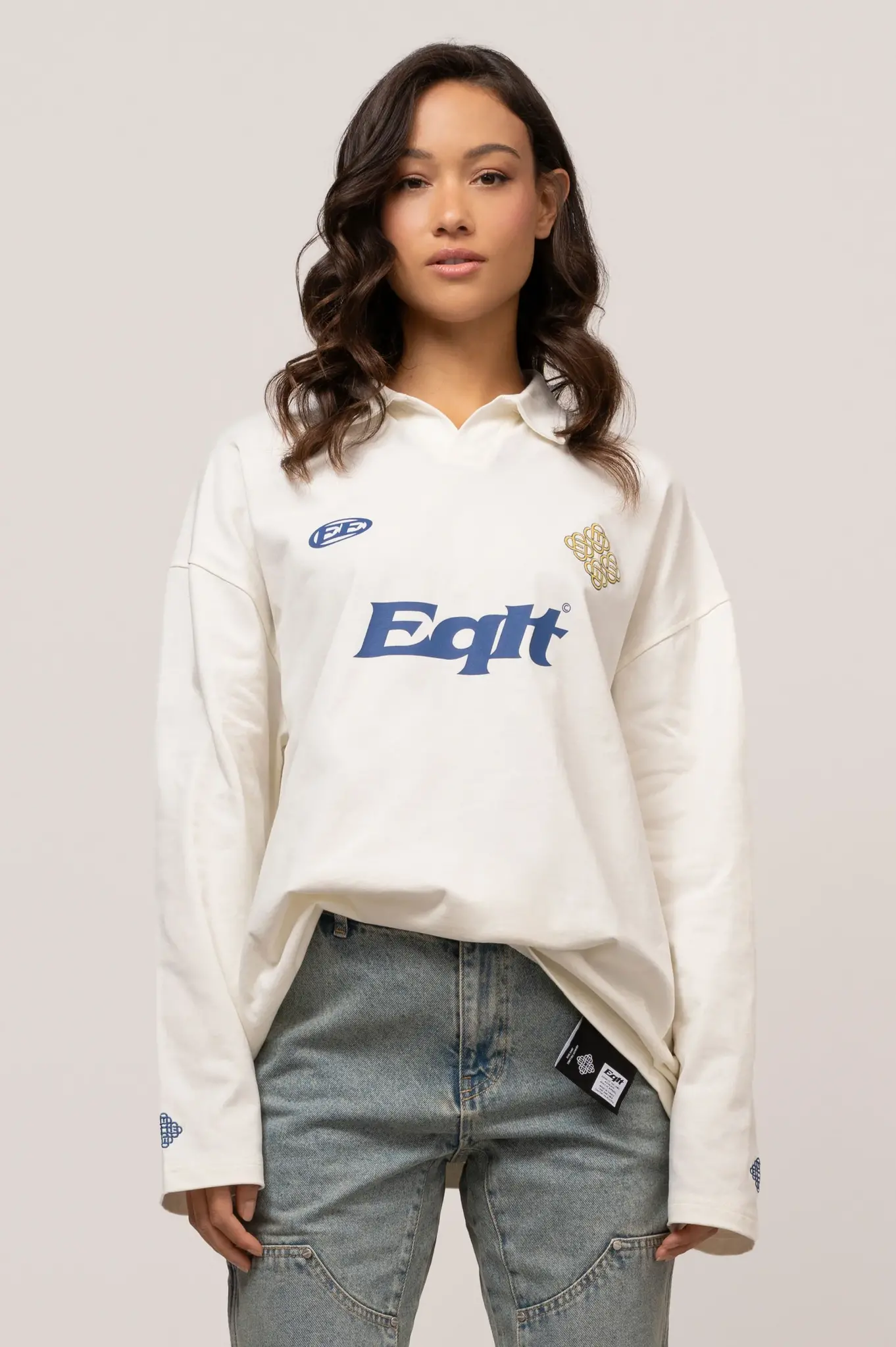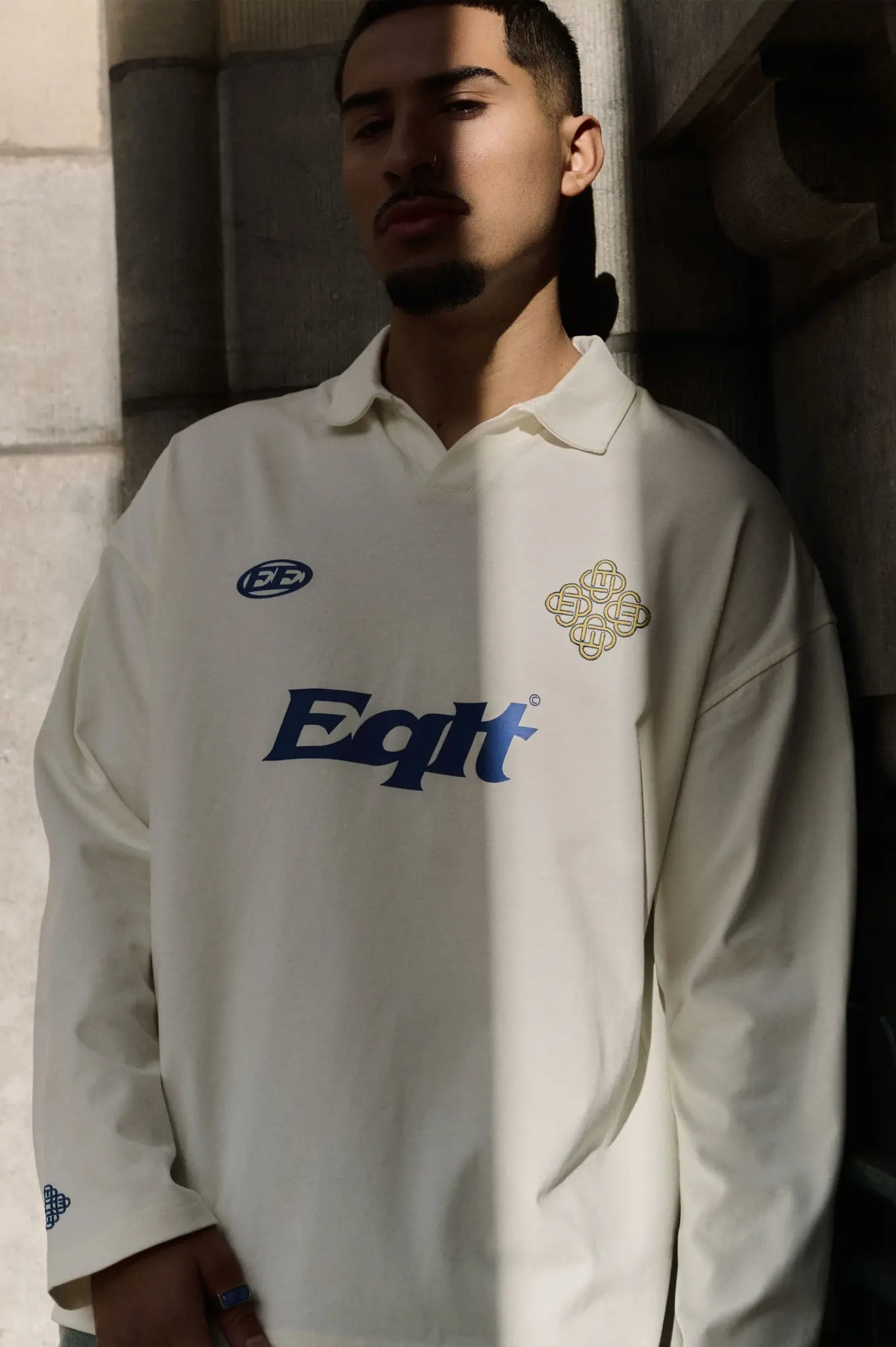 Equalité Oversized Jersey Longsleeve Polo is een stijlvolle, oversized longsleeve polo in off white. Gemaakt van hoogwaardig jersey-stof, met een subtiele kraag, lange mouwen en premium borduurdetails. Voorzien van het iconische "Eqlt" logo.