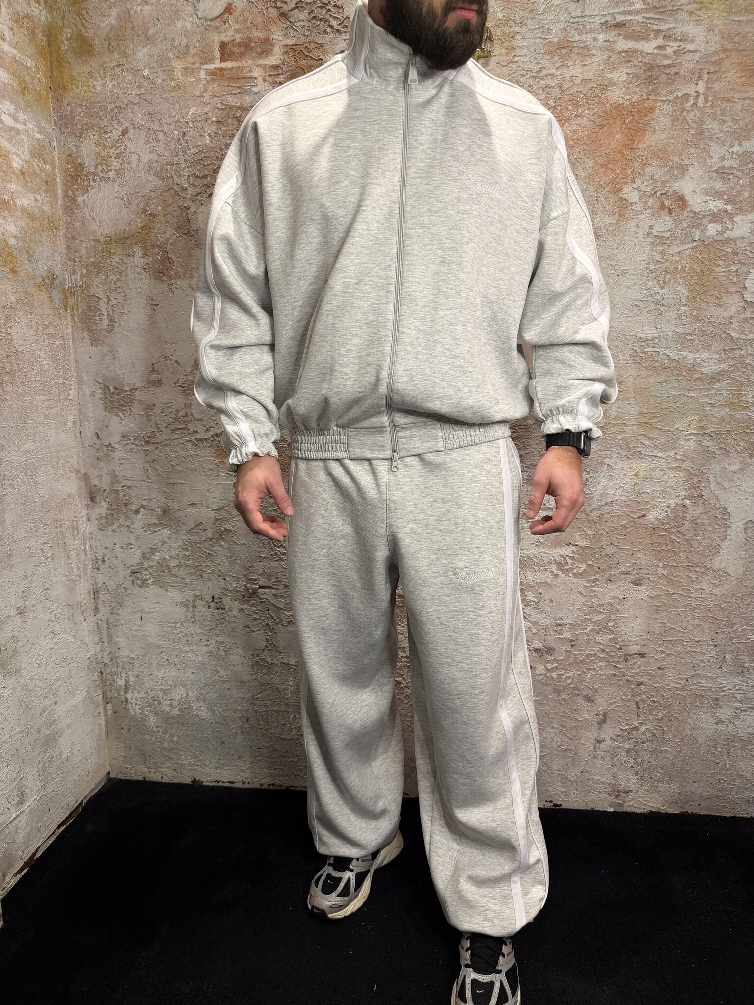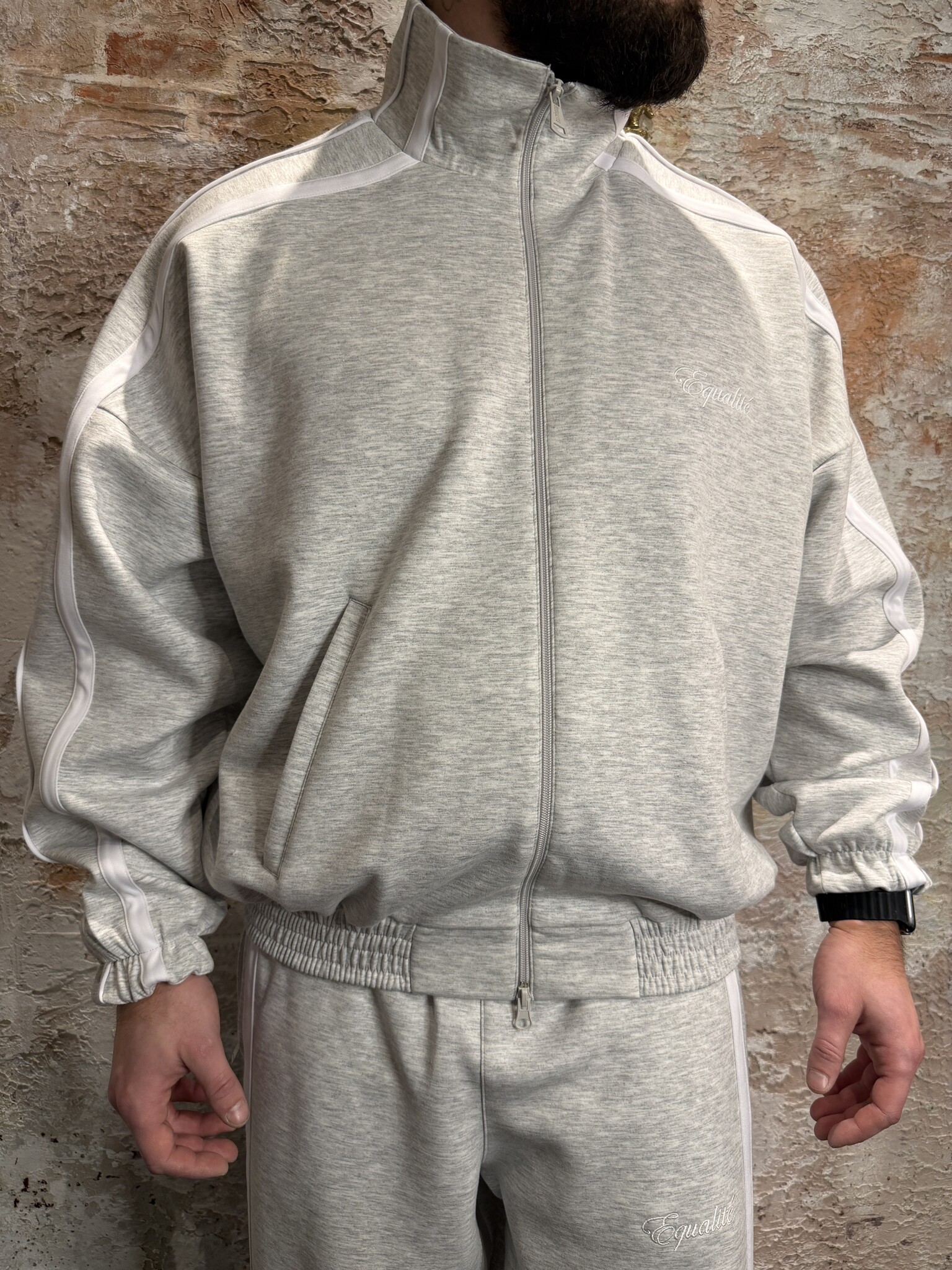 Equalité Oversized Track Jacket Grey Melange unisex met relaxte fit en sportieve look. Voorzien van ritssluiting, hoge kraag en subtiel logo detail. Perfect te combineren met de bijpassende track pants voor een streetstyle set. Shop bij Have2Have Alkmaar.