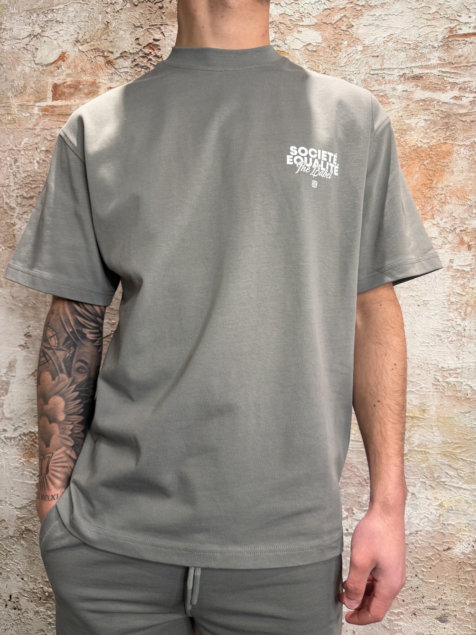 Equalité Société 2.0 Oversized Tee Grey. Oversized fit met klein borstlogo en grote backprint in off white. Gemaakt van comfortabele katoenkwaliteit. Perfect voor een frisse streetwear look. Combineer met jeans, short of cargo.