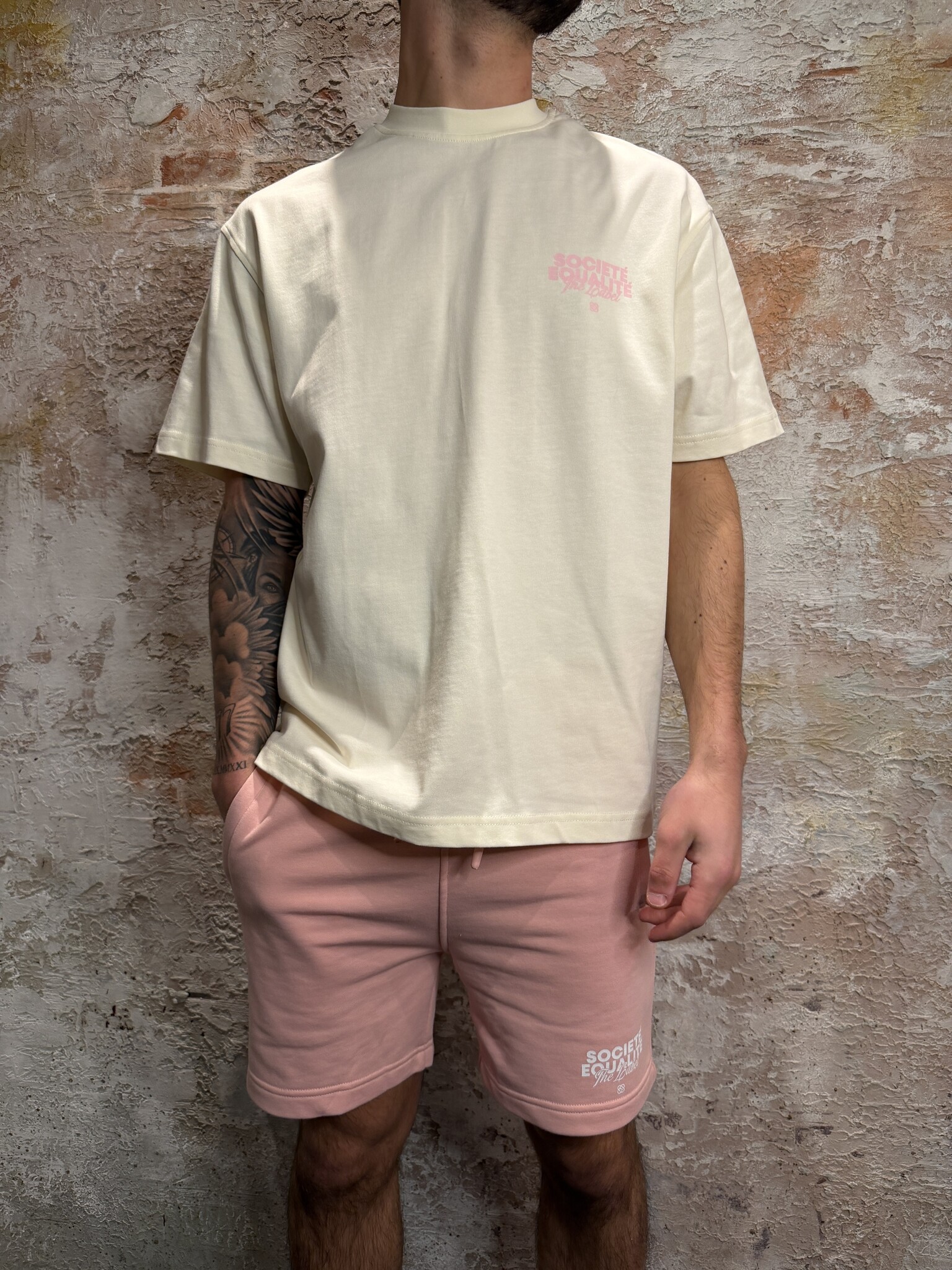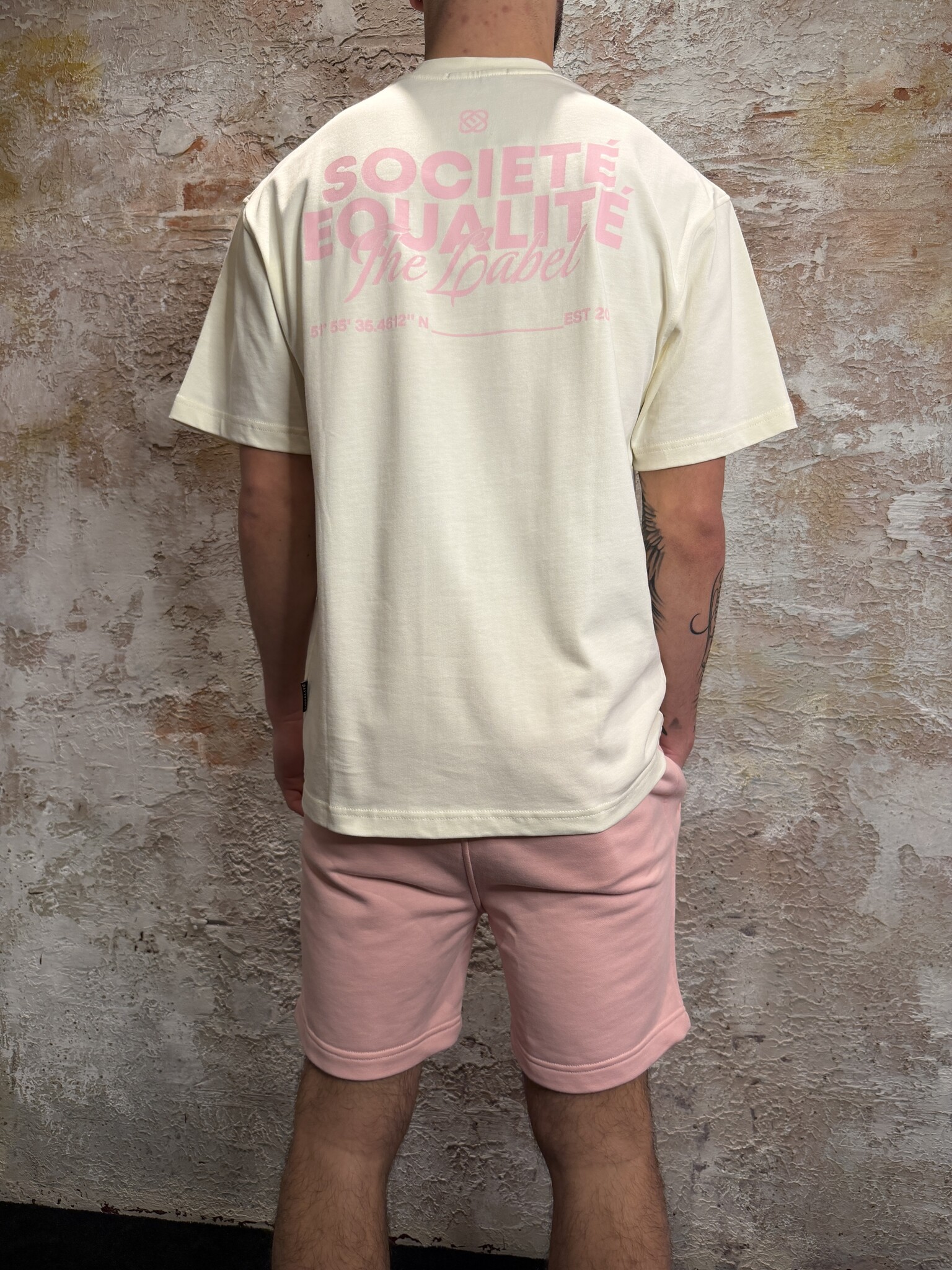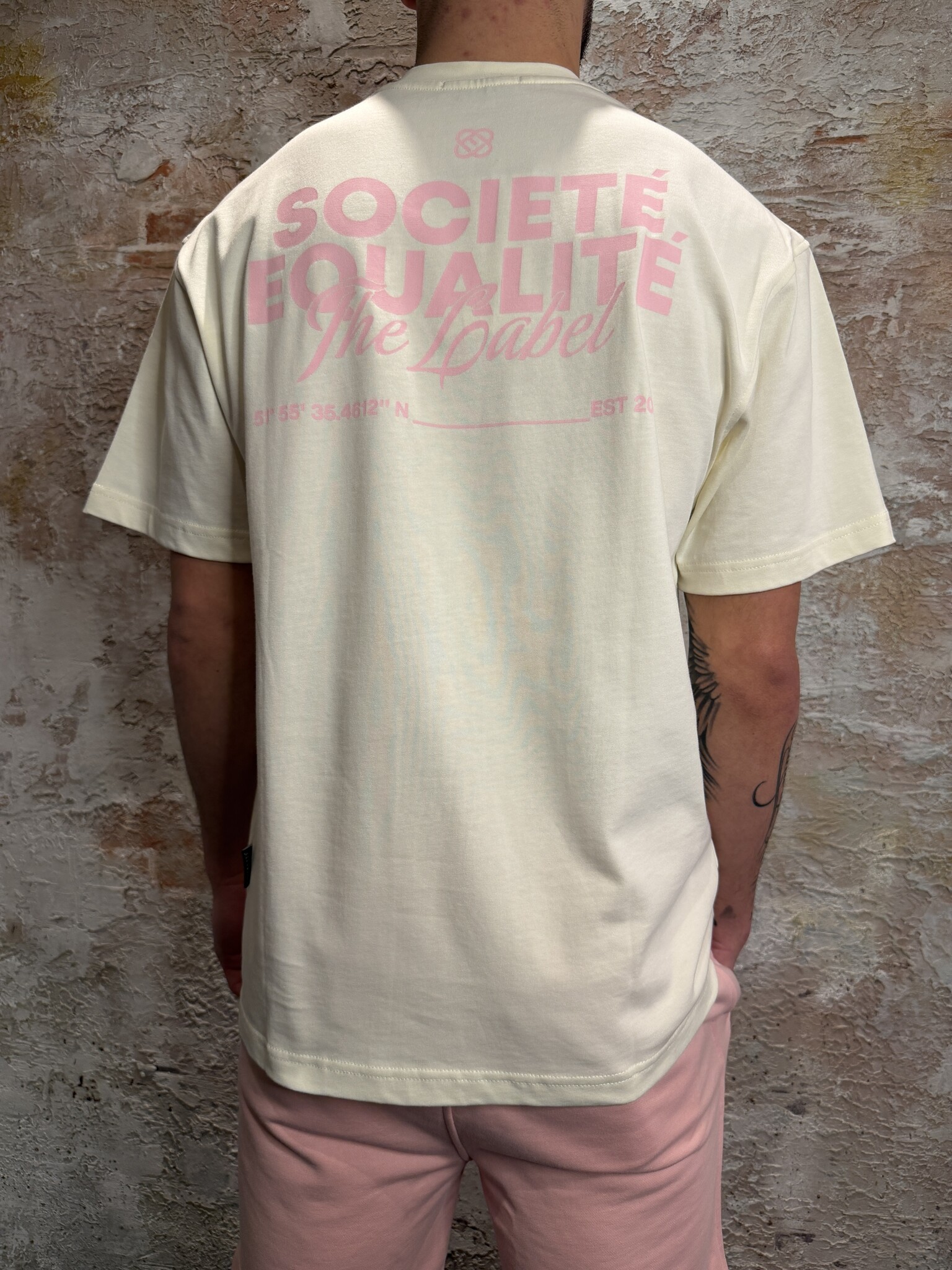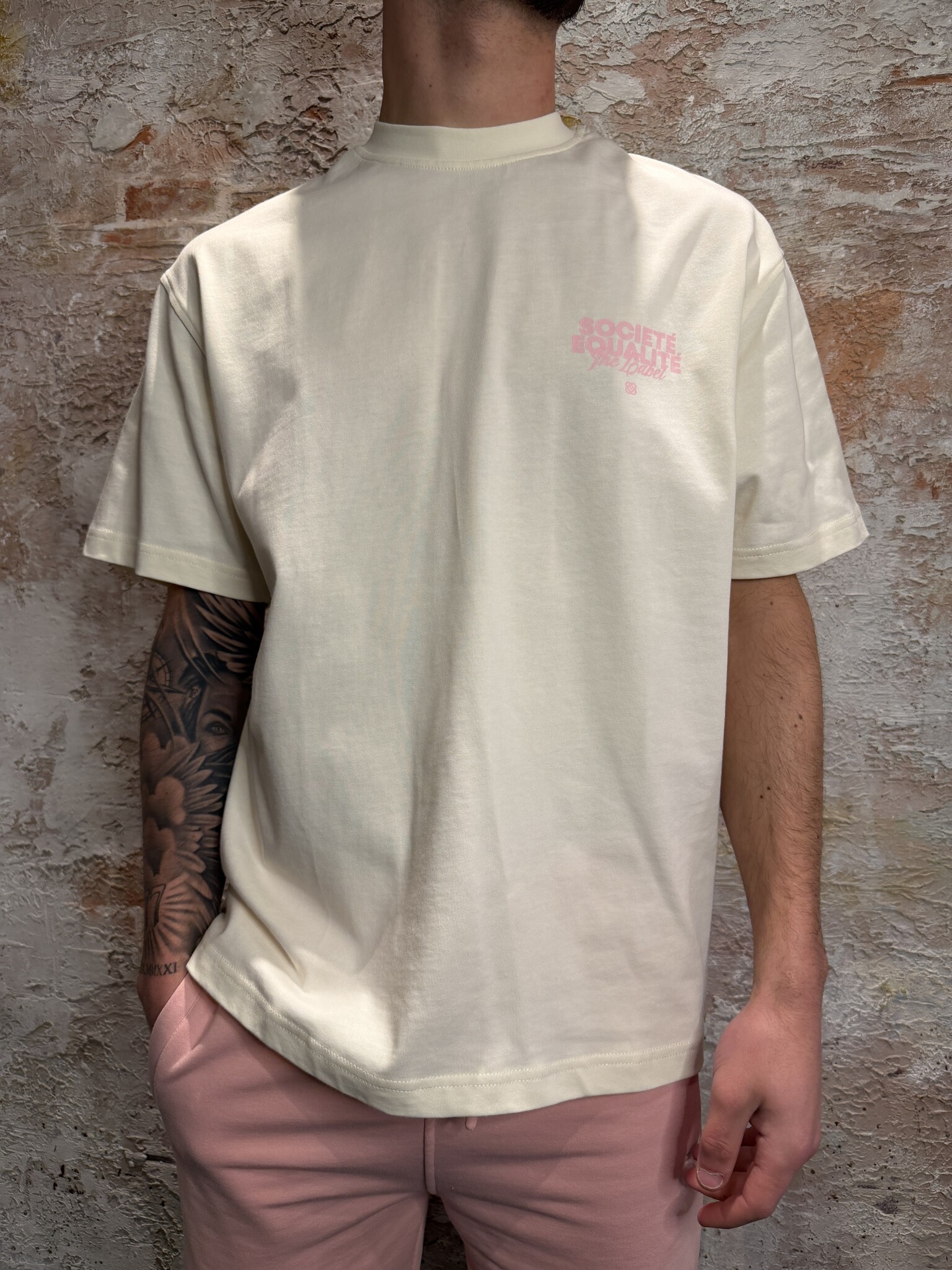 Equalité Société 2.0 Oversized Tee Off White Pink. Oversized T-shirt in offwhite met roze prints.Klein borstlogo en grote “Société Equalité” backprint. Gemaakt van comfortabele katoenkwaliteit. Perfect voor een frisse streetwear look. Combineer met short