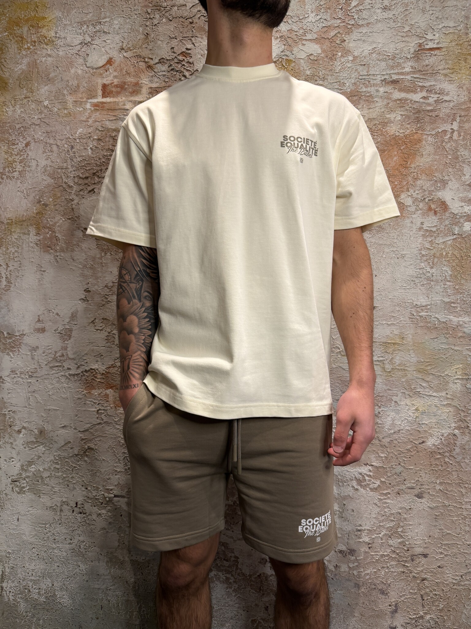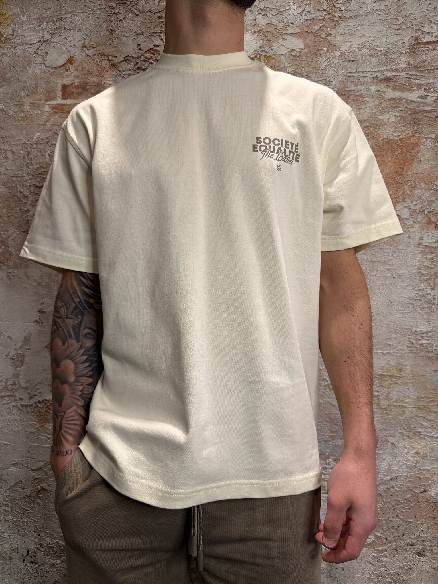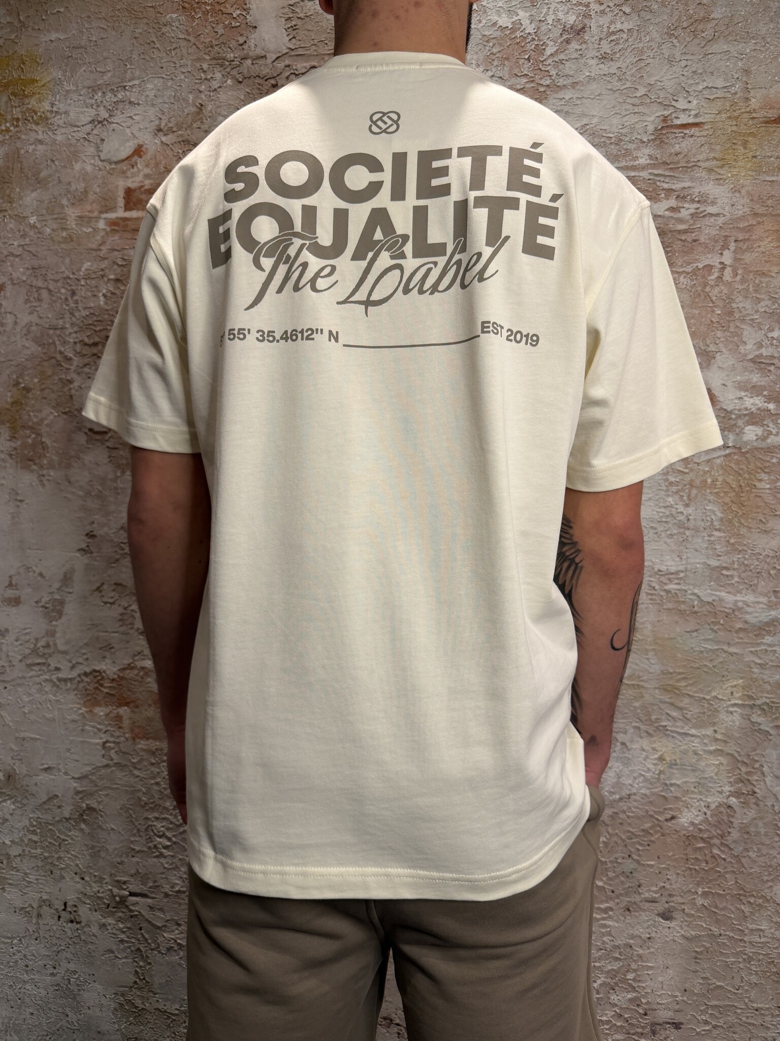 Equalité Société 2.0 Oversized Tee Off White Taupe. Oversized fit met klein borstlogo en grote backprint in taupe. Gemaakt van comfortabele katoenkwaliteit. Perfect voor een frisse streetwear look. Combineer met jeans, short of cargo.