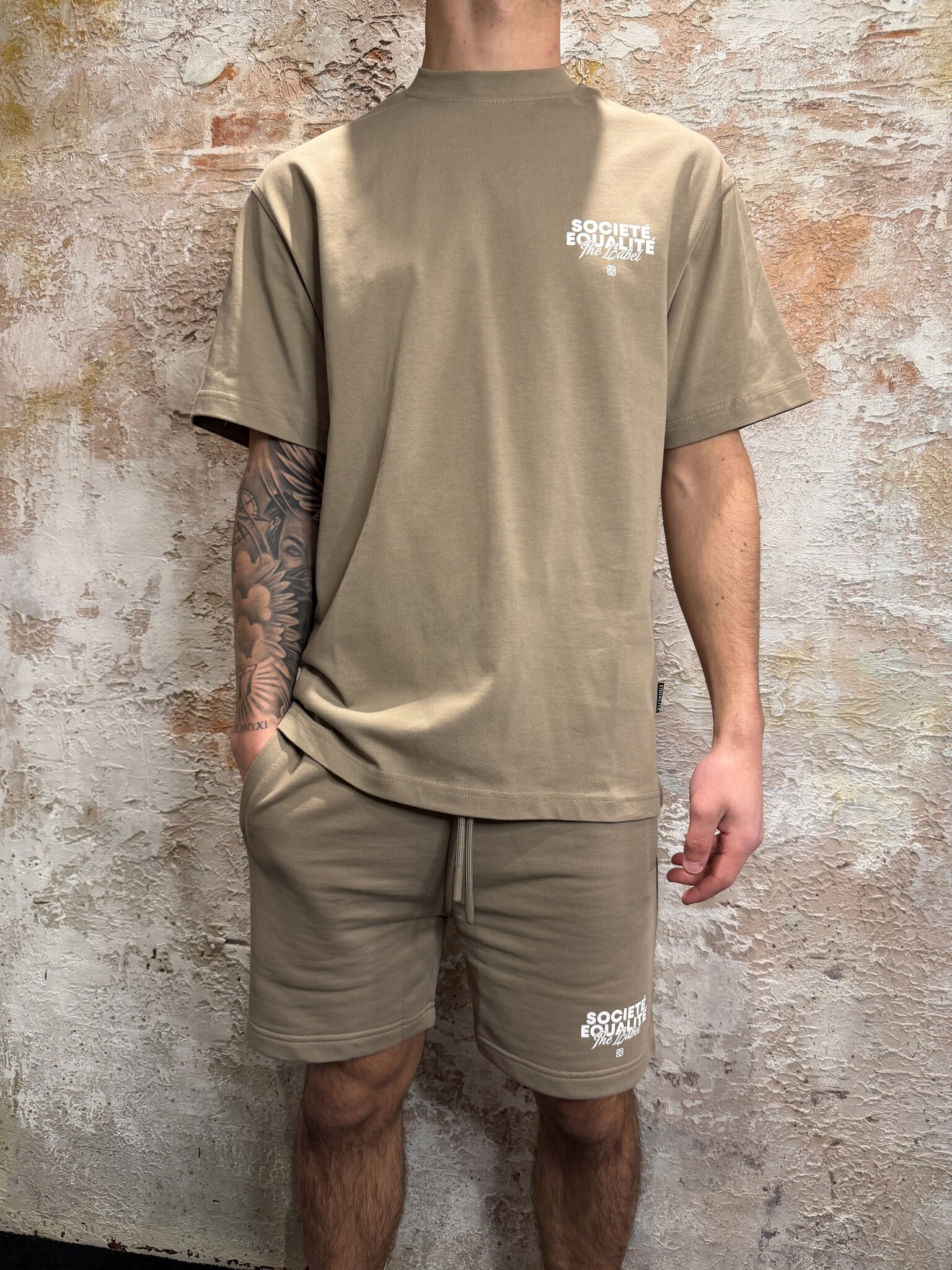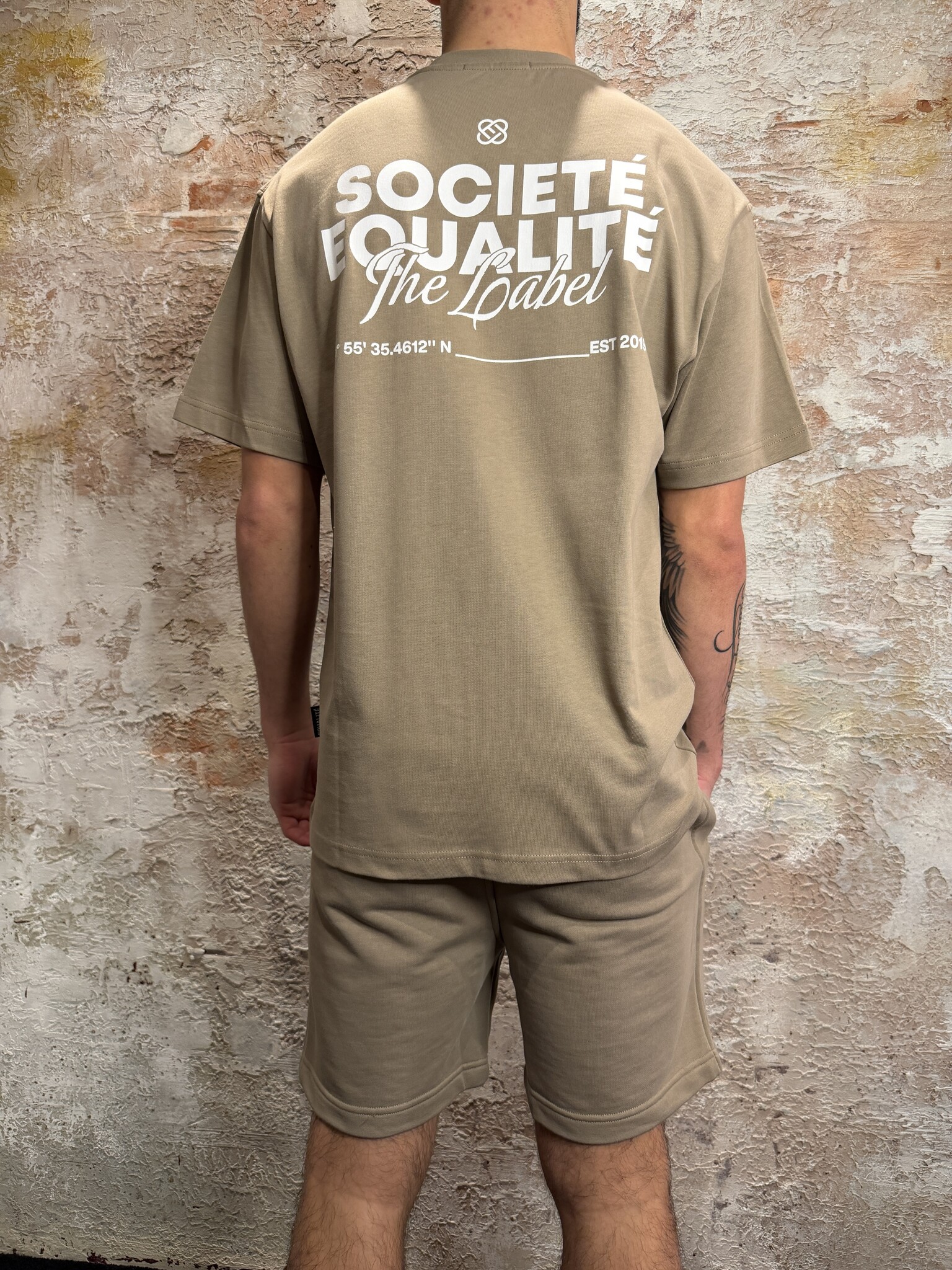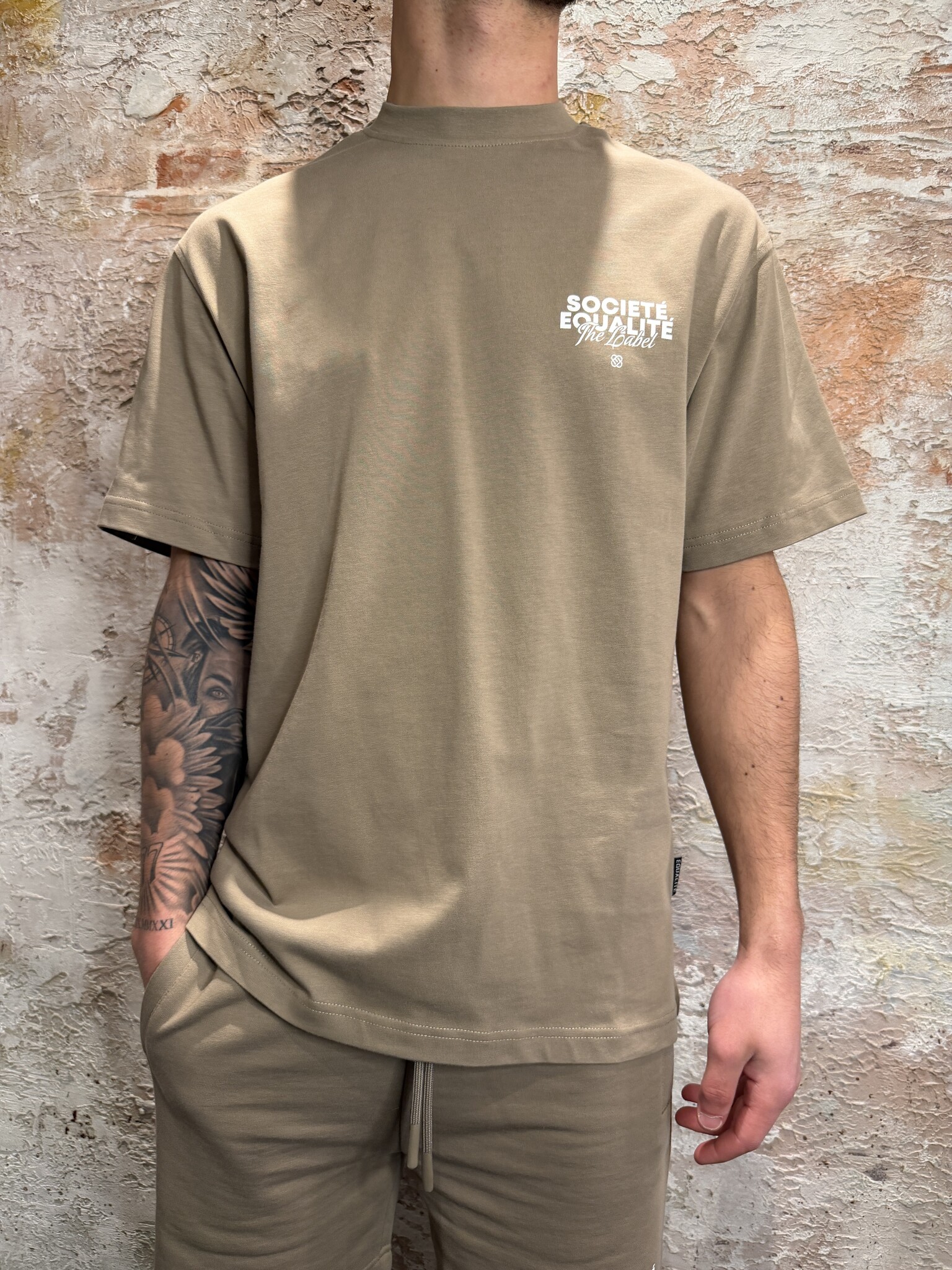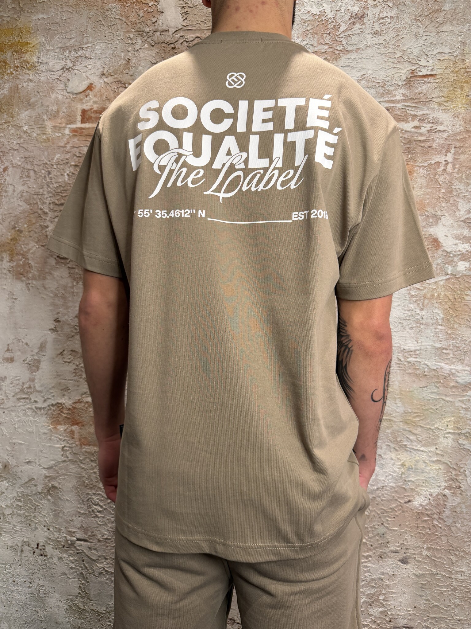 Equalité Société 2.0 Oversized Tee Taupe Off White. Oversized fit met klein borstlogo en grote backprint in taupe. Gemaakt van comfortabele katoenkwaliteit. Perfect voor een frisse streetwear look. Combineer met jeans, short of cargo.