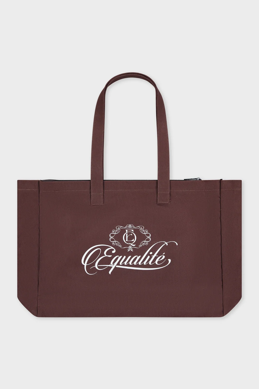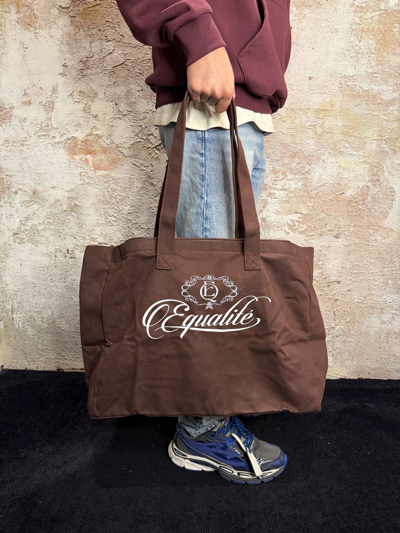Stijlvolle en stevige canvas shopper van Equalité in bruin. Voorzien van rits, lange hengsels en ruim hoofdvak. Ideaal voor dagelijks gebruik, shoppen, school of werk. Tijdloos design met luxe logo-print.