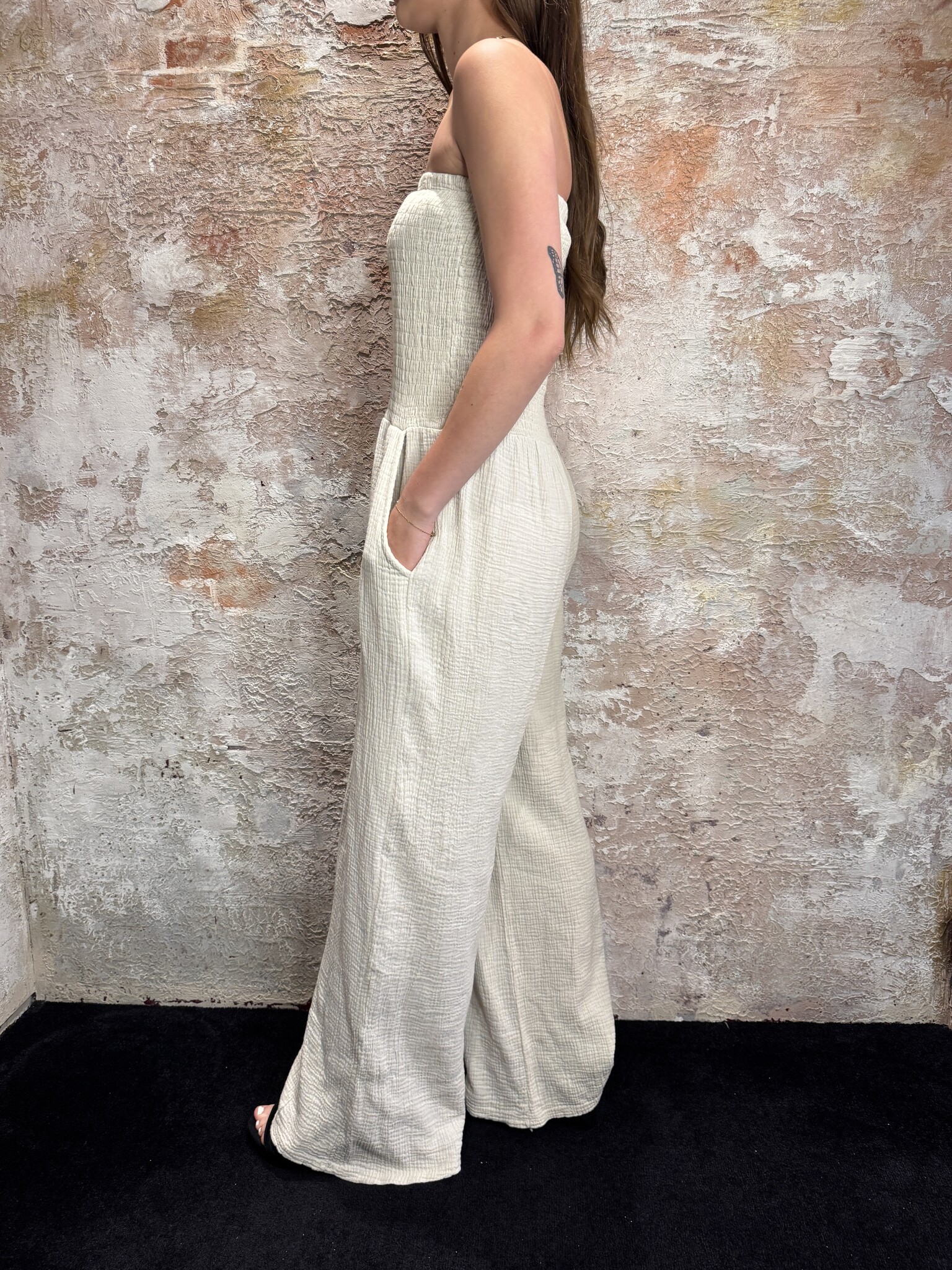 Offshoulder Jumpsuit Beige