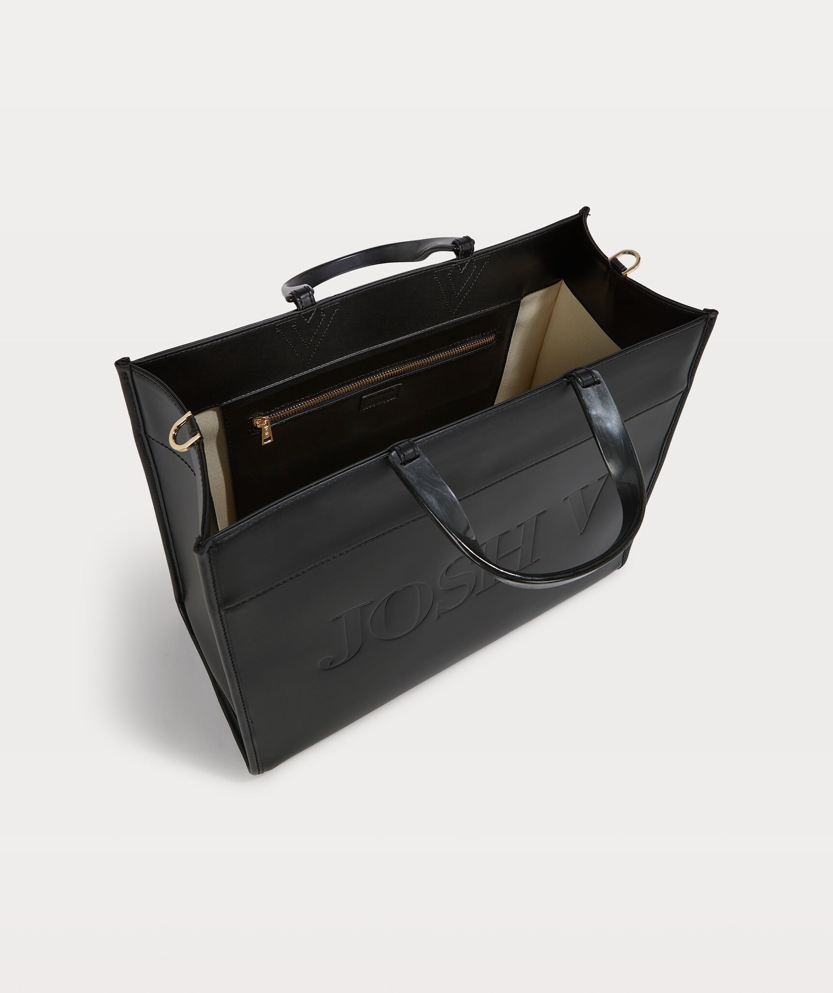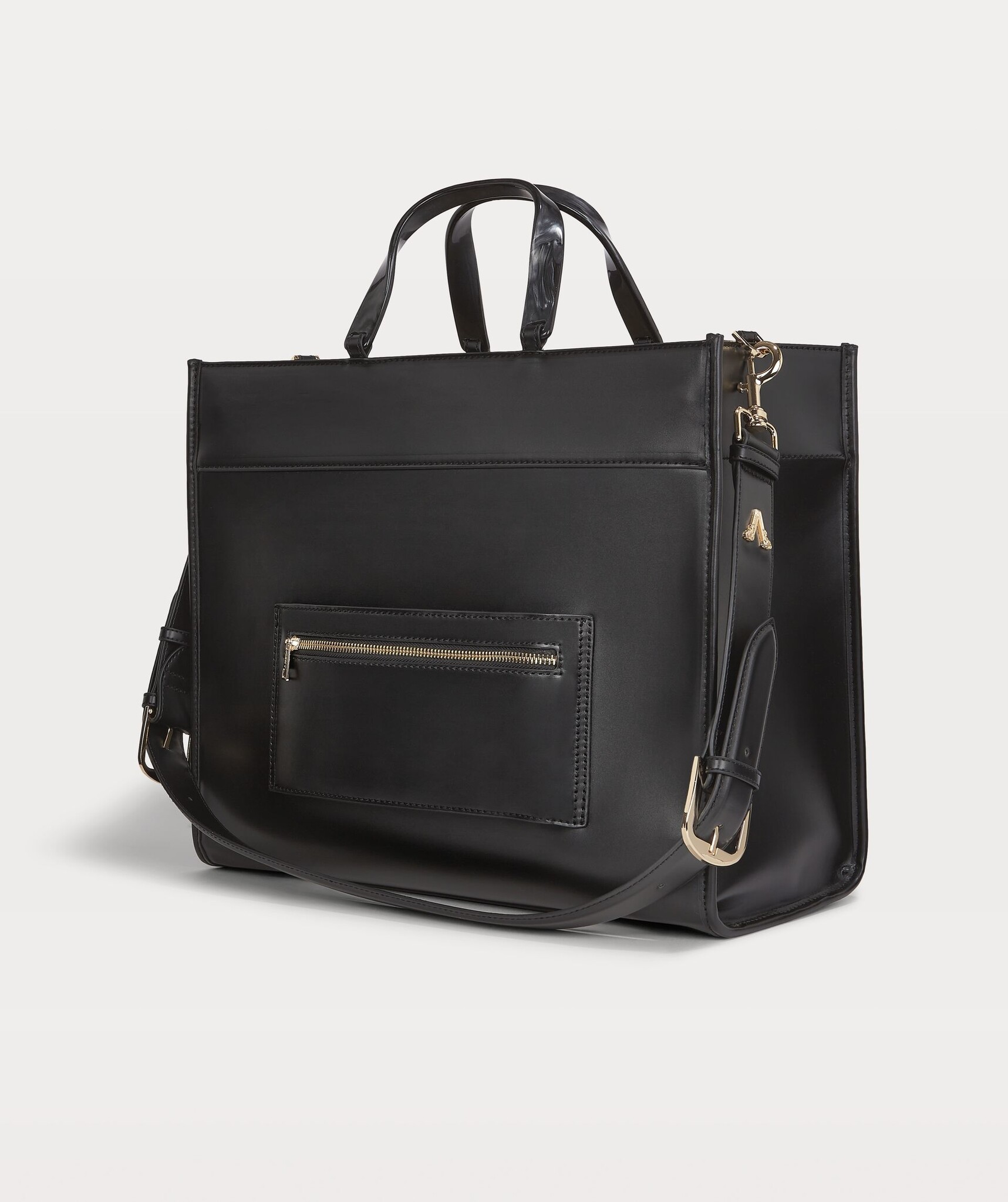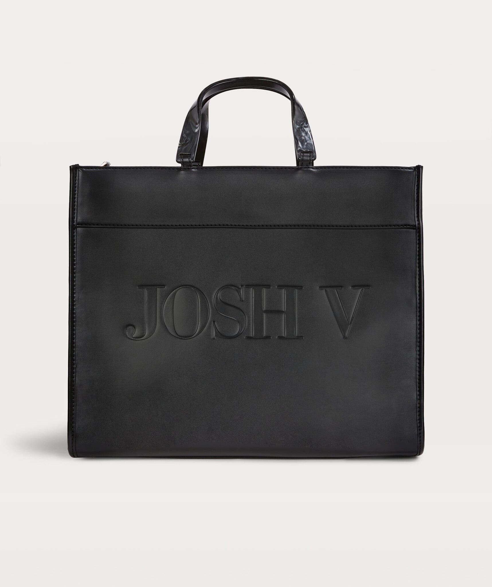 Stijlvolle en ruime zwarte tas met een minimalistisch design. De tas heeft een luxe uitstraling met reliëflogo, dubbele handvaten en een verstelbare schouderriem.Binnenin is er voldoende ruimte en vakjes.