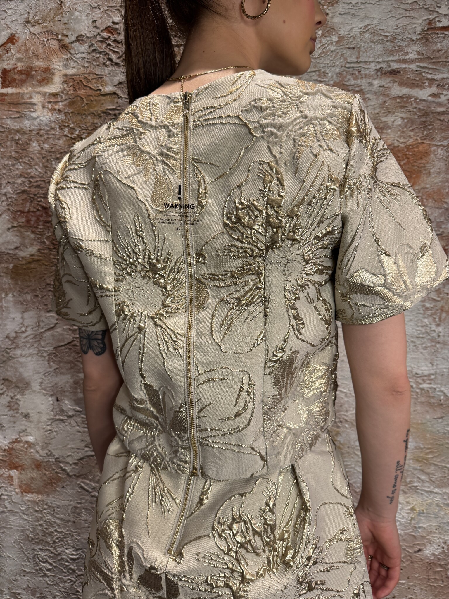 De Josh V Kiliana Korte Top in Stone Silver heeft een chique bloemenjacquard met glanzend gouden accenten. Combineer met de bijpassende Marleen Skirt voor een elegante co-ord set — perfect voor feestelijke gelegenheden of een stijlvolle zomerlook.