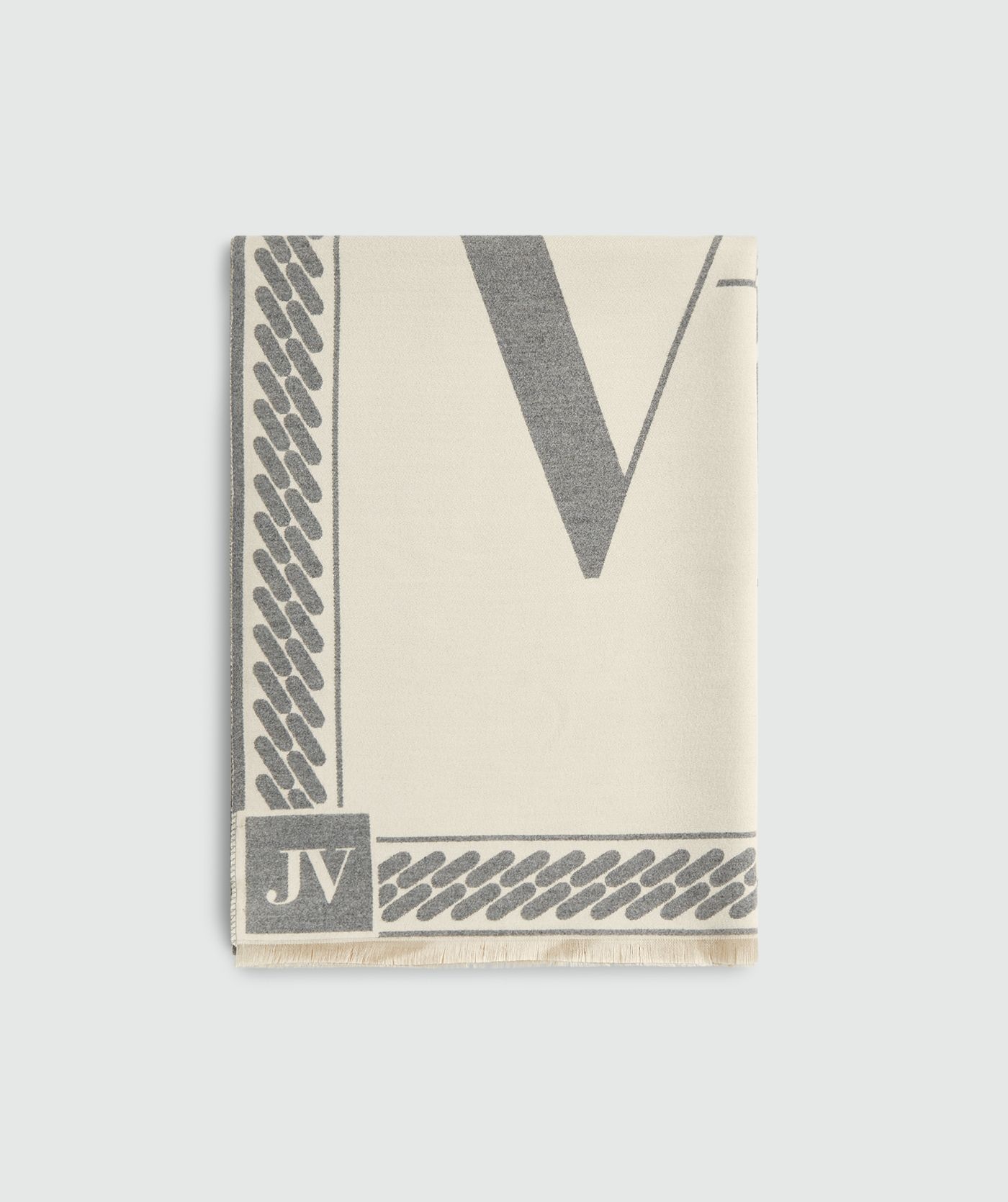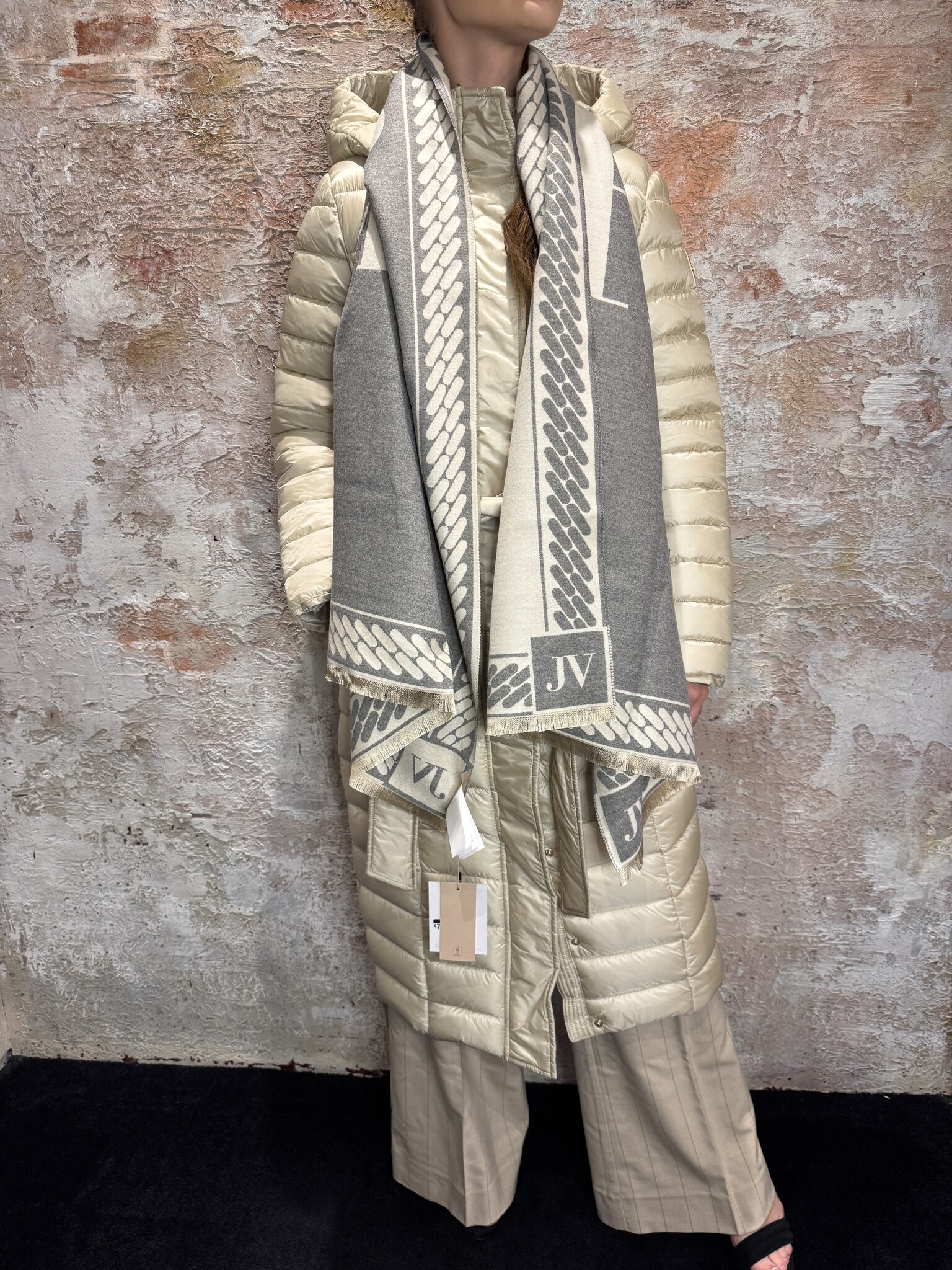 De JOSH V Lana Scarf in Grey Cream is een chique, zachte sjaal met contrasterend JV-logo en kettingprint. Het luxe design en de neutrale kleuren maken hem perfect om elke outfit stijlvol en warm af te maken.