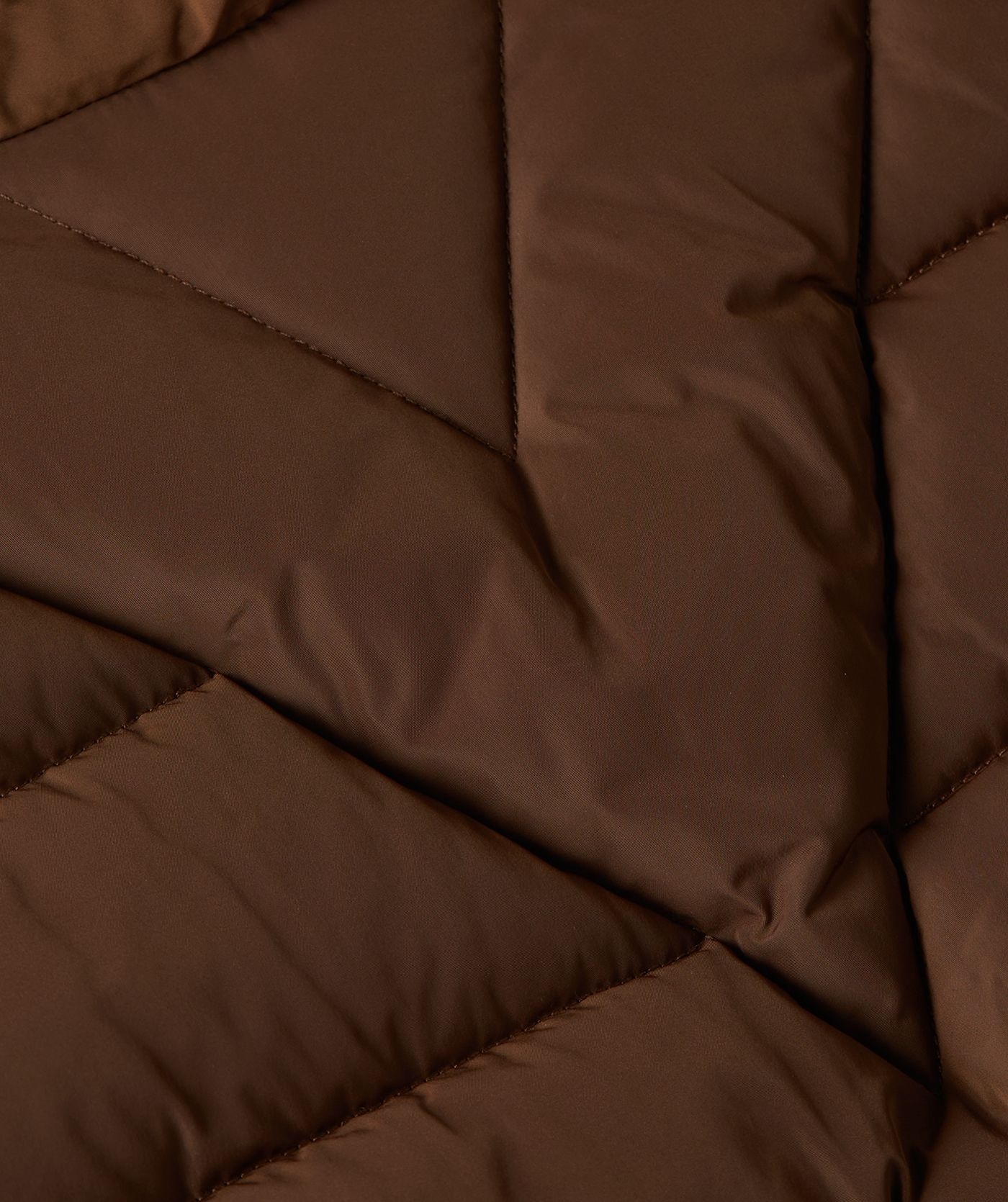 Josh V Marietta Winterjacket Dark Brown, elegante gewatteerde dames winterjas met ceintuur en goudkleurige details. Comfortabel, warm en stijlvol. Perfecte pasvorm met afneembare capuchon voor een luxe winterlook.