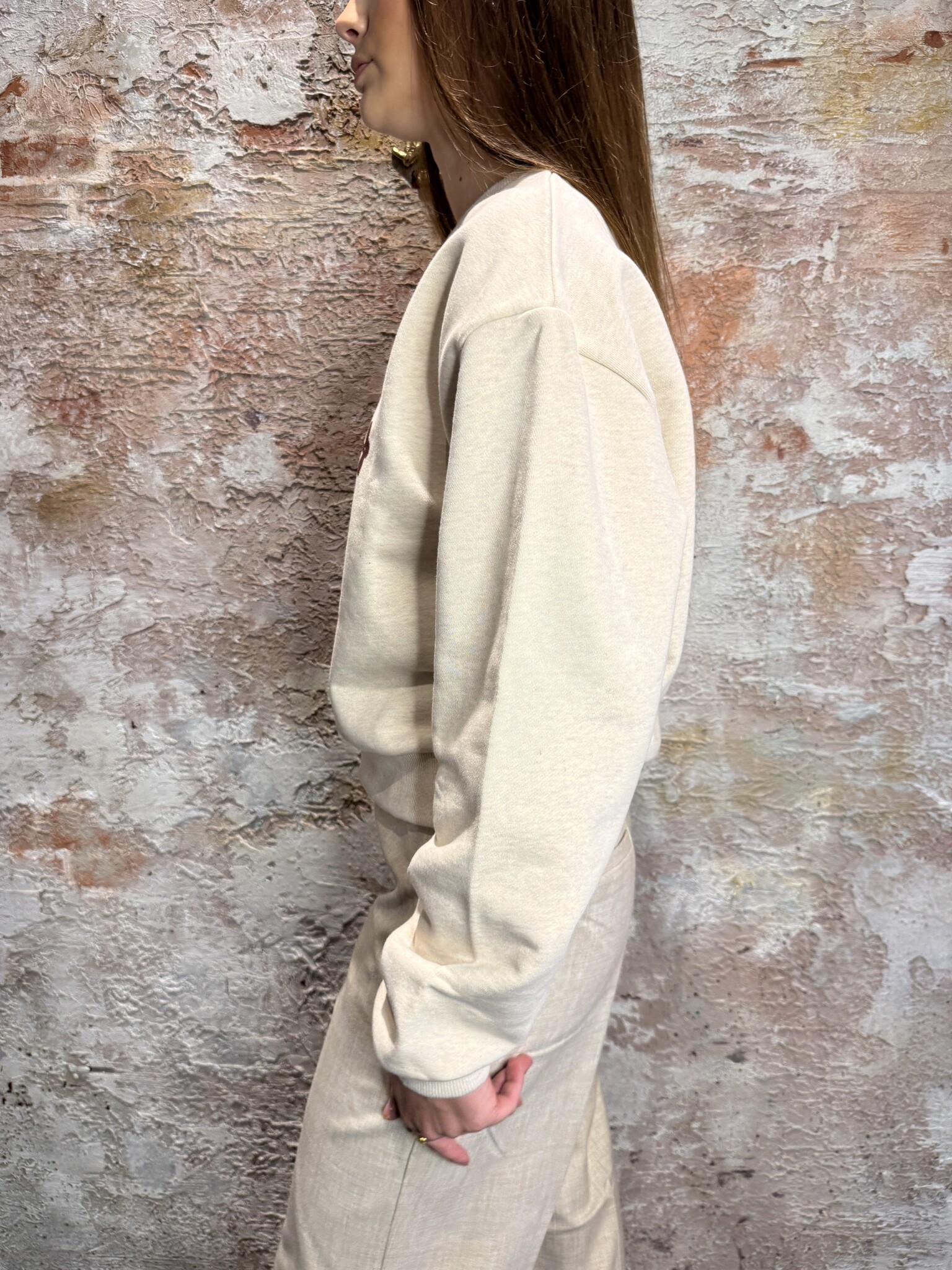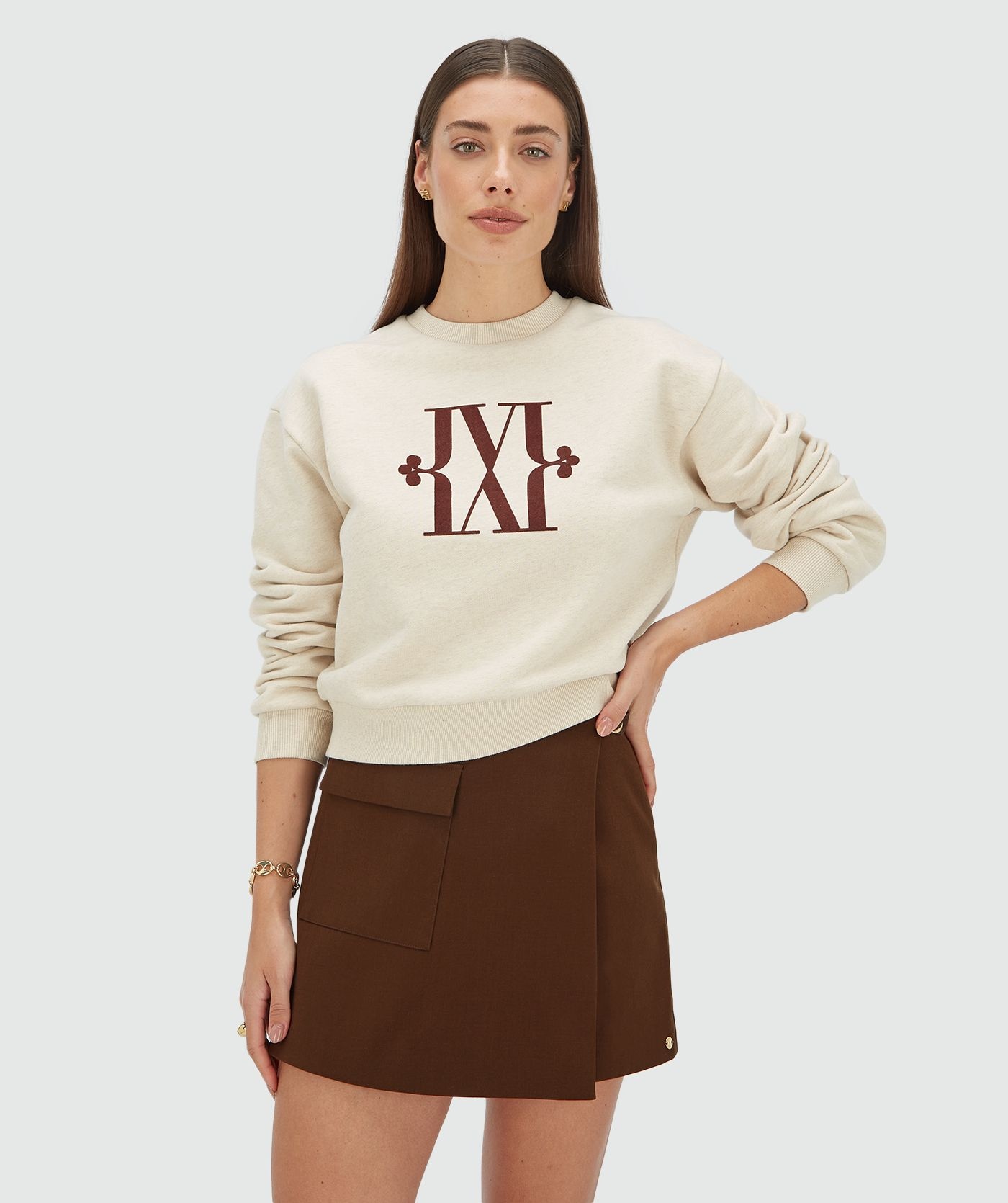 De JOSH V Ebah Sweater in Light Ecru is een comfortabele trui met een opvallend bruin JV-logo op de voorzijde. Gemaakt van zachte, hoogwaardige stof en voorzien van een relaxte pasvorm voor een stijlvolle, casual look.