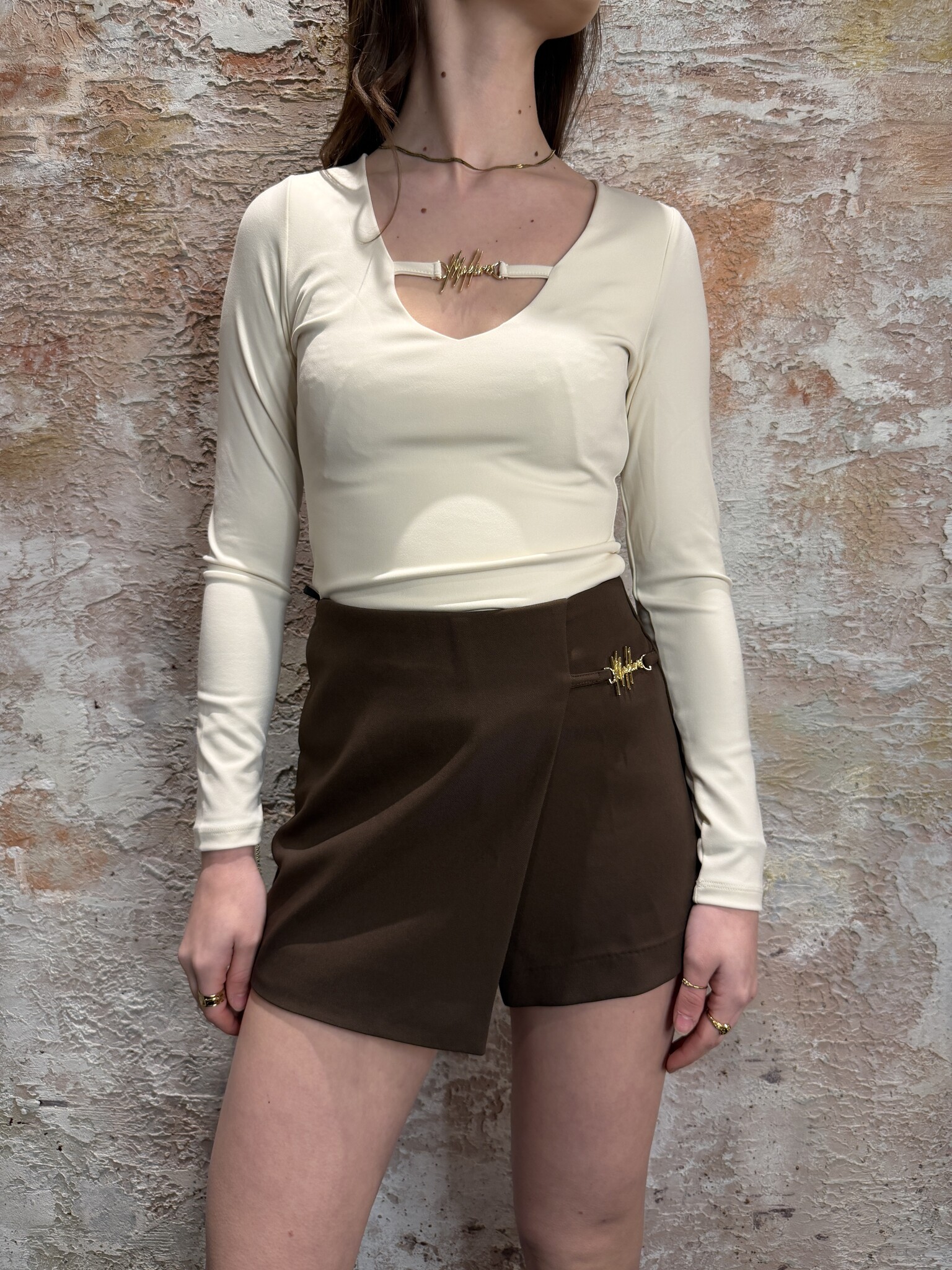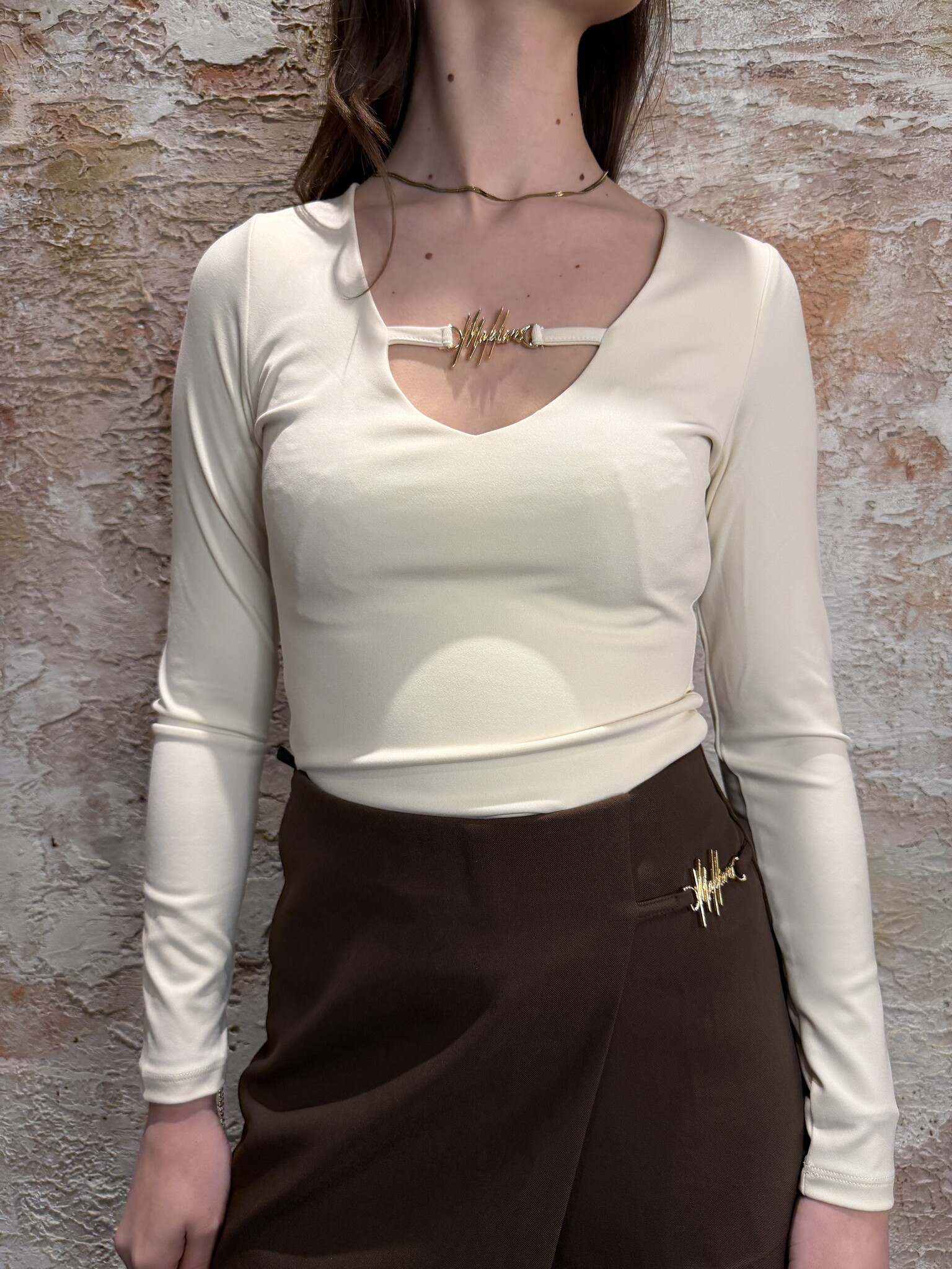 De Malelions V-Neck Top in ecru heeft een vrouwelijke, aangesloten fit en diepe V-hals. Gemaakt van comfortabele stretchkwaliteit met subtiel logo detail bij de hals. Perfect te combineren met de Social Club Skort voor een stijlvolle co-ord set.