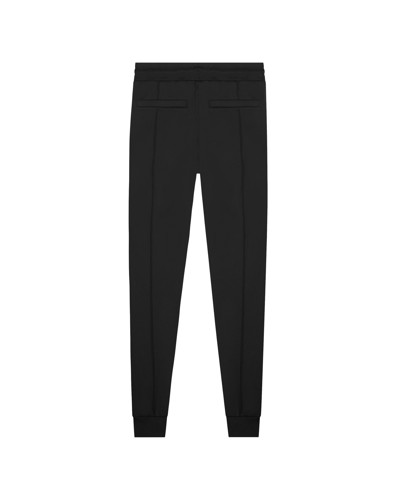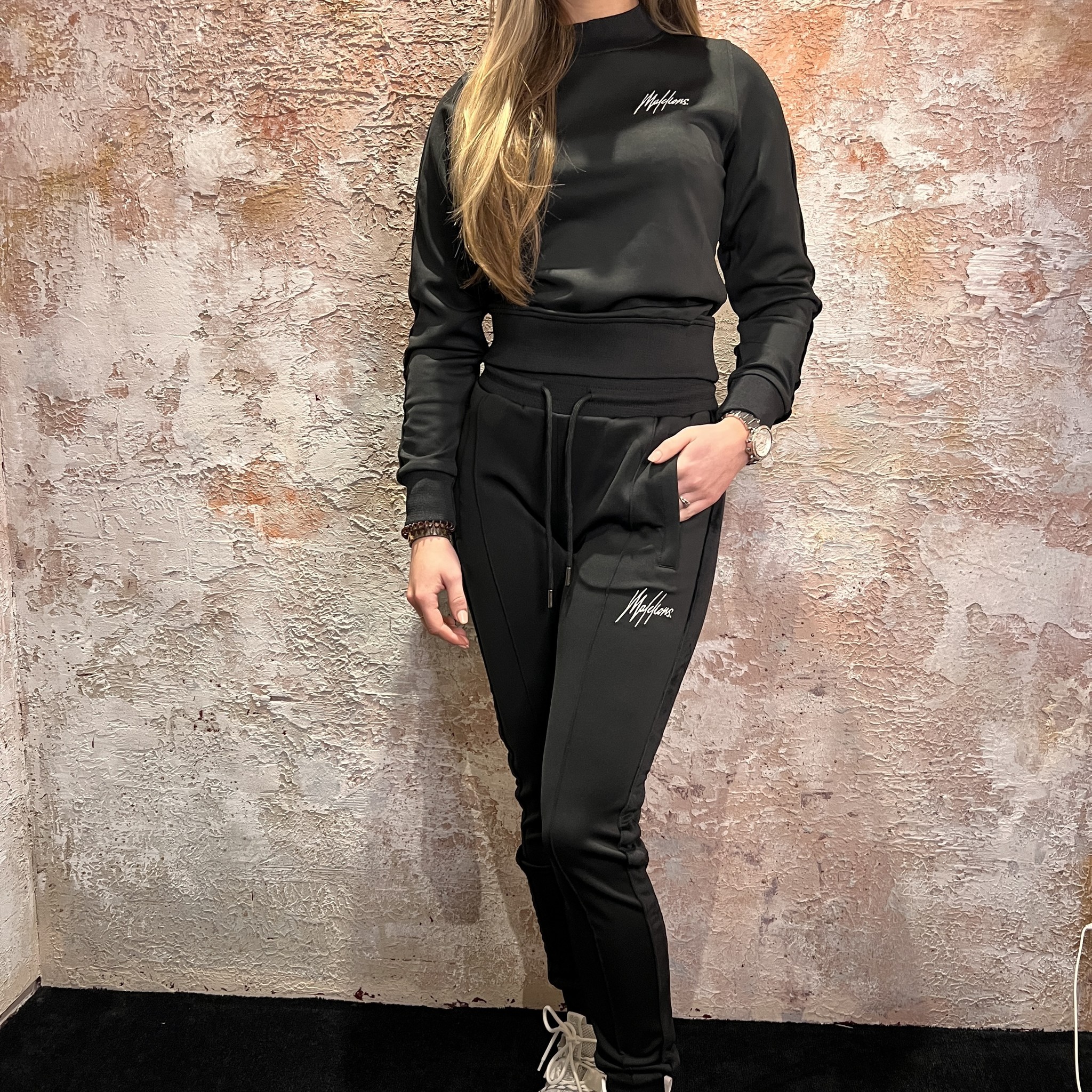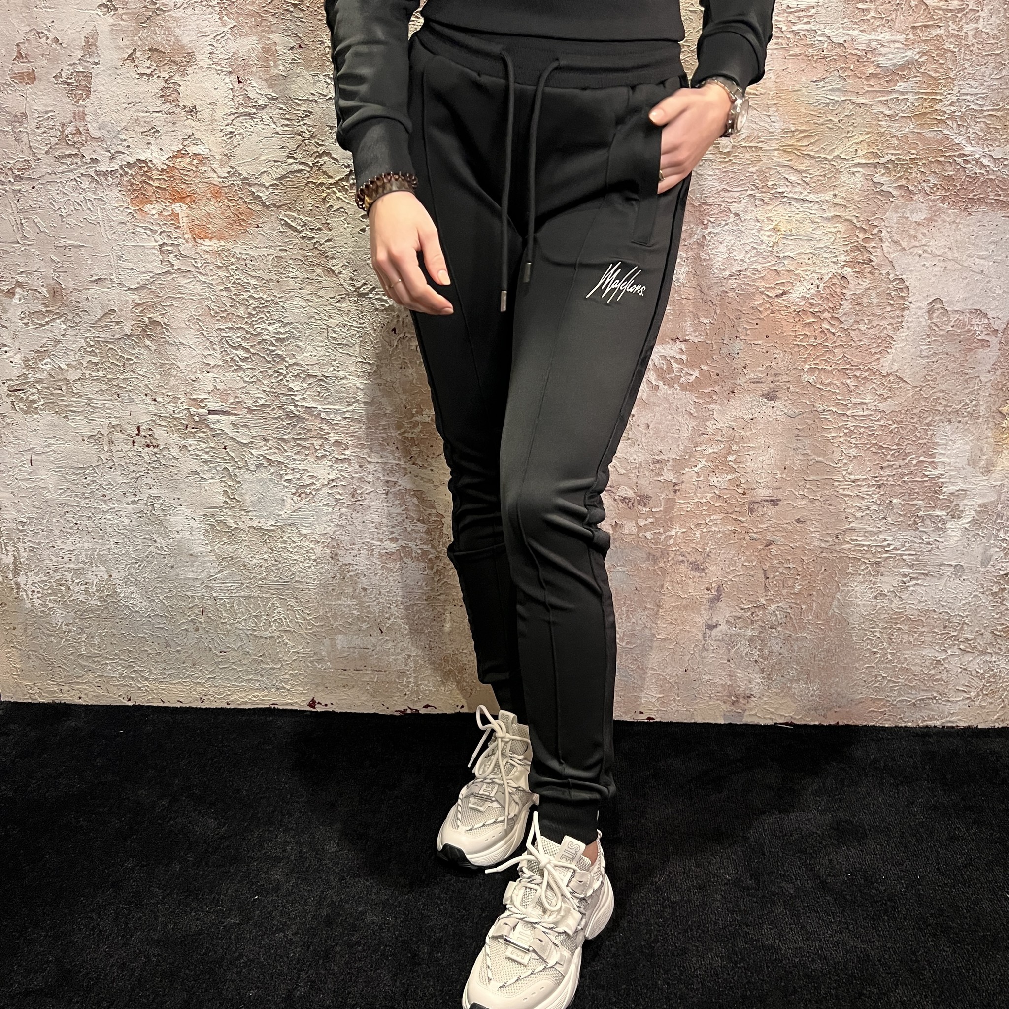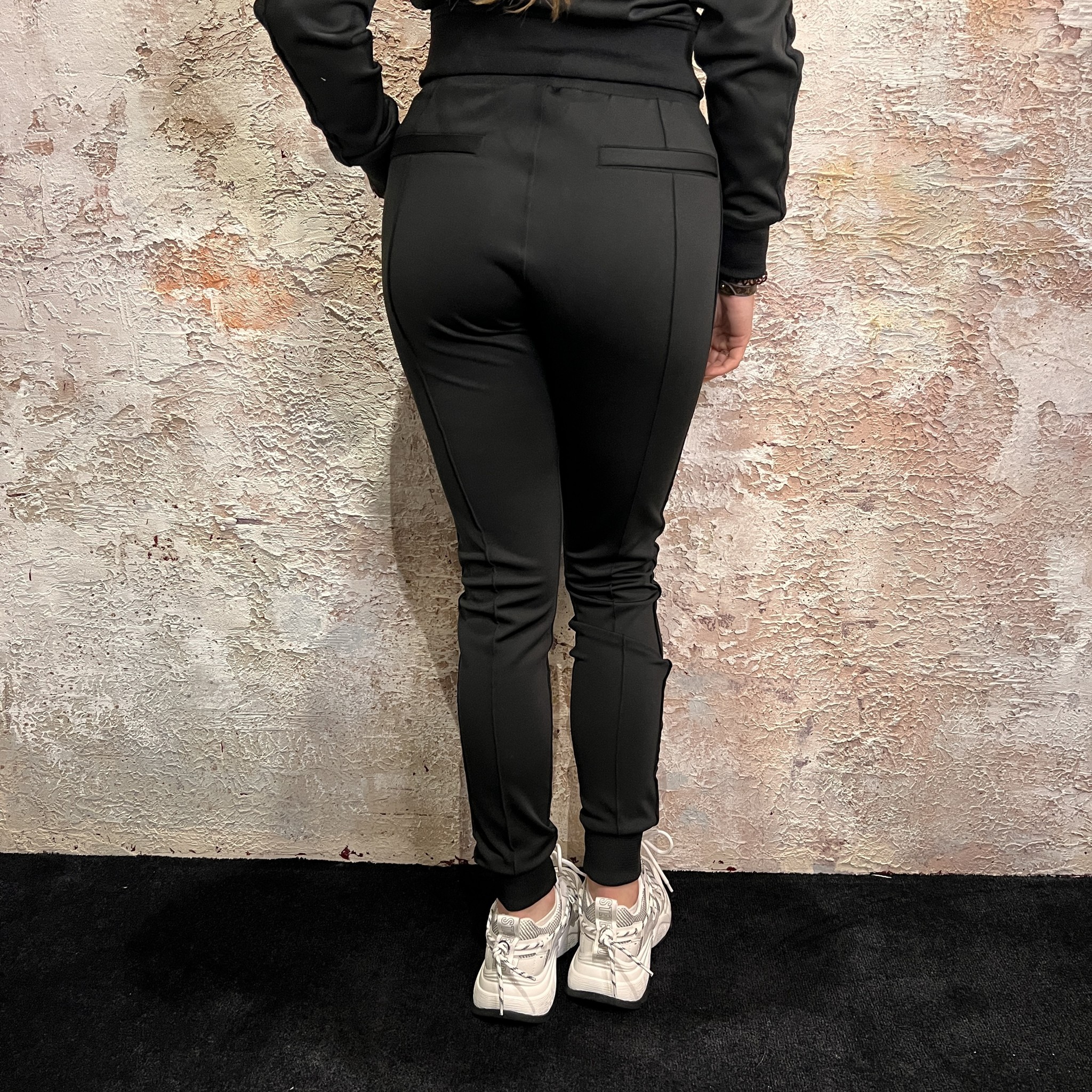 Stretch pant van Malelions in zwart met logo, ons model draagt een xs.