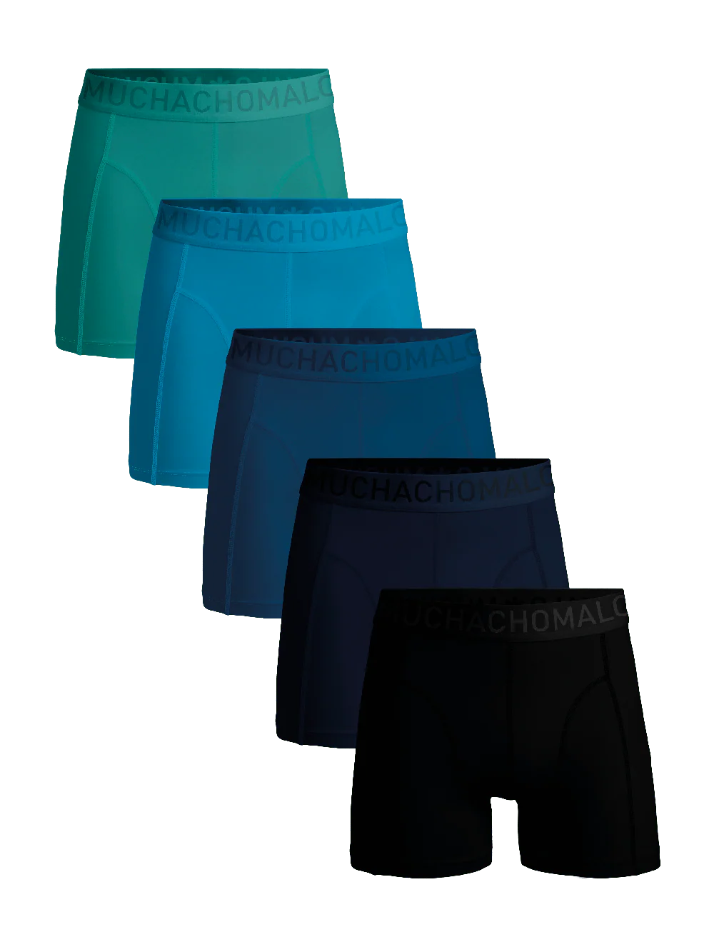 Muchachomalo 5 Pack Solid1010-136 boxershorts voor heren. Set van vijf comfortabele shorts in frisse blauwtinten en zwart. Gemaakt van zacht katoen met elastische band voor perfecte pasvorm. Hoogwaardige kwaliteit voor elke dag.