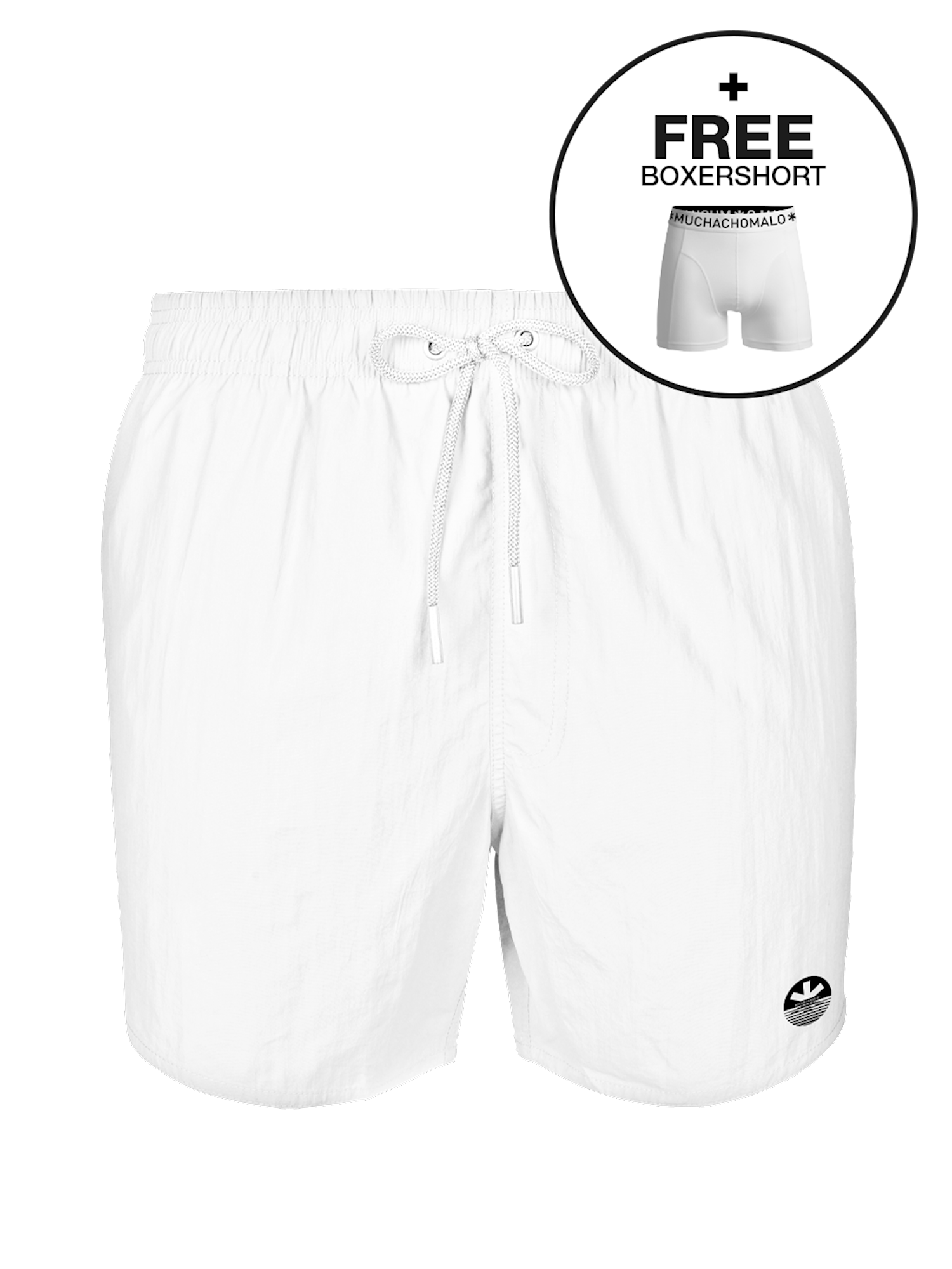 Muchachomalo Swimshort in wit is een opvallende zwembroek in een witte kleur met steekzakken. Voorzien van een comfortabele pasvorm met verstelbaar trekkoord en een sportieve look. Incl.gratis bijpassende boxershort voor extra stijl en gemak.