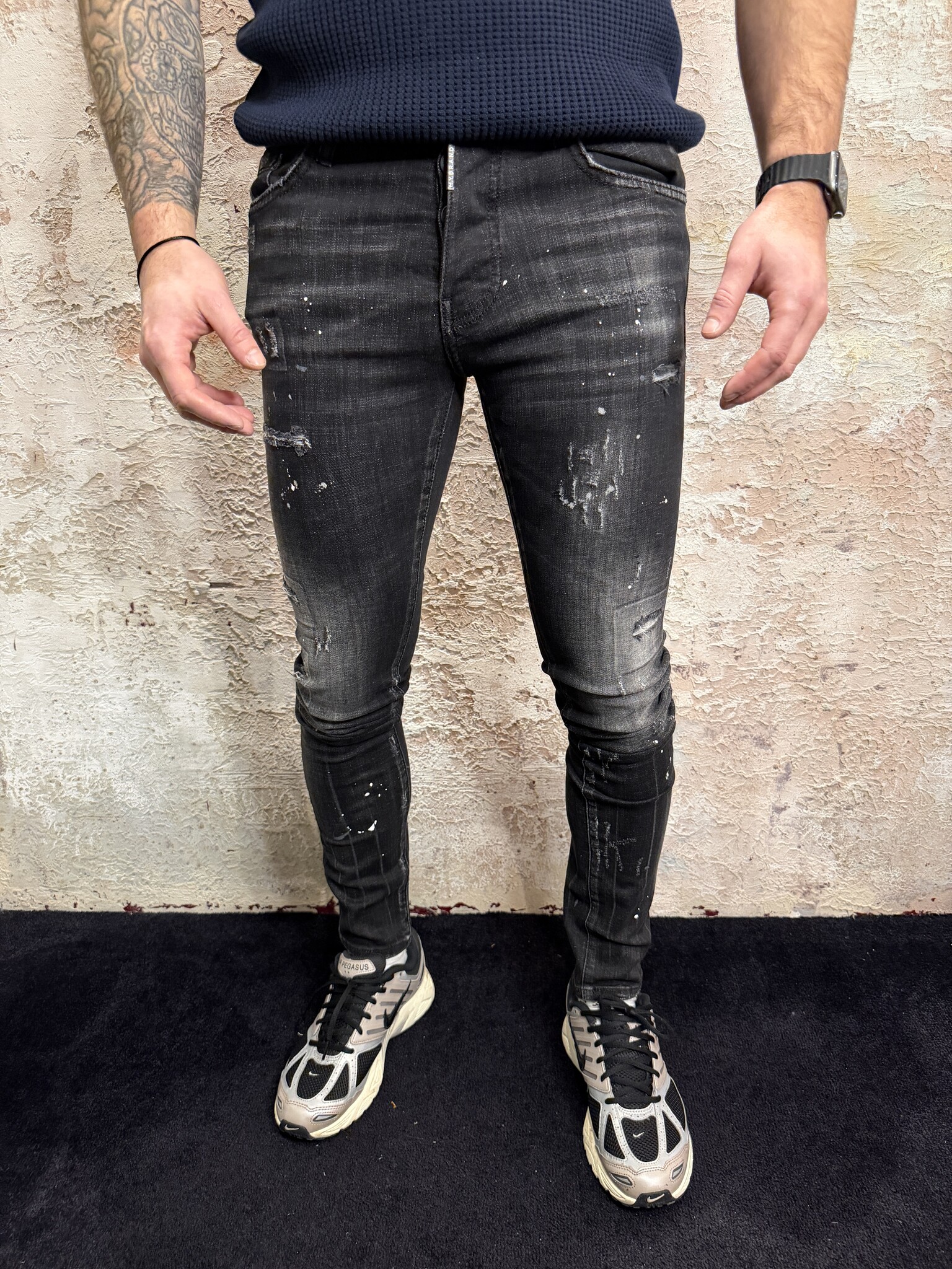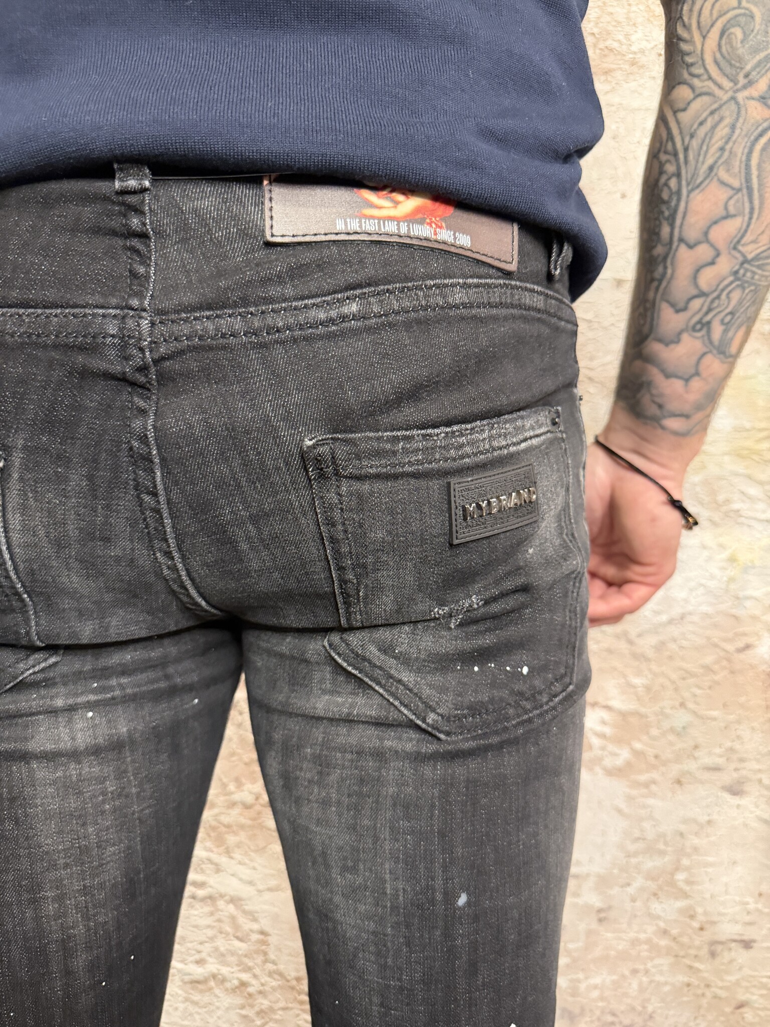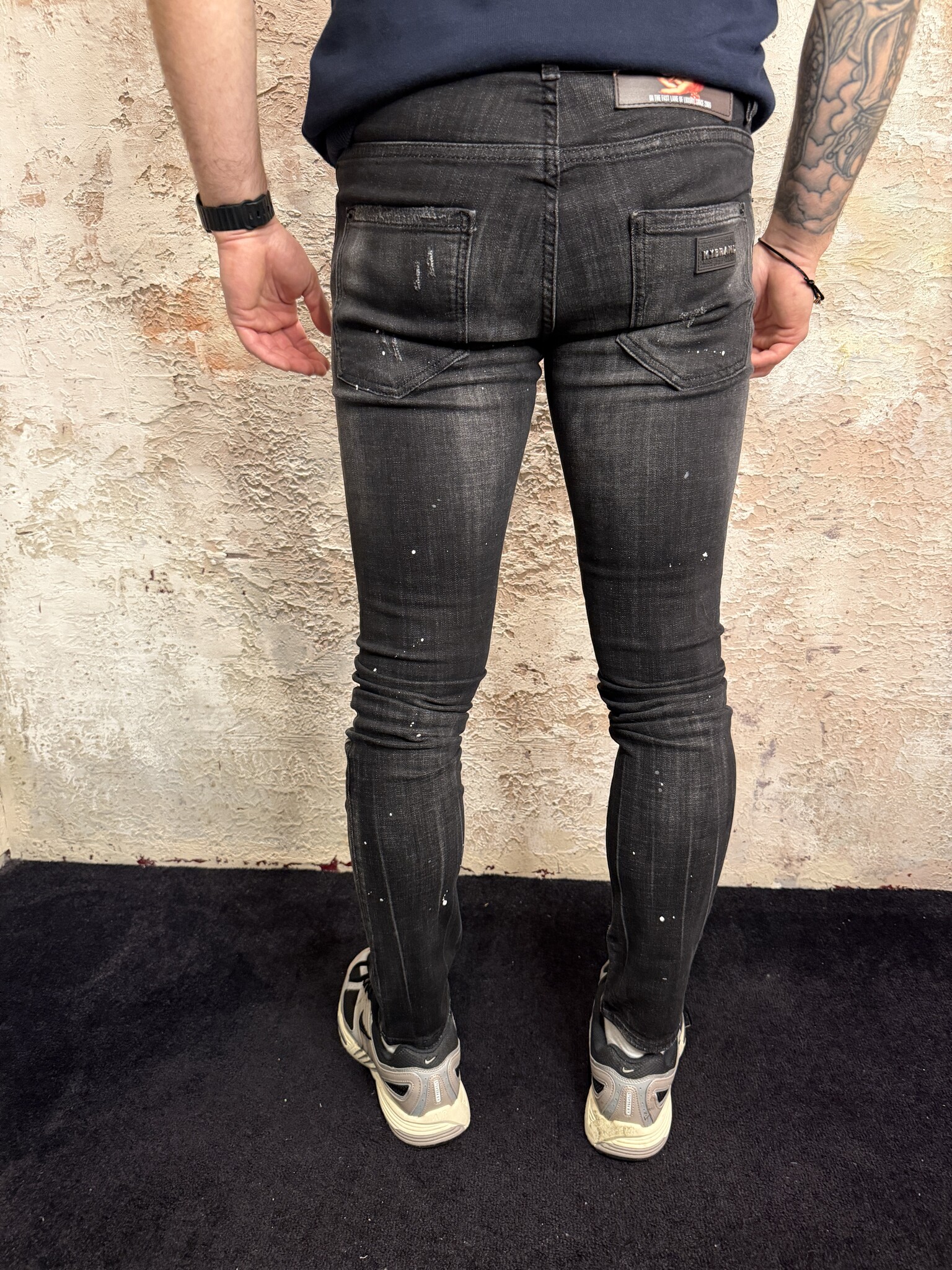 Stoere MyBrand heren jeans met slim fit en unieke paint splatter en destroyed details. Deze zwarte denim jeans voor heren heeft een moderne pasvorm en stretch. Perfect voor een urban streetwear look en makkelijk te combineren met T-shirts en sweaters.
