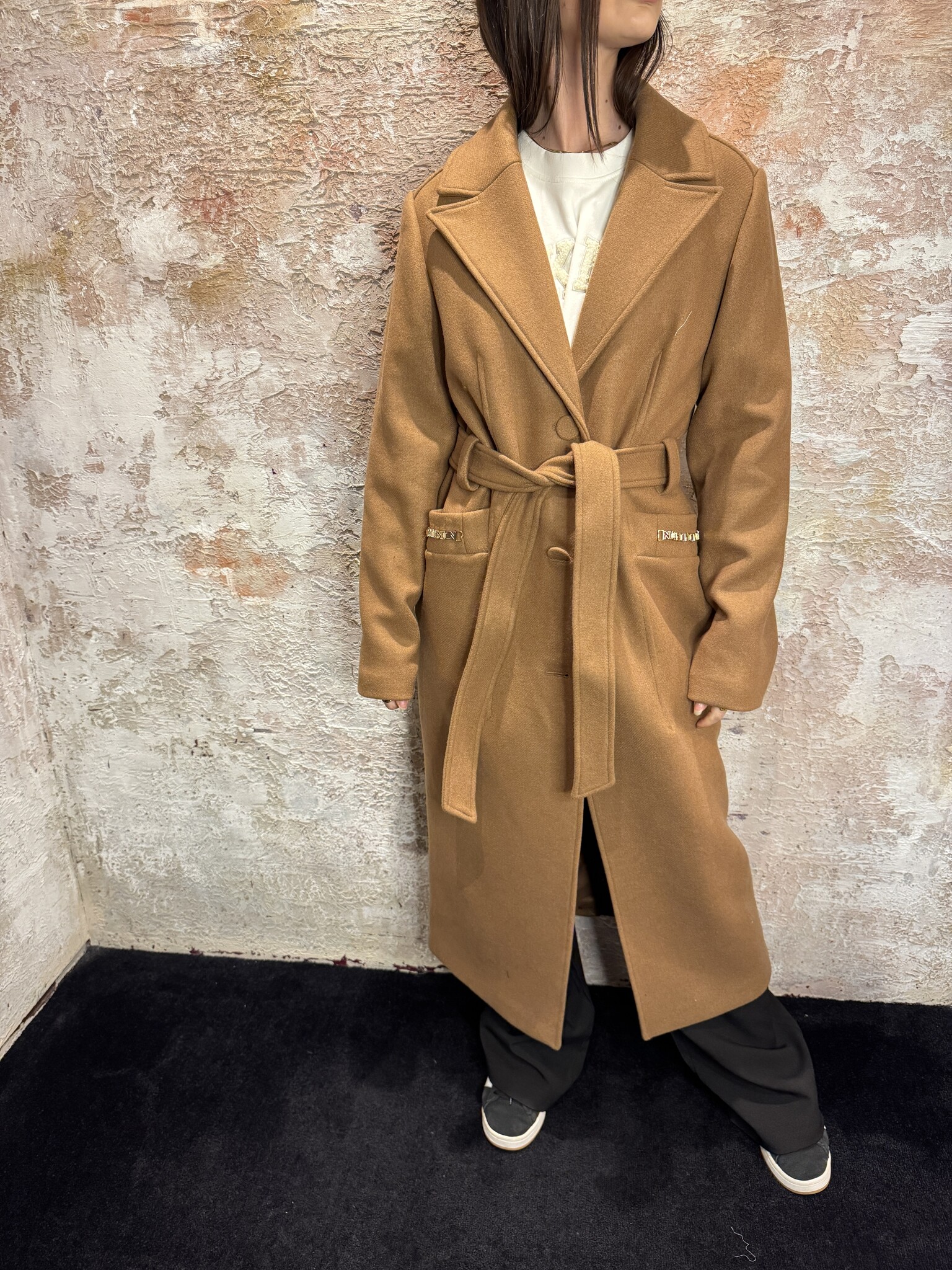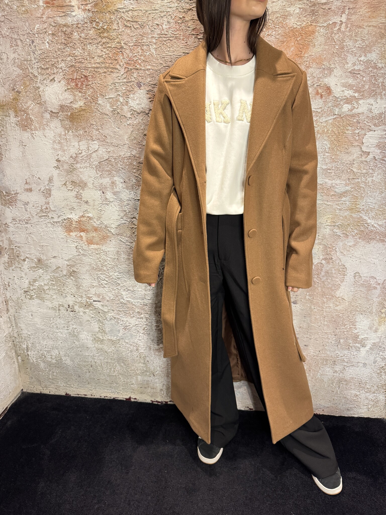 De Nikkie Lille Coat in Toffee is een elegante lange jas met strikceintuur en klassieke revers. Gemaakt van een warme wolblend, ideaal voor koude dagen. Tijdloze uitstraling en perfect te combineren. Ook verkrijgbaar in zwart.