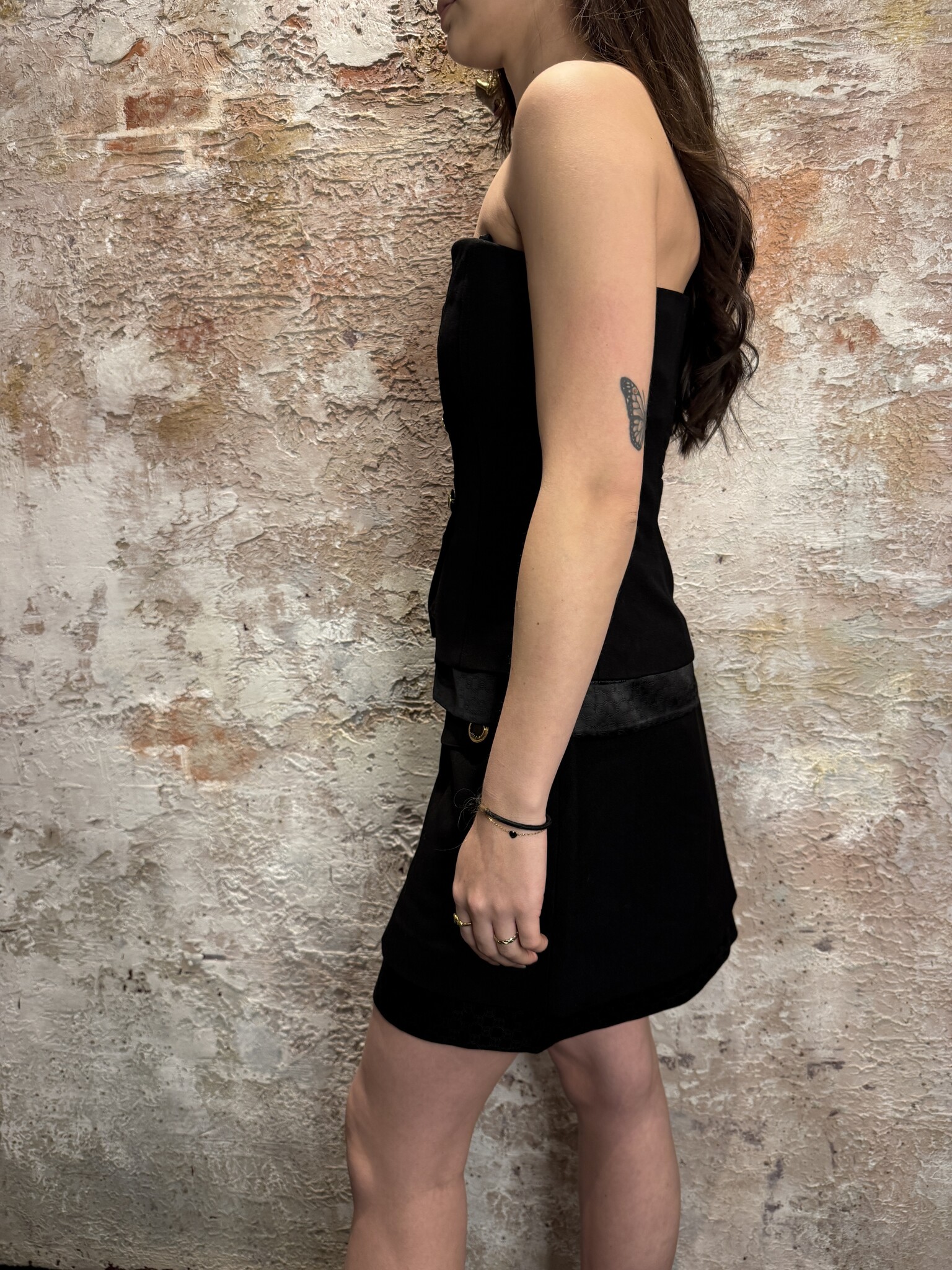 Nikkie Oakland Waistcoat Black is een stijlvolle strapless gilet met goudkleurige knopen en een getailleerde pasvorm. Gemaakt van hoogwaardige stof met satijnen details voor een luxe uitstraling. Perfect te combineren met een pantalon voor een chique look