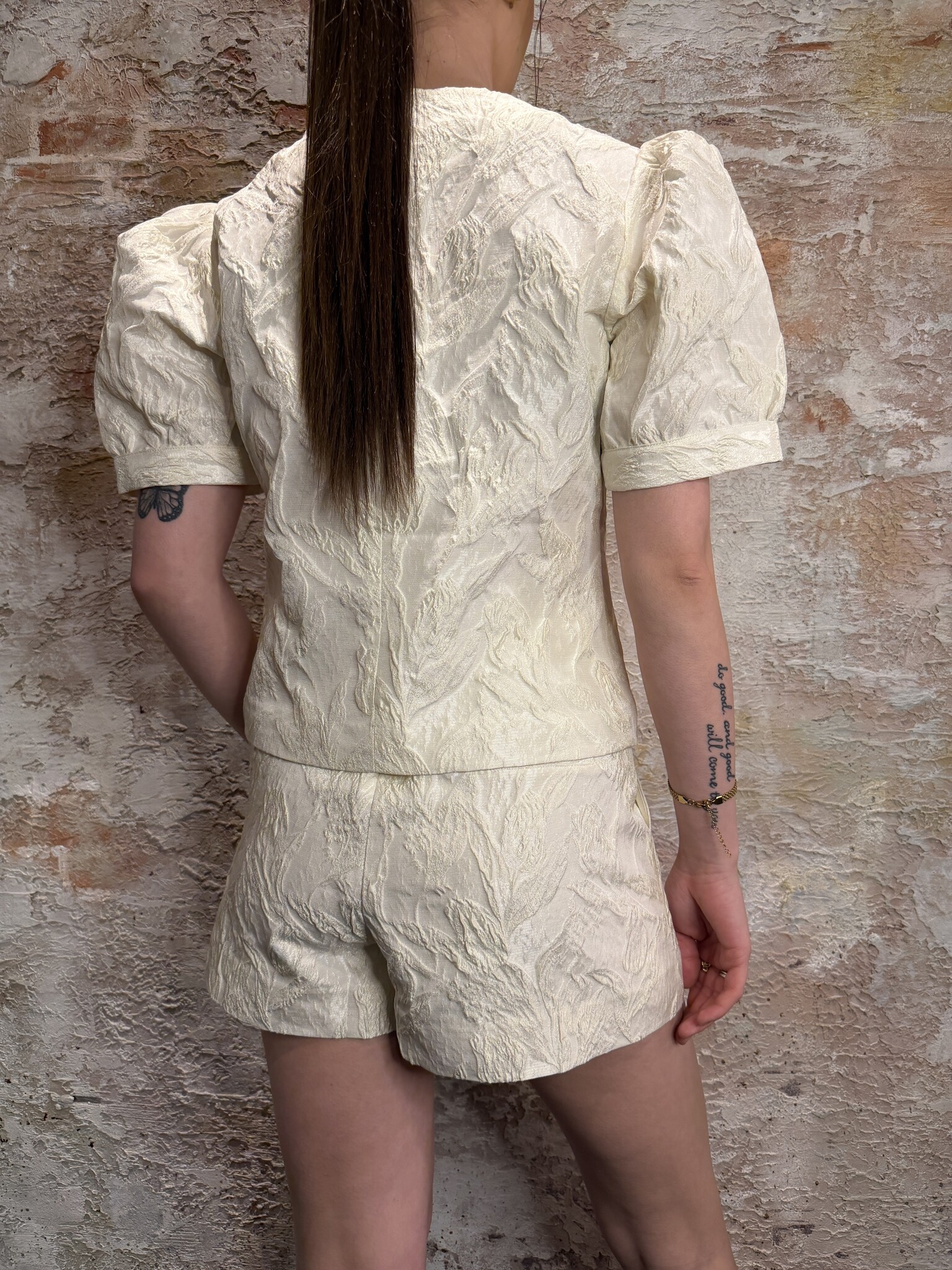 NIKKIE Panoma Short Cream. Luxe short met rijke structuur en subtiele glans voor een elegante uitstraling. Comfortabele pasvorm met chique look. Perfect te combineren met de bijpassende top of stijlvol met een blouse. Ideaal voor een trendy zomerse outfit