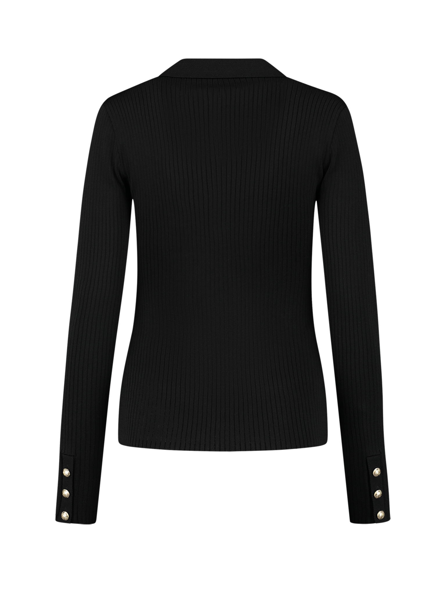V-hals breisel van Nikkie met een kraagje en lange mouw, op de mouw zitten goudkleurige knopen.