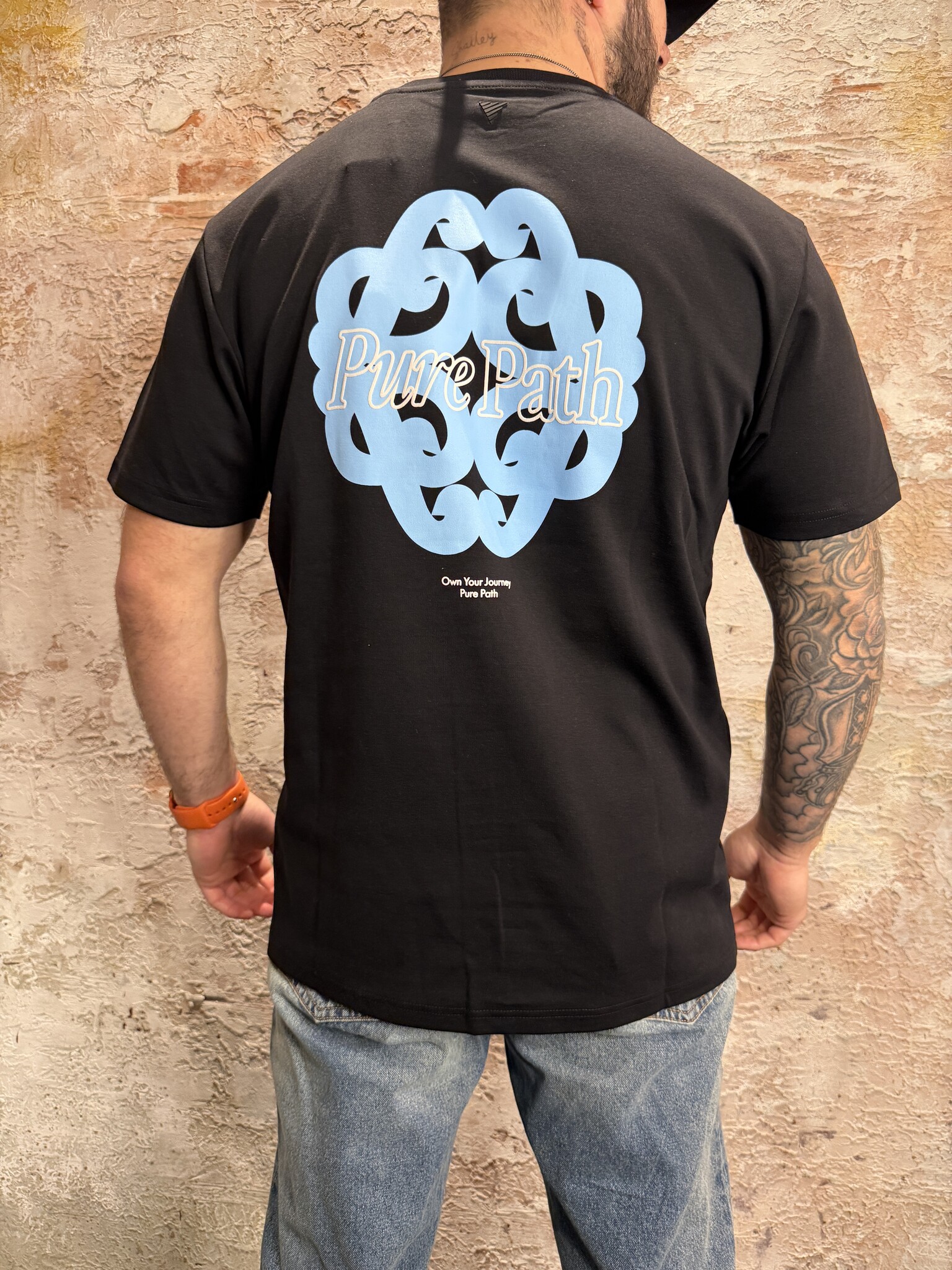 Pure Path Bold Emblem T-shirt Black is een modern heren T-shirt in diepzwart met logo op de borst en een opvallende blauwe emblem print op de rug. Gemaakt van comfortabel katoen met een regular fit. Perfect voor een stijlvolle, casual streetwear look.