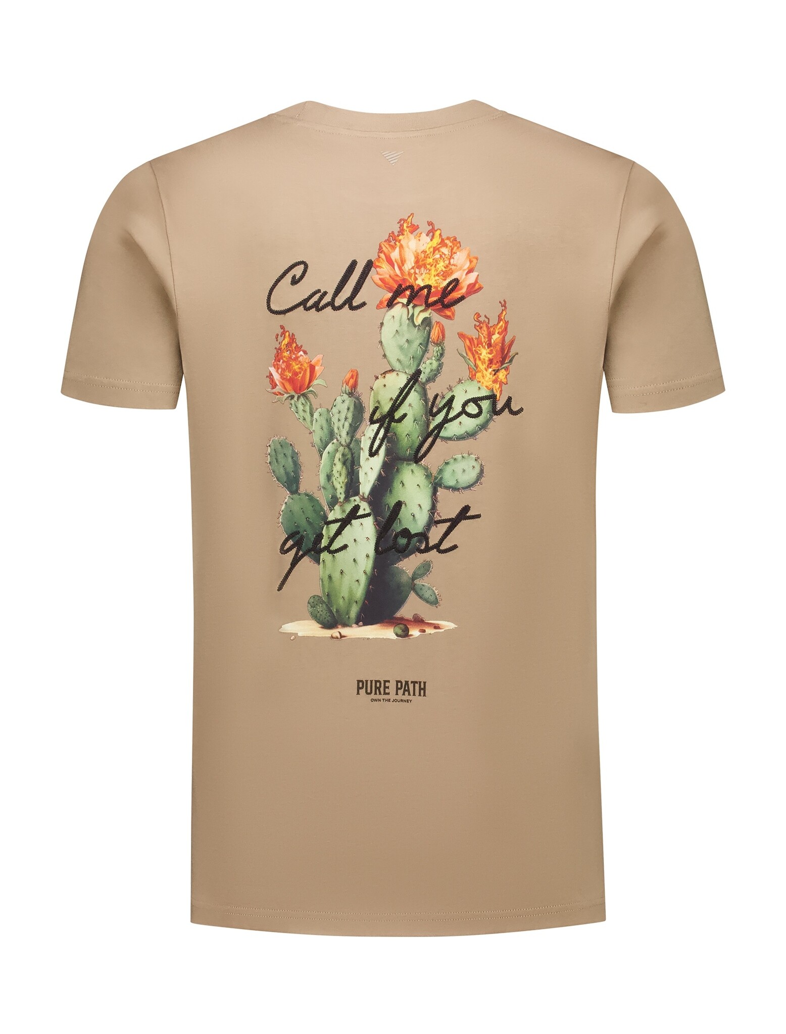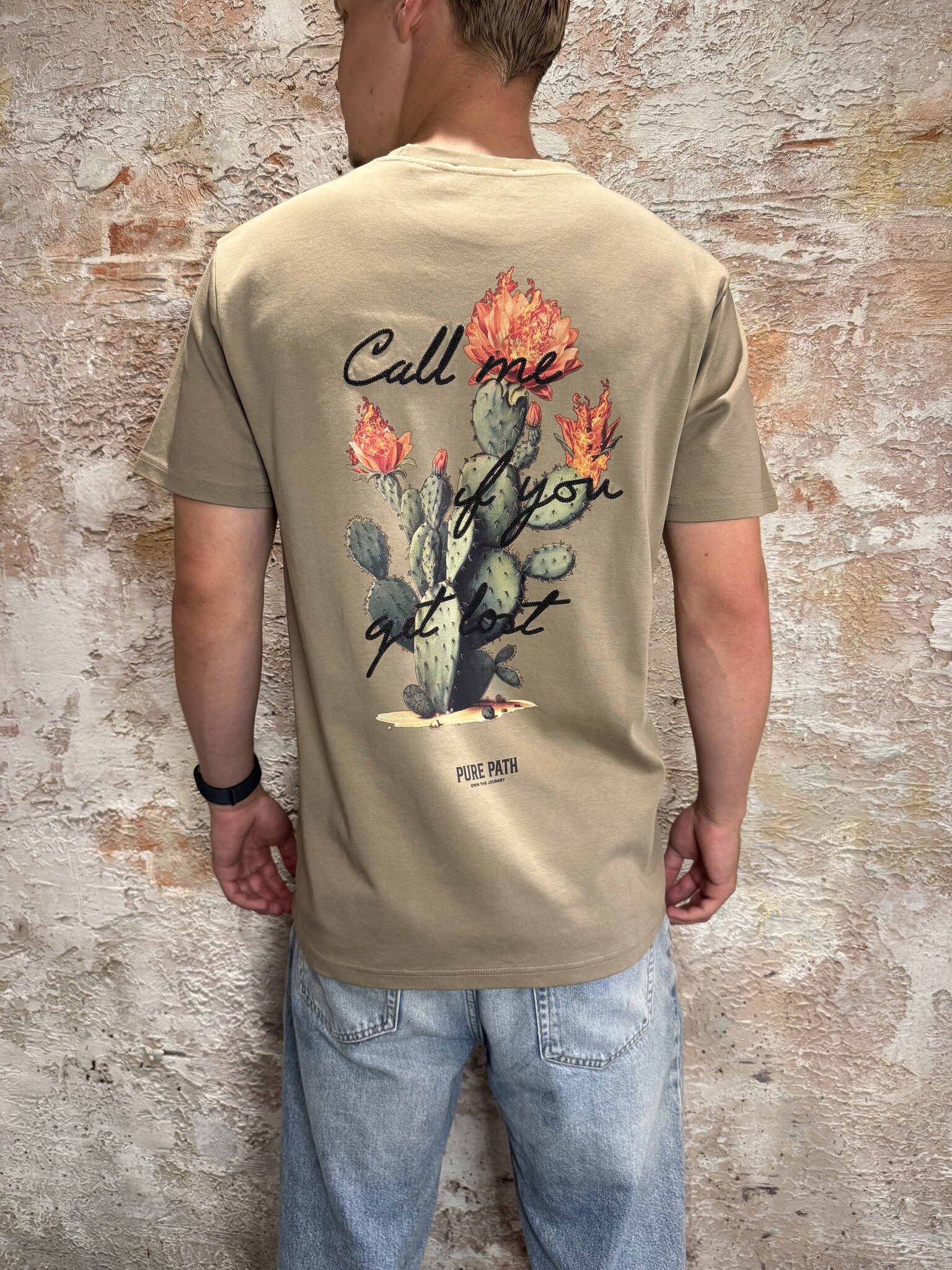 Het Pure Path Call Me If You Get Lost T-Shirt Taupe is een stijlvol shirt met een minimalistische frontprint en opvallende backprint van een cactus met bloemen. De tekst “Call me if you get lost” geeft een avontuurlijke twist. Gemaakt van zacht katoen.