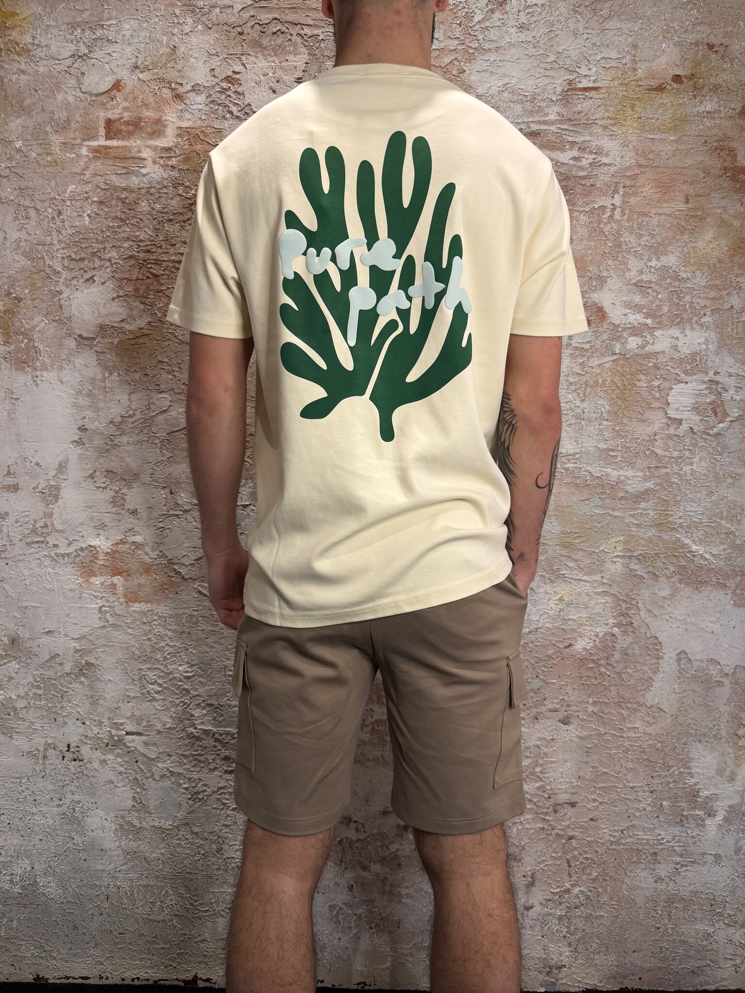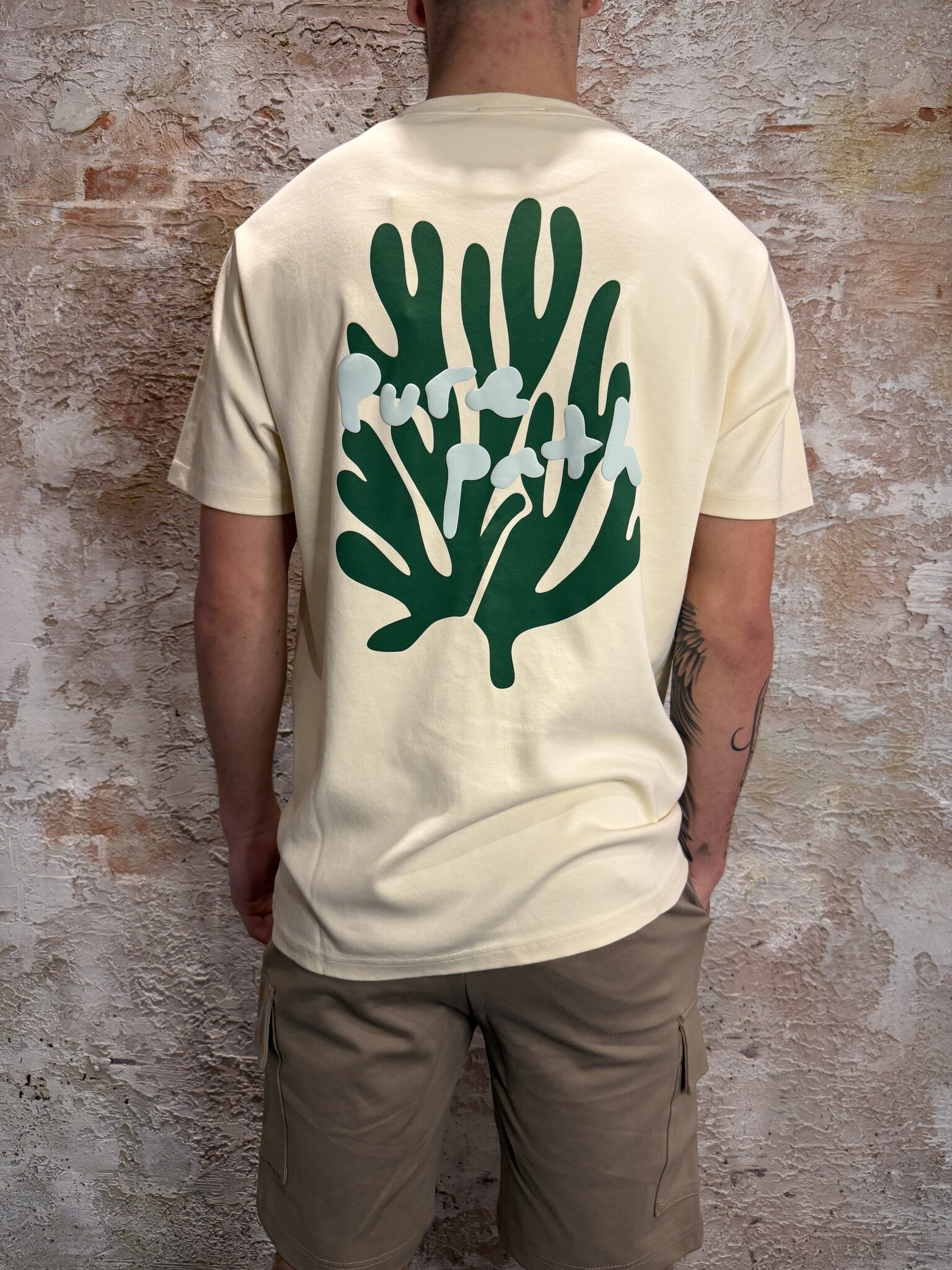 Pure Path Coral Reef T-shirt Ecru met subtiel logo op de borst en opvallende koraalprint op de rug in frisse kleuren. Gemaakt van comfortabele kwaliteit met een moderne fit. Perfect voor een zomerse, casual look met een unieke uitstraling.