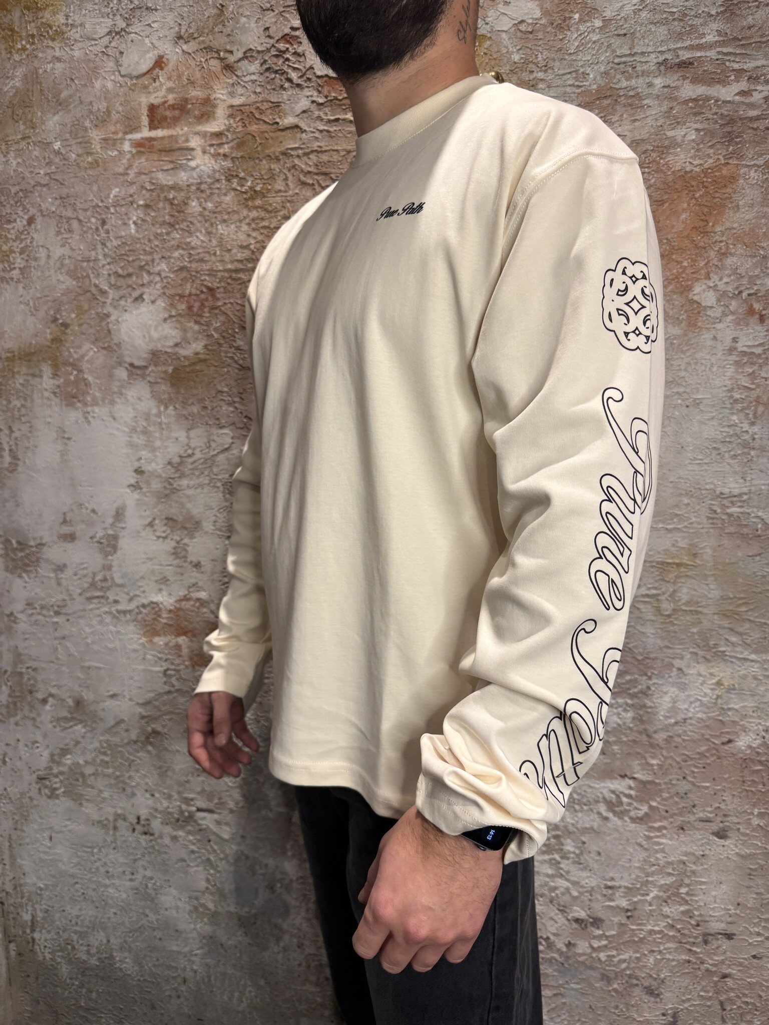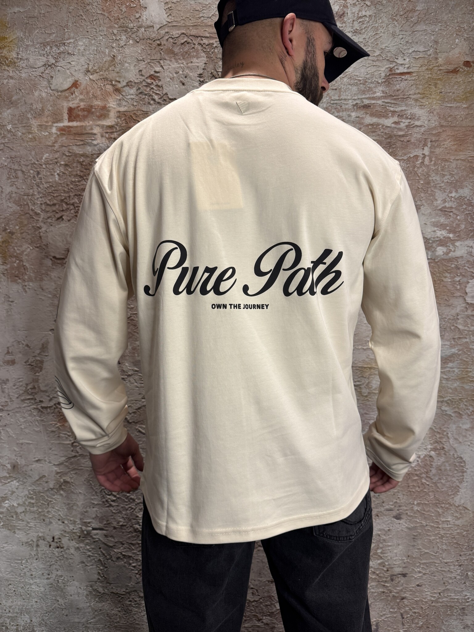 Pure Path Essence Of Life Longsleeve Off White is een stijlvolle off white longsleeve met logo-opdruk op borst, mouw en rug. Gemaakt van hoogwaardig katoen voor een comfortabele fit. Perfect voor een moderne casual of streetwear look.