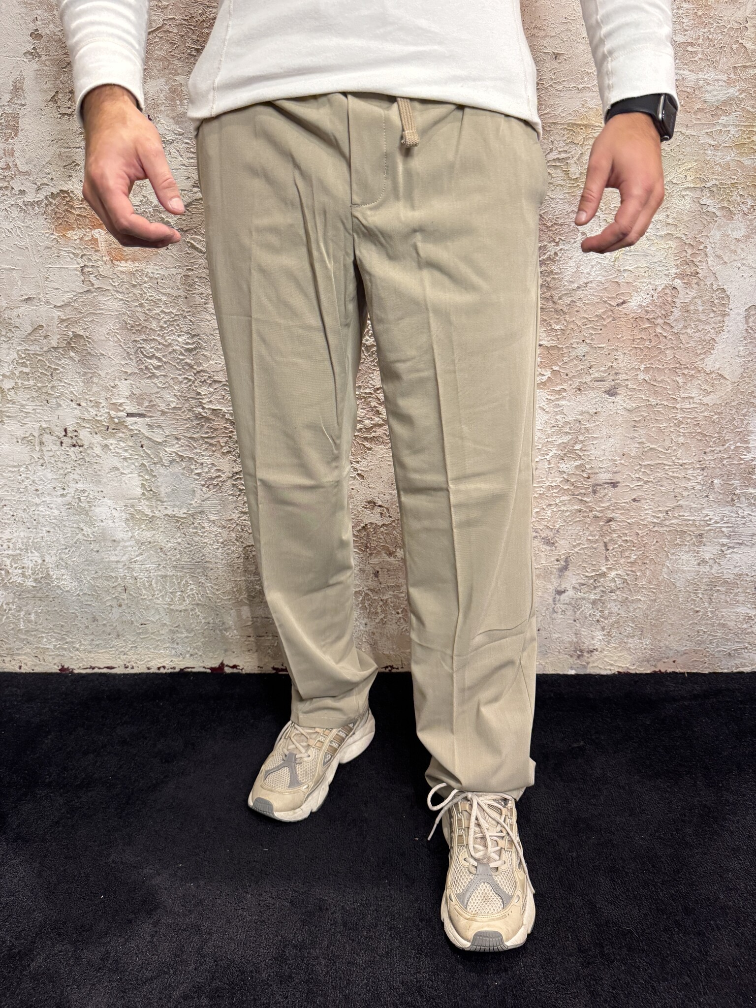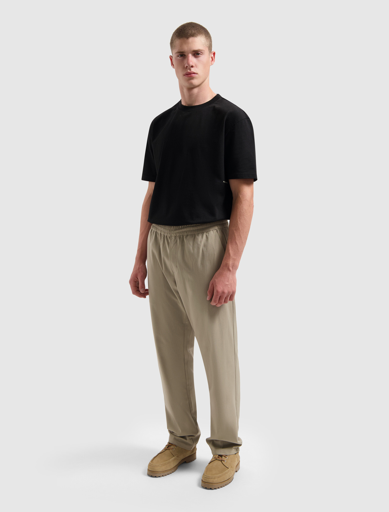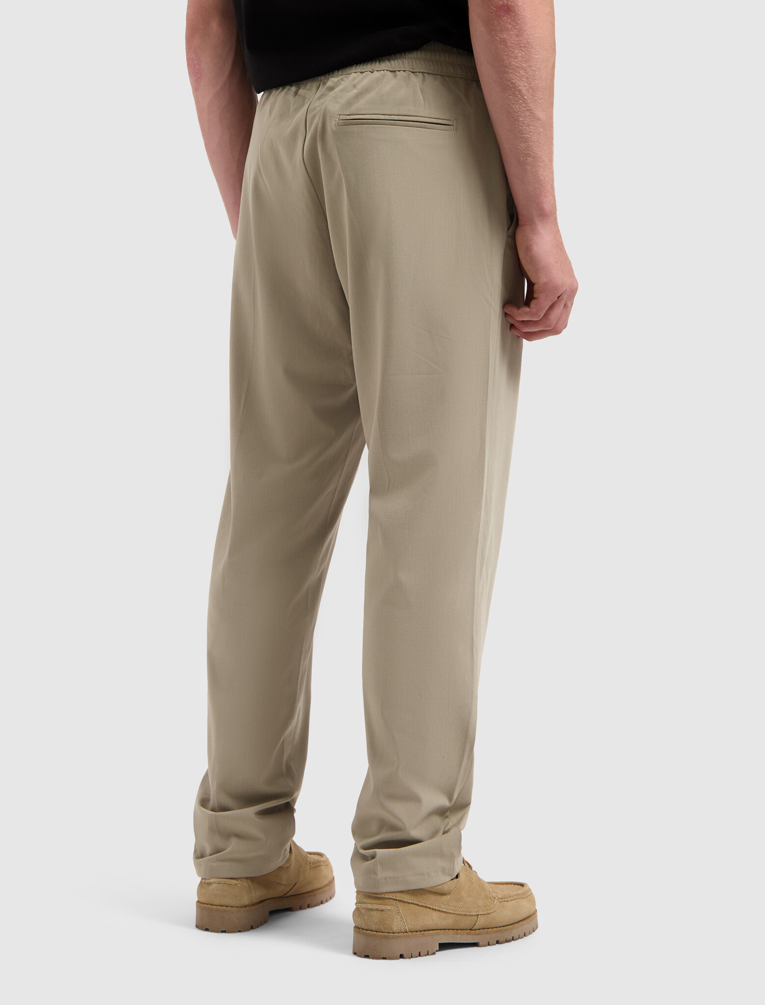 Pure Path Essential Smart Pants Taupe. Stijlvolle herenbroek in taupe met elastische tailleband en rechte pasvorm. Lichtgewicht en comfortabel, ideaal voor smart-casual looks. Perfect te combineren met overhemden, truien of blazers.