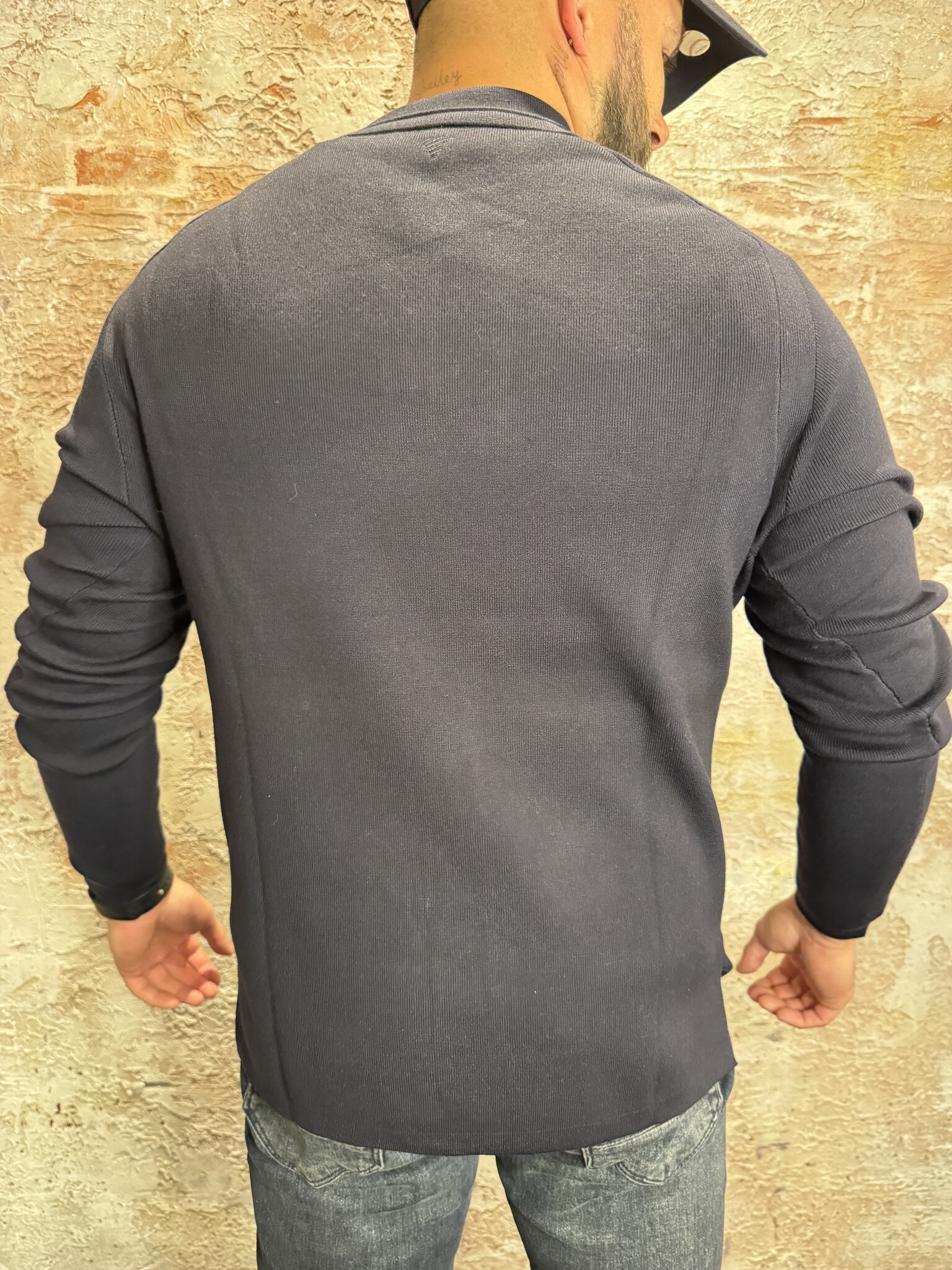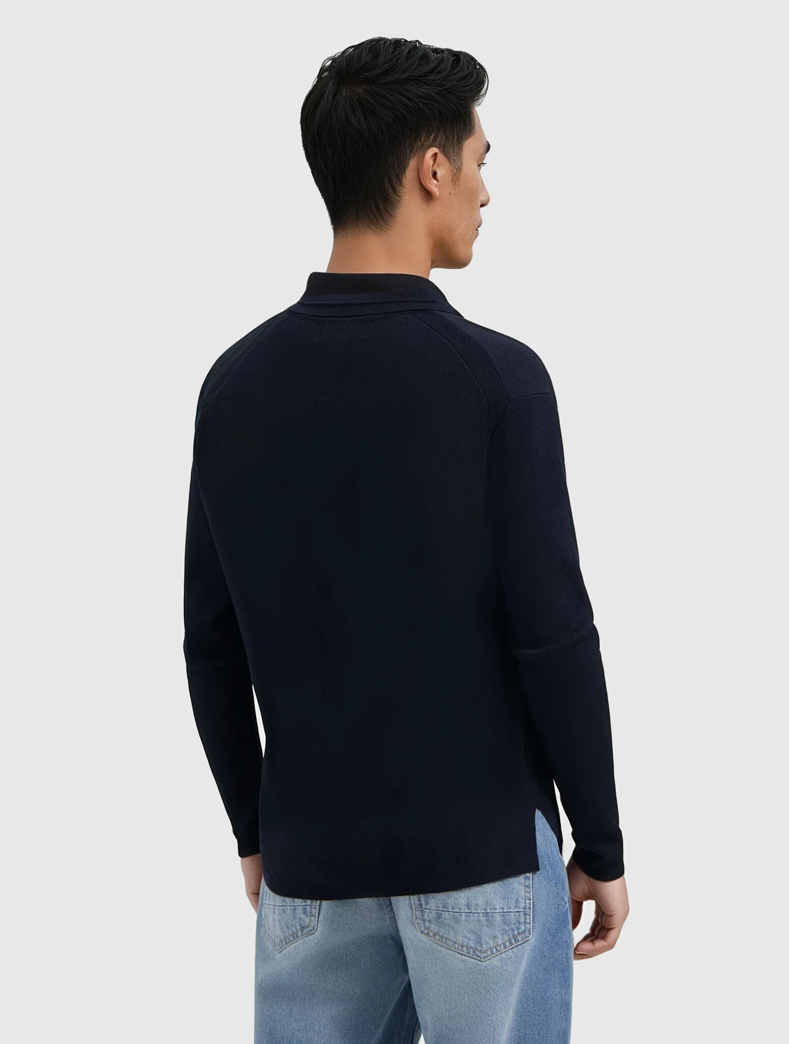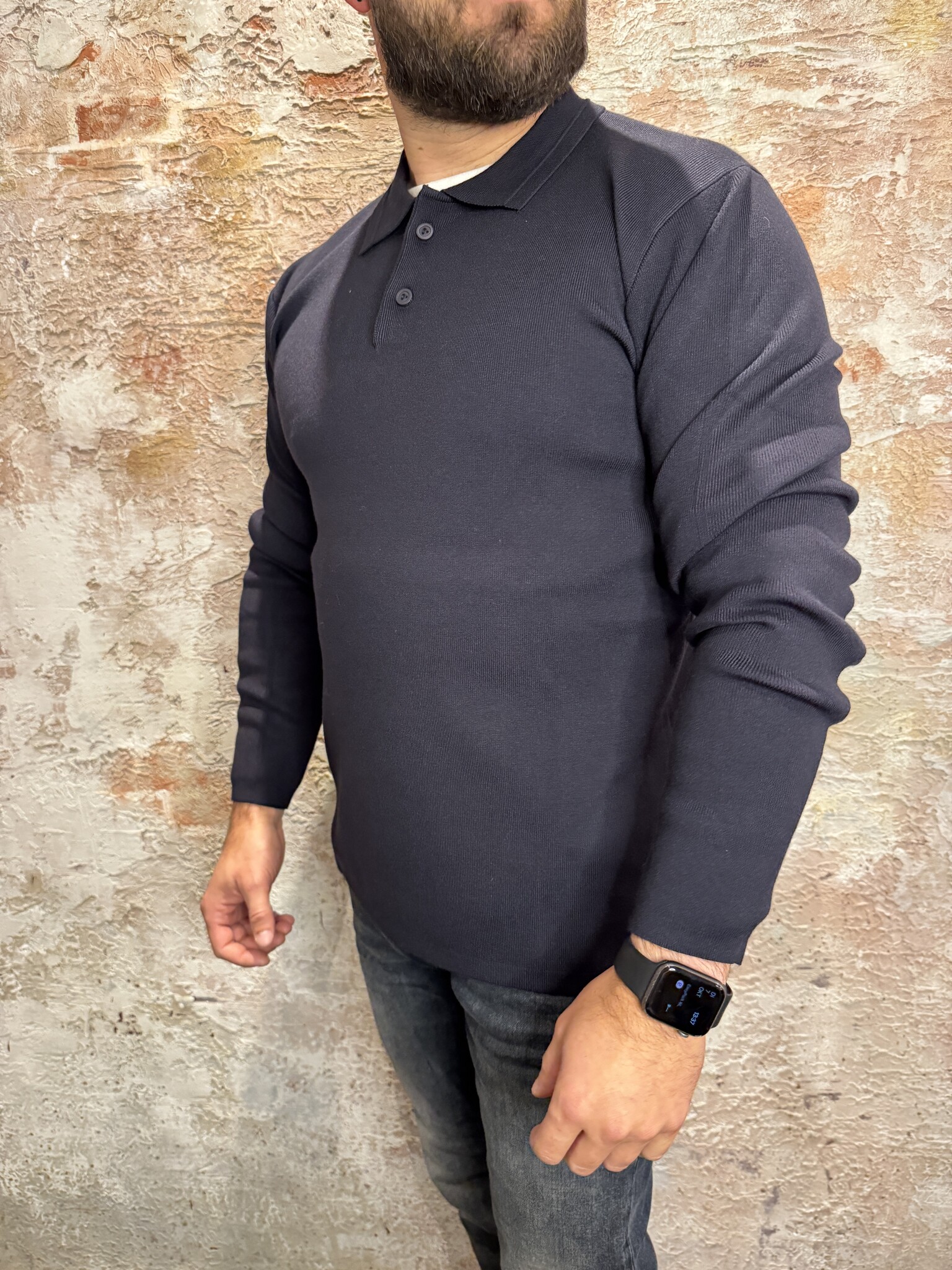 Pure Path Heavy Knit Polo Dark Navy. Luxe lange mouwen polo van zware knit kwaliteit in donkerblauw. Comfortabel, stijlvol en modern. Perfect voor zowel casual als zakelijke outfits, een tijdloze essential voor iedere garderobe. Losvallend.