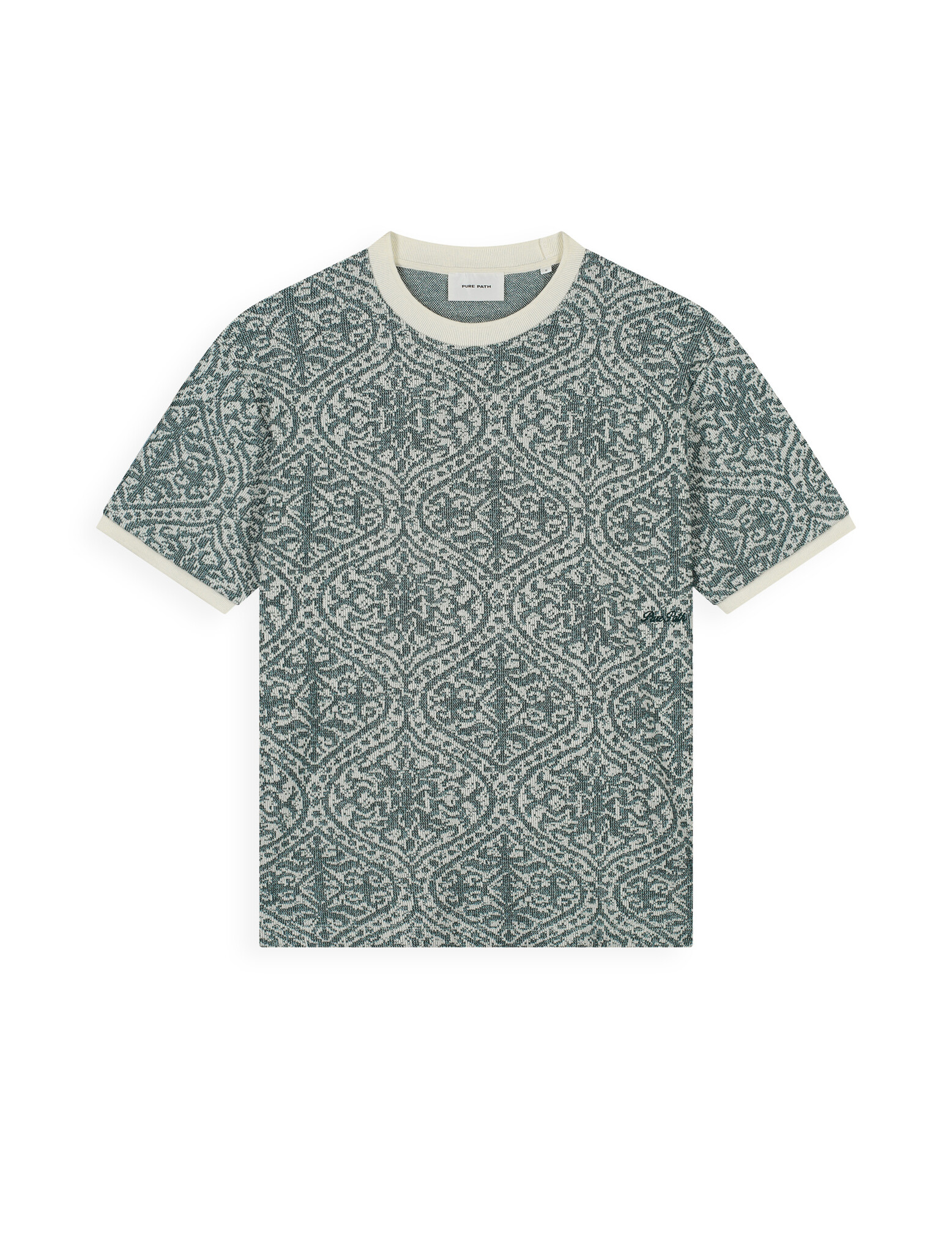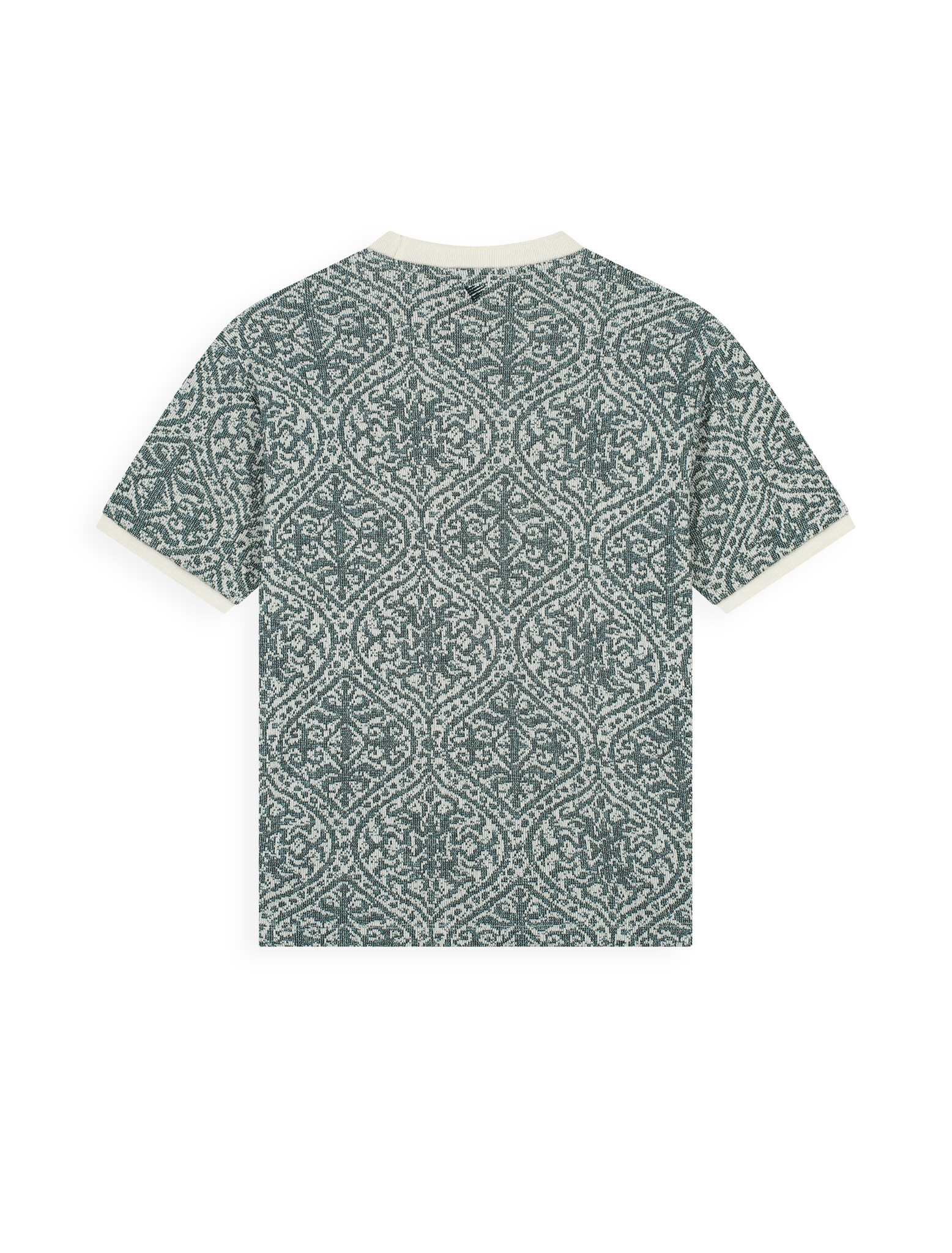De Pure Path Jacquard Emerald T-shirt in Sand is gemaakt van hoogwaardige katoenmix met luxe ingeweven jacquard dessin. De subtiele zandkleur en comfortabele regular fit geven een moderne, stijlvolle uitstraling. Perfect voor een verfijnde casual look.