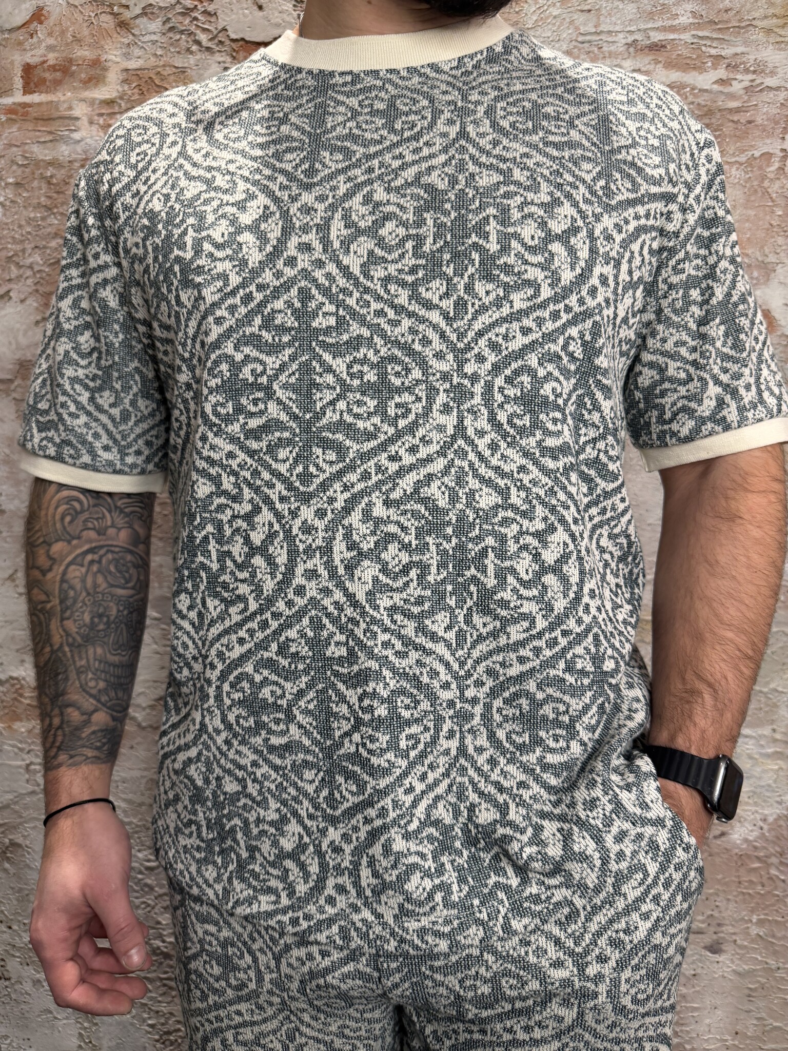 Jacquard Pattern T-shirt Emerald