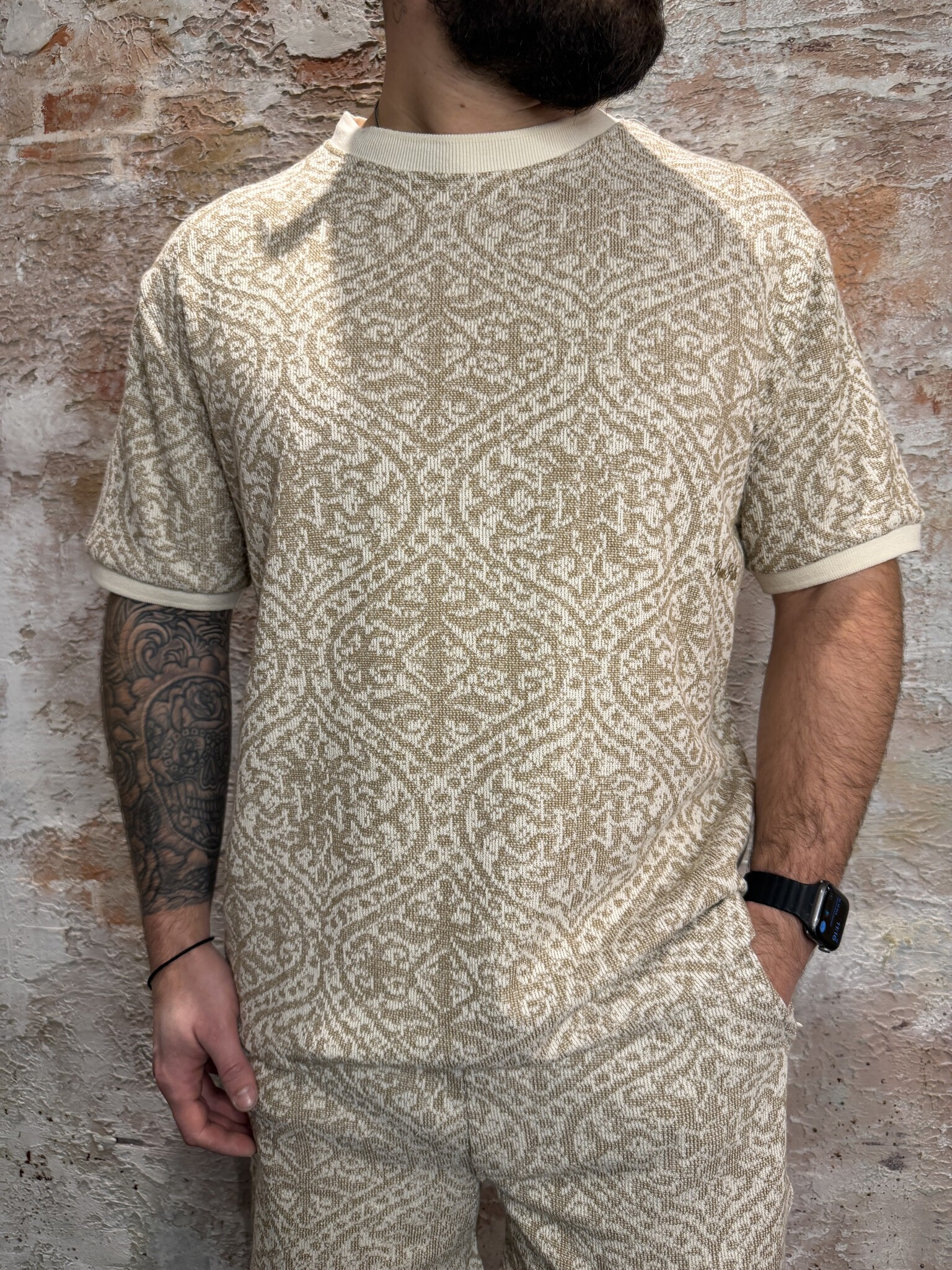 Jacquard Pattern T-shirt Sand