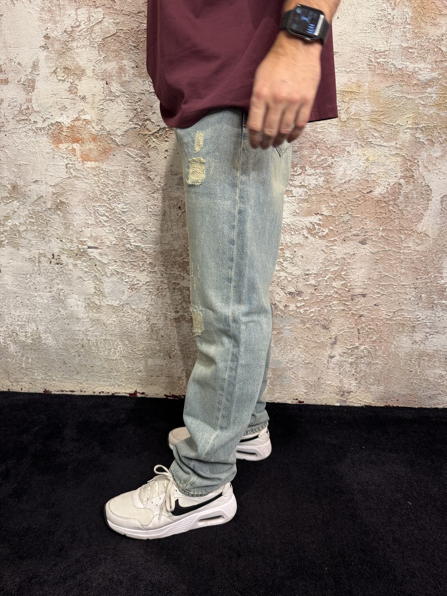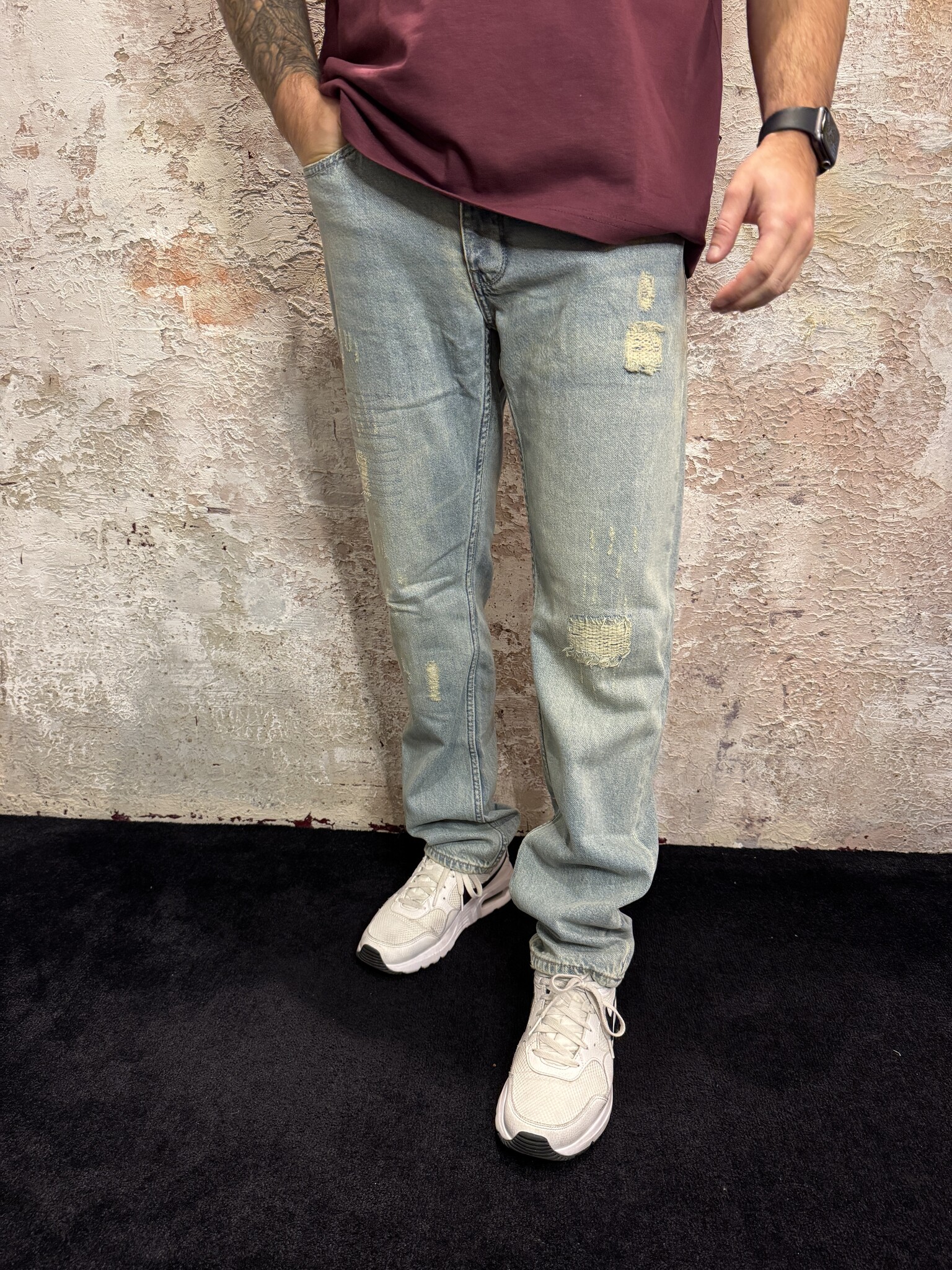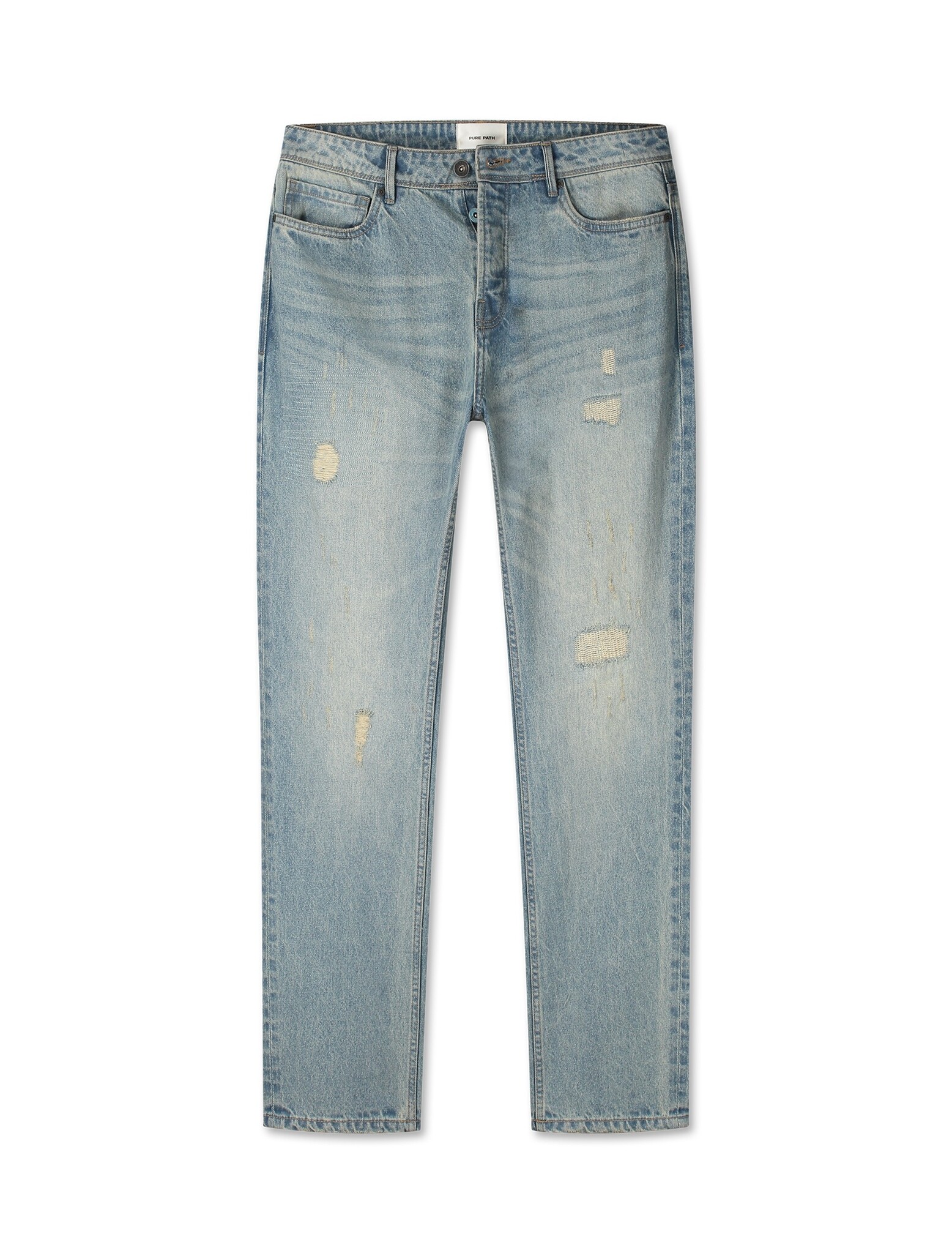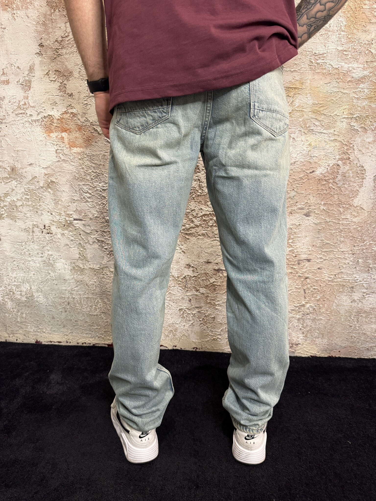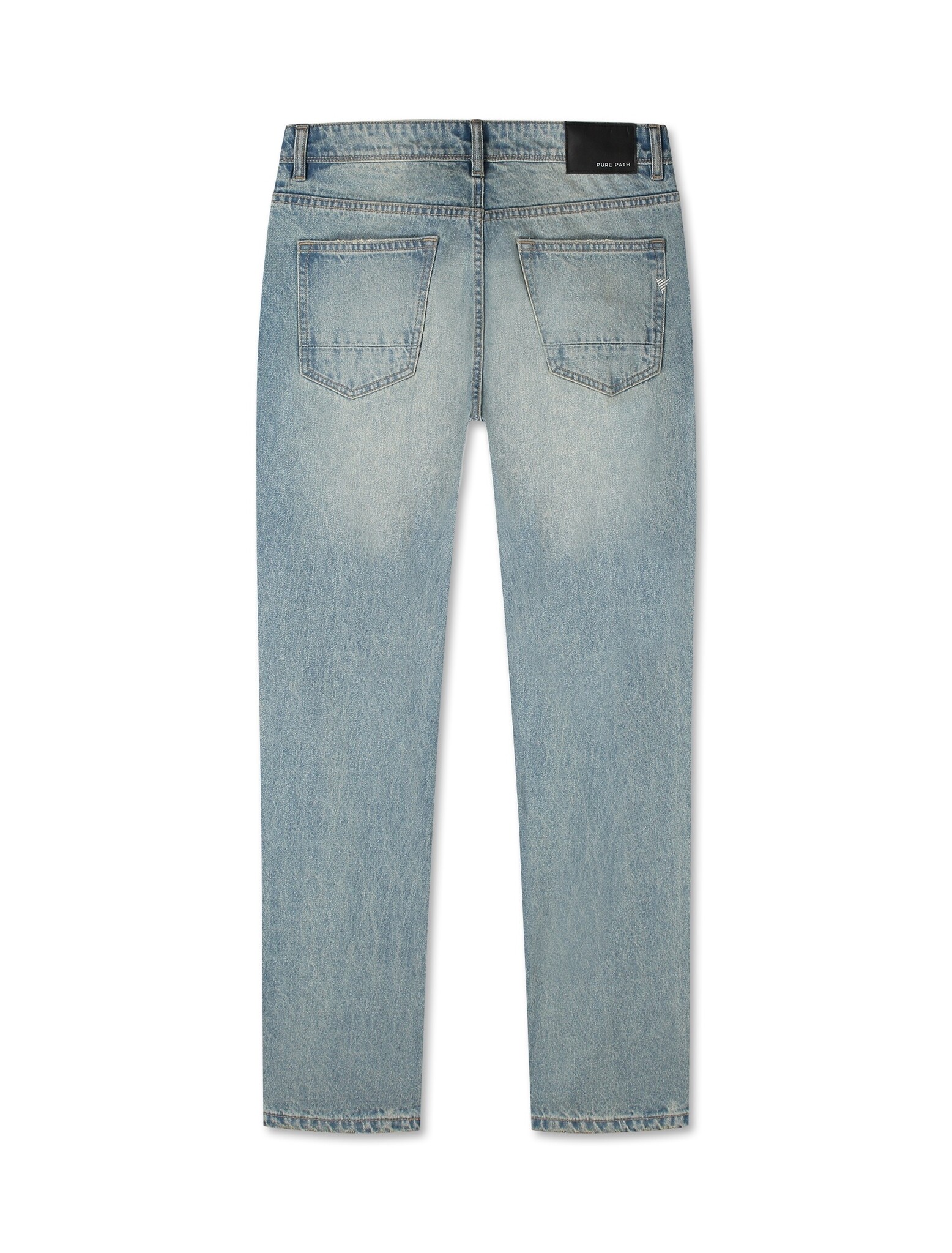 The Eric Regular Fit Jeans Blue Green : een tijdloze spijkerbroek met een comfortabele regular fit, gemaakt van duurzame denim in een middelblauwe wassing. Voorzien van klassieke vijf zakken, een ritssluiting en een leren patch aan de achterkant. W1566