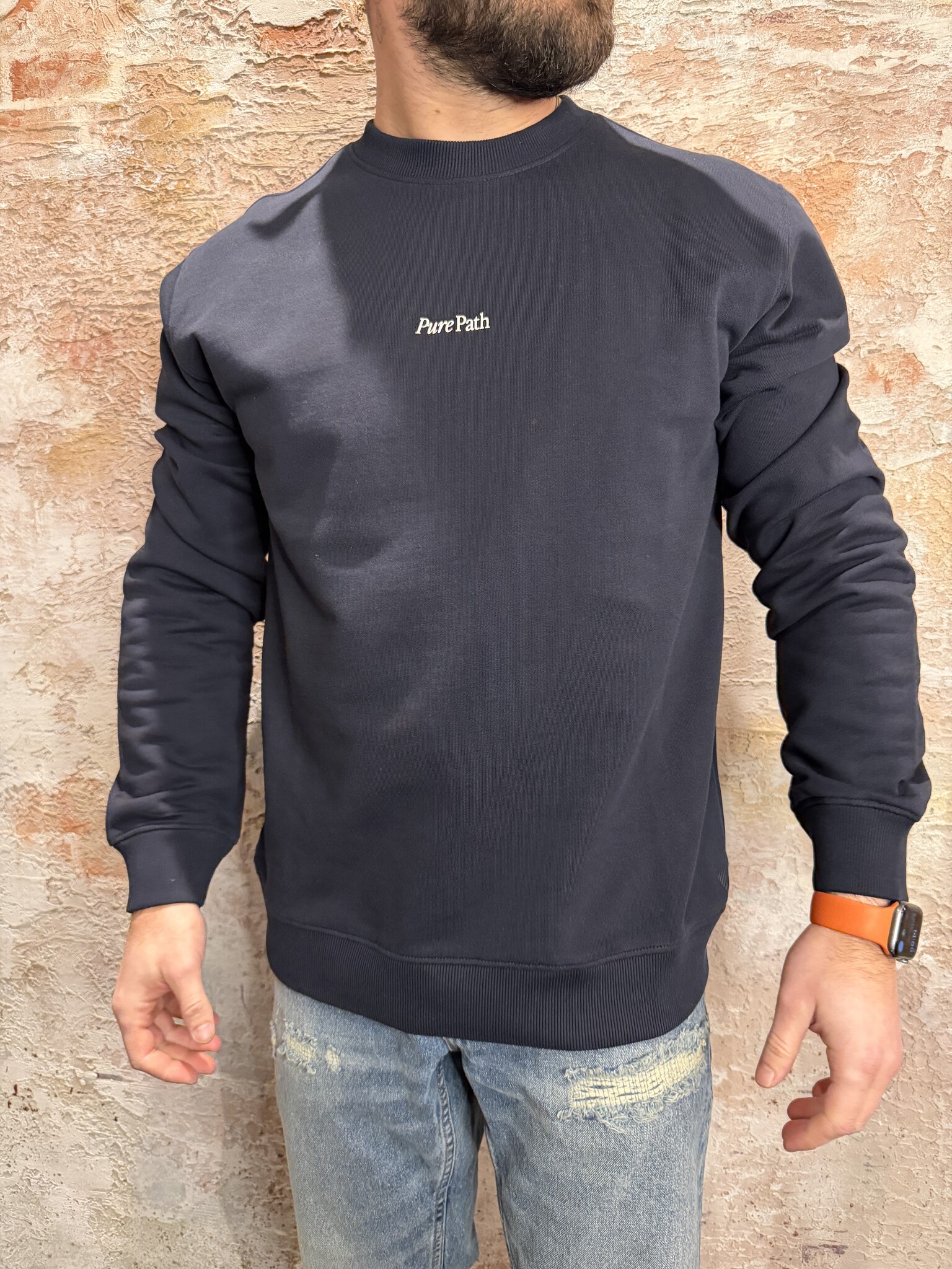 Pure Path Trio of Flowers Sweater Navy is een stijlvolle heren sweater in donkerblauw met subtiel logo op de borst en een opvallende bloemenprint op de rug. Comfortabele pasvorm met ribboorden. Perfect voor een moderne, casual look.
